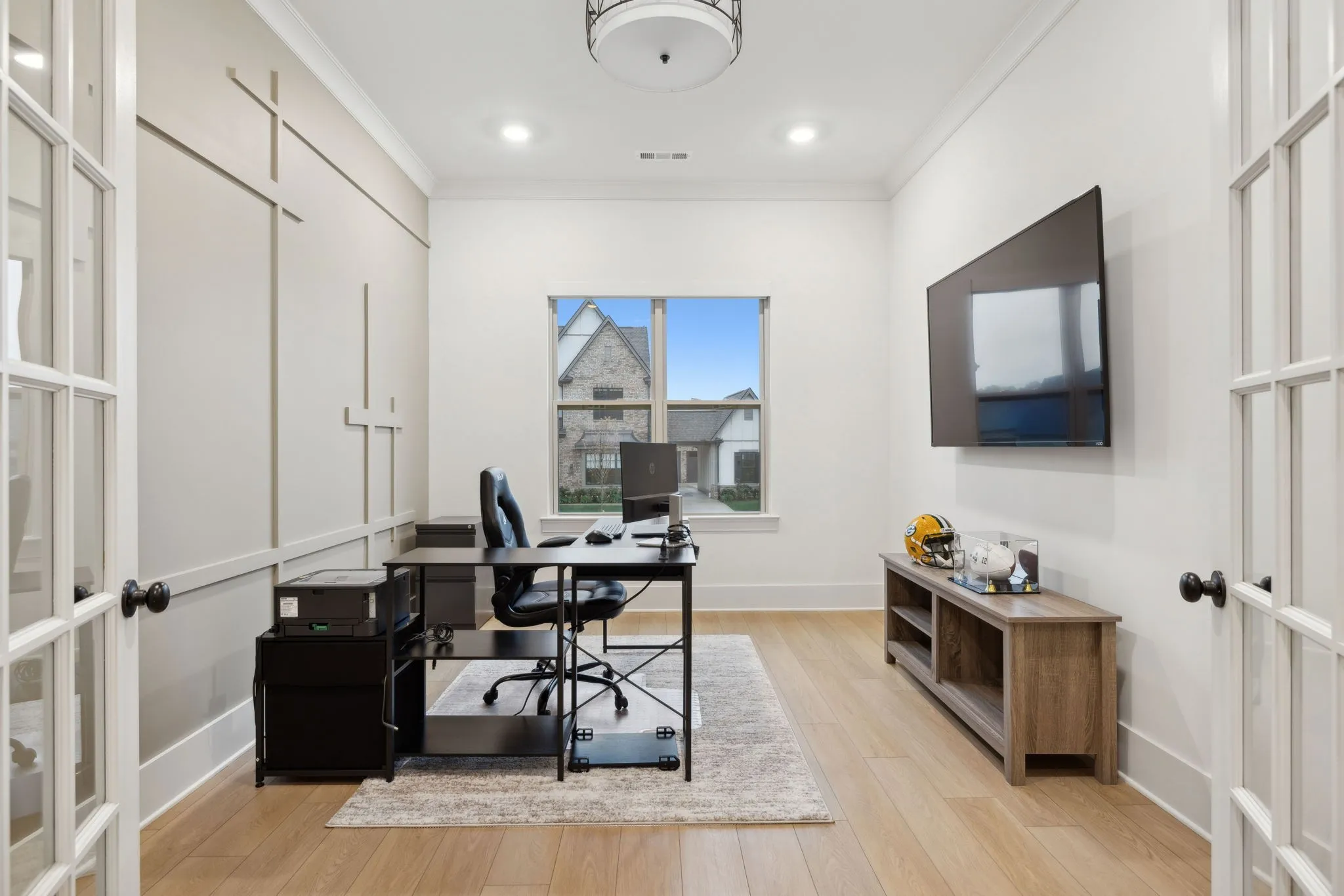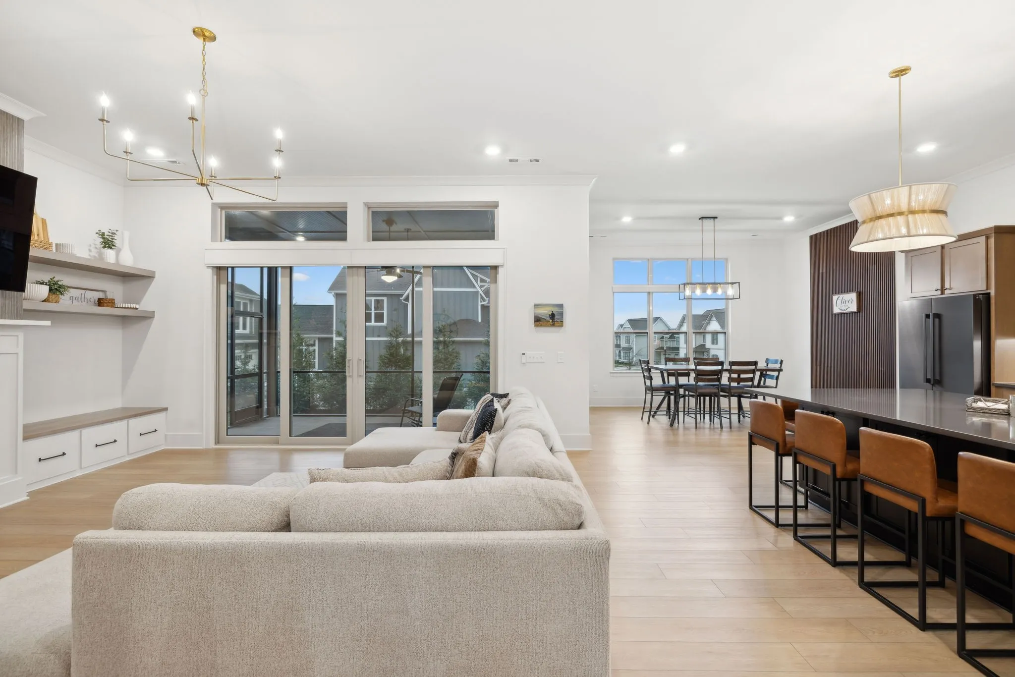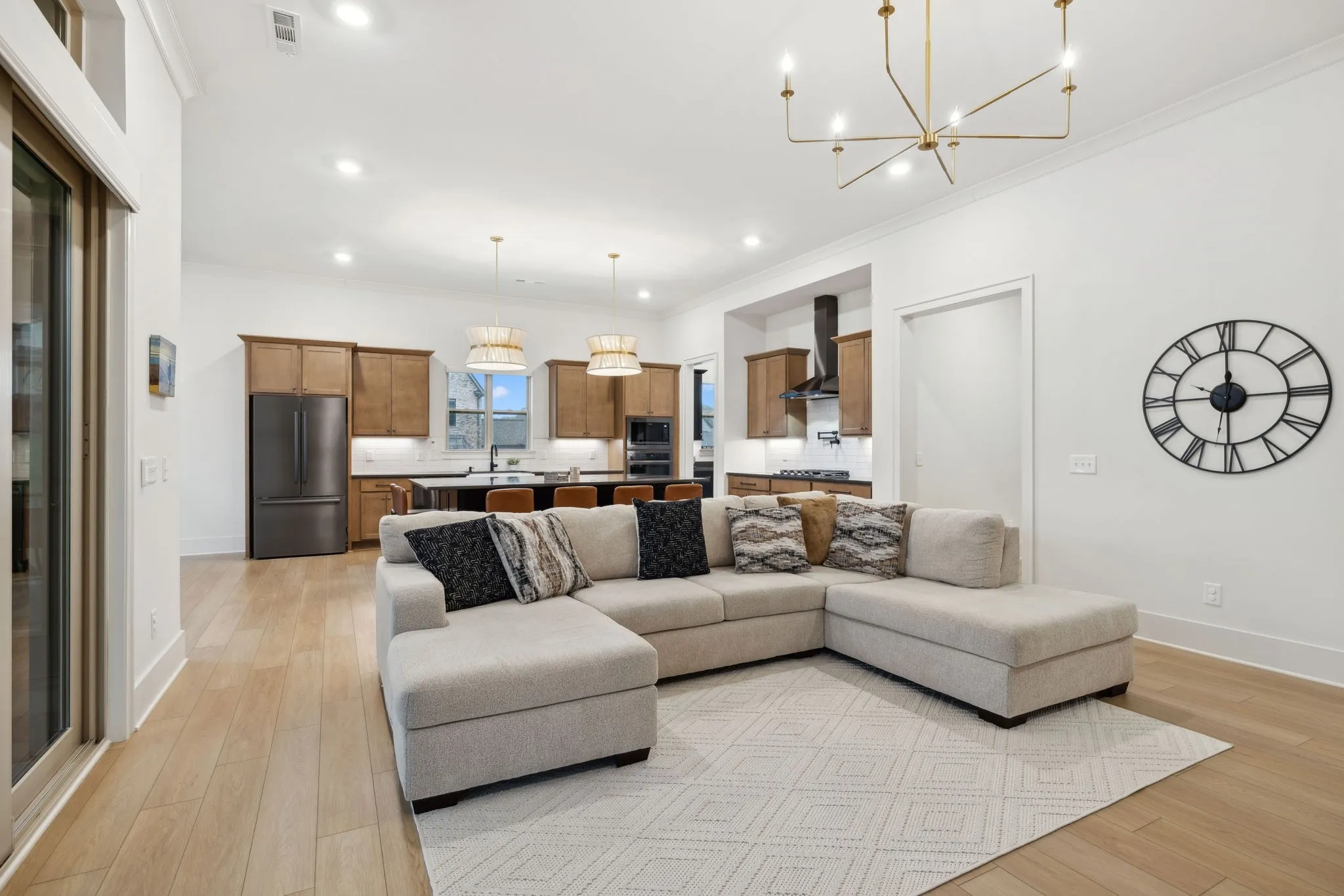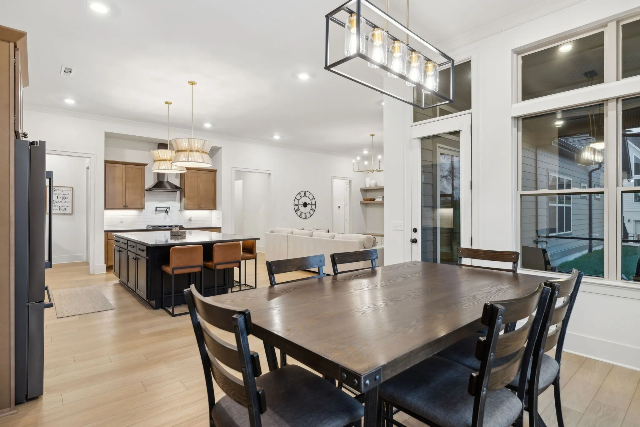 +"PublicRemarks": "Experience the perfect blend of luxury and modern elegance in this exceptional home, ideally positioned on a desirable corner lot in the prestigious Saint Marlo community. From the moment you step inside the grand two-story foyer, you'll be captivated by the open and inviting layout, thoughtfully designed for both comfort and style. The gourmet kitchen is a culinary masterpiece, boasting warm cabinetry, a spacious center island, built-in oven, gas cooktop, farmhouse sink, and a walk-in pantry with a sink and beverage center. The adjacent dining area ensures effortless entertaining, while modern lighting, a cozy gas fireplace, and soaring 11-ft ceilings elevate the home’s sophisticated ambiance. Tinted windows with motorized shades provide an ideal balance of natural light and privacy. The main-level primary suite is a private sanctuary, featuring a spa-like bath with a large floor to ceiling tile walk-in shower, double vanities, and an oversized walk-in closets. A flex room on the main level offers versatility, perfect for use as a home office, formal dining room, or sitting area. Upstairs, two additional bedrooms, a spacious open bonus room, and ample storage complete the second level. There is room to finish the large unfinished space above the garage for a 5th bedroom if desired. Step outside to the screened back patio, where lush trees create a peaceful and private outdoor retreat. Everyday functionality is seamlessly integrated with a drop zone, custom-upgraded laundry room, and powder bath conveniently located off the garage. One of the home’s standout features is the extended 4-car garage, a rare and desirable amenity. With its thoughtful layout, premium finishes, and unbeatable location, this home truly offers the best of Franklin living!"