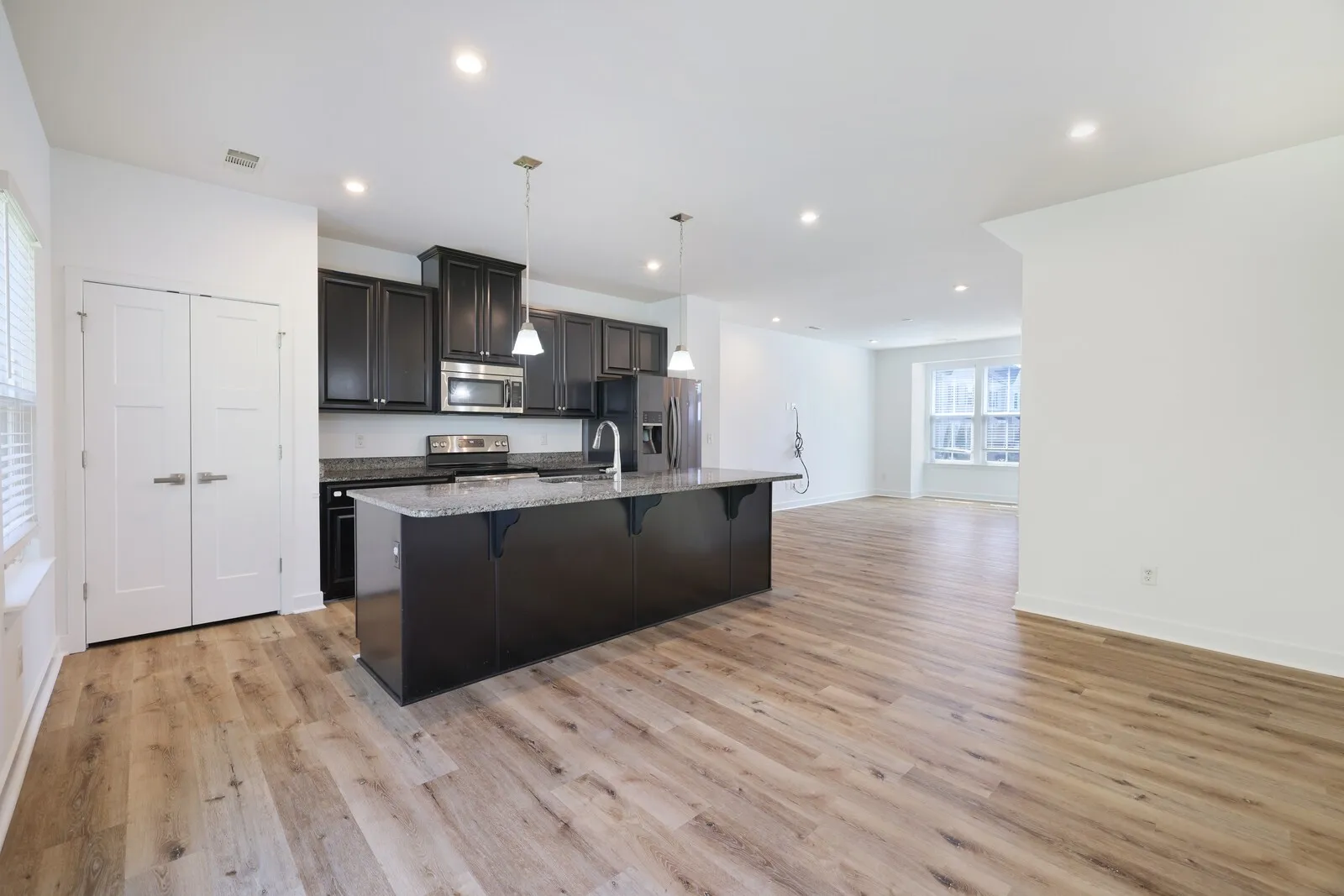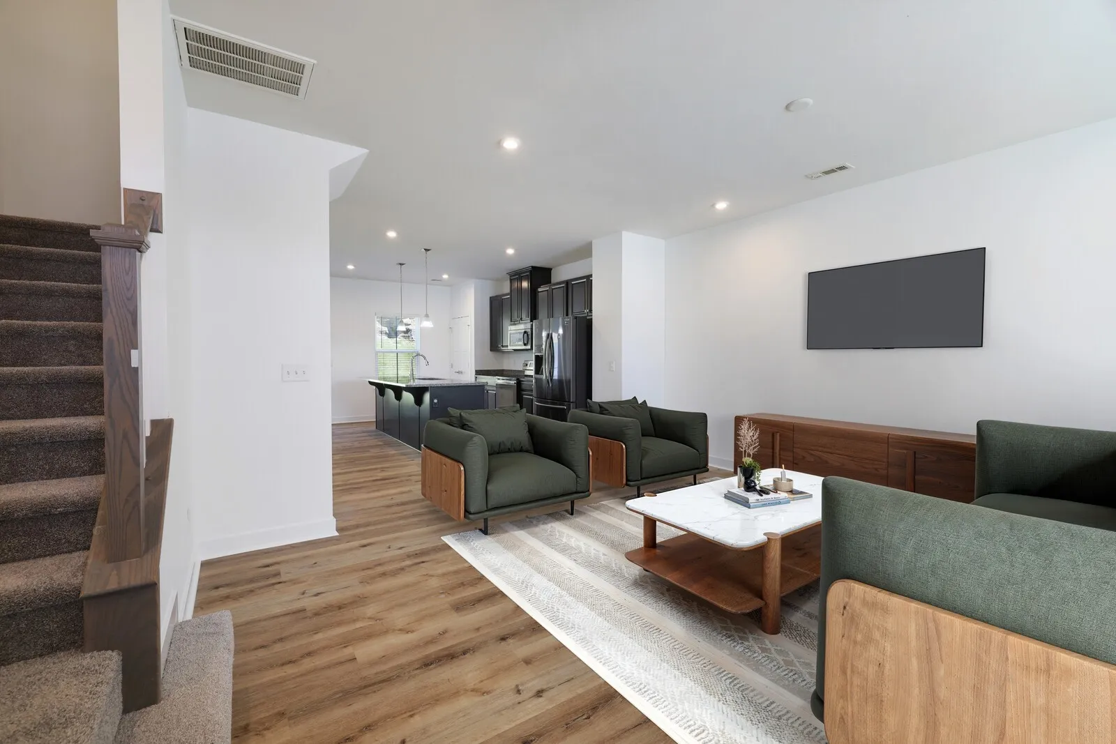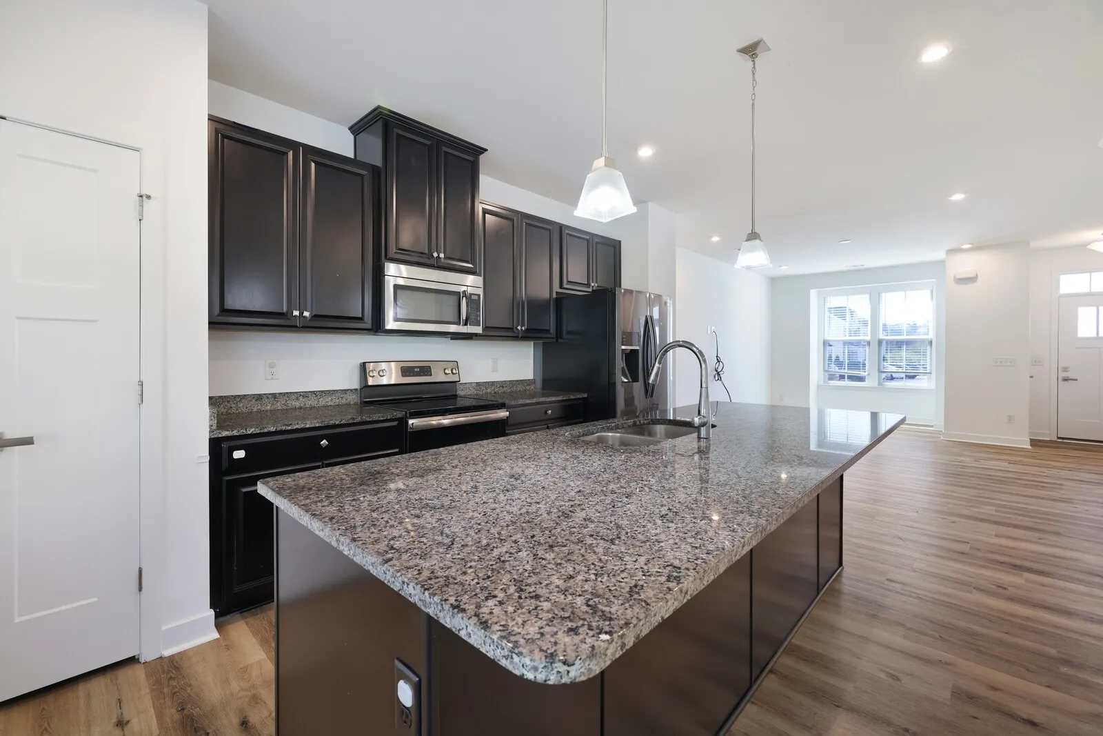 Welcome home to this beautiful 3-bedroom, 2.5-bath home in a sought-after community with access to a neighborhood pool! Designed for modern living, the open-concept layout features a stunning kitchen with rich dark cabinets, stainless steel appliances, and a spacious island—perfect for gathering and entertaining. Upstairs, the inviting primary suite boasts plush carpeting, a trey ceiling, and a private en-suite bathroom. Step outside to enjoy a peaceful back patio, offering privacy with a backdrop of mature trees and a rock retaining wall. Don’t miss this opportunity to enjoy comfort, convenience, and community living at its best! Up to 1% lender credit on the loan amount if the buyer uses the Seller’s Preferred Lender.