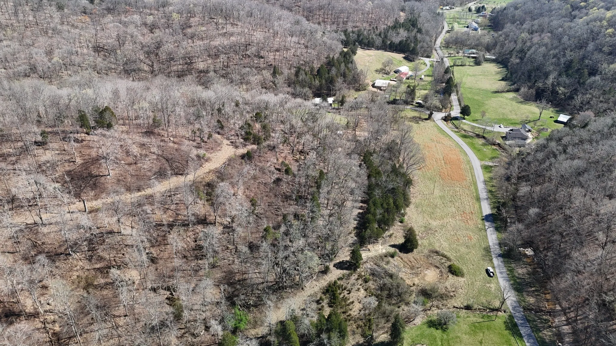 - Lot Features: Level, Wooded, Hilly