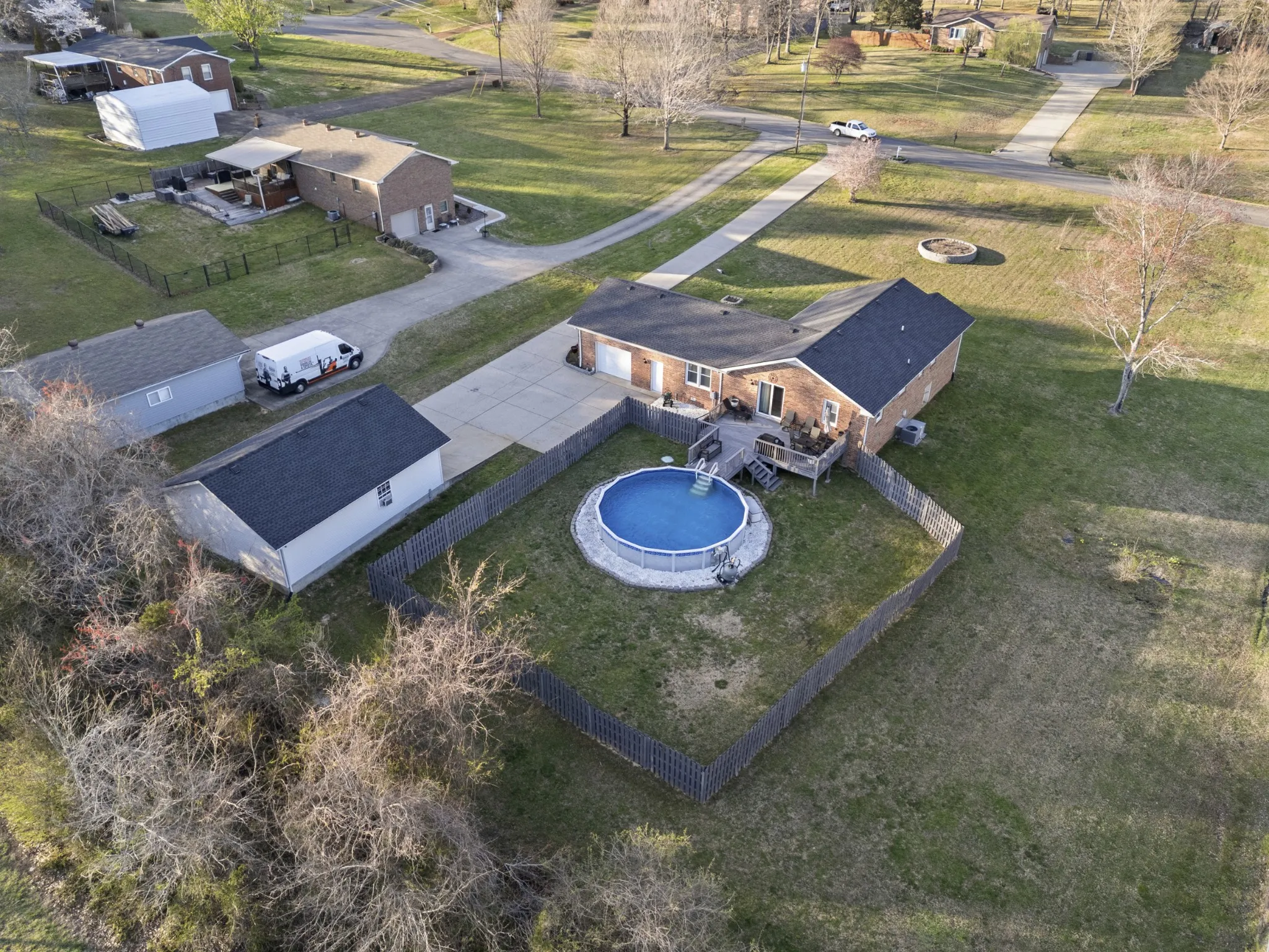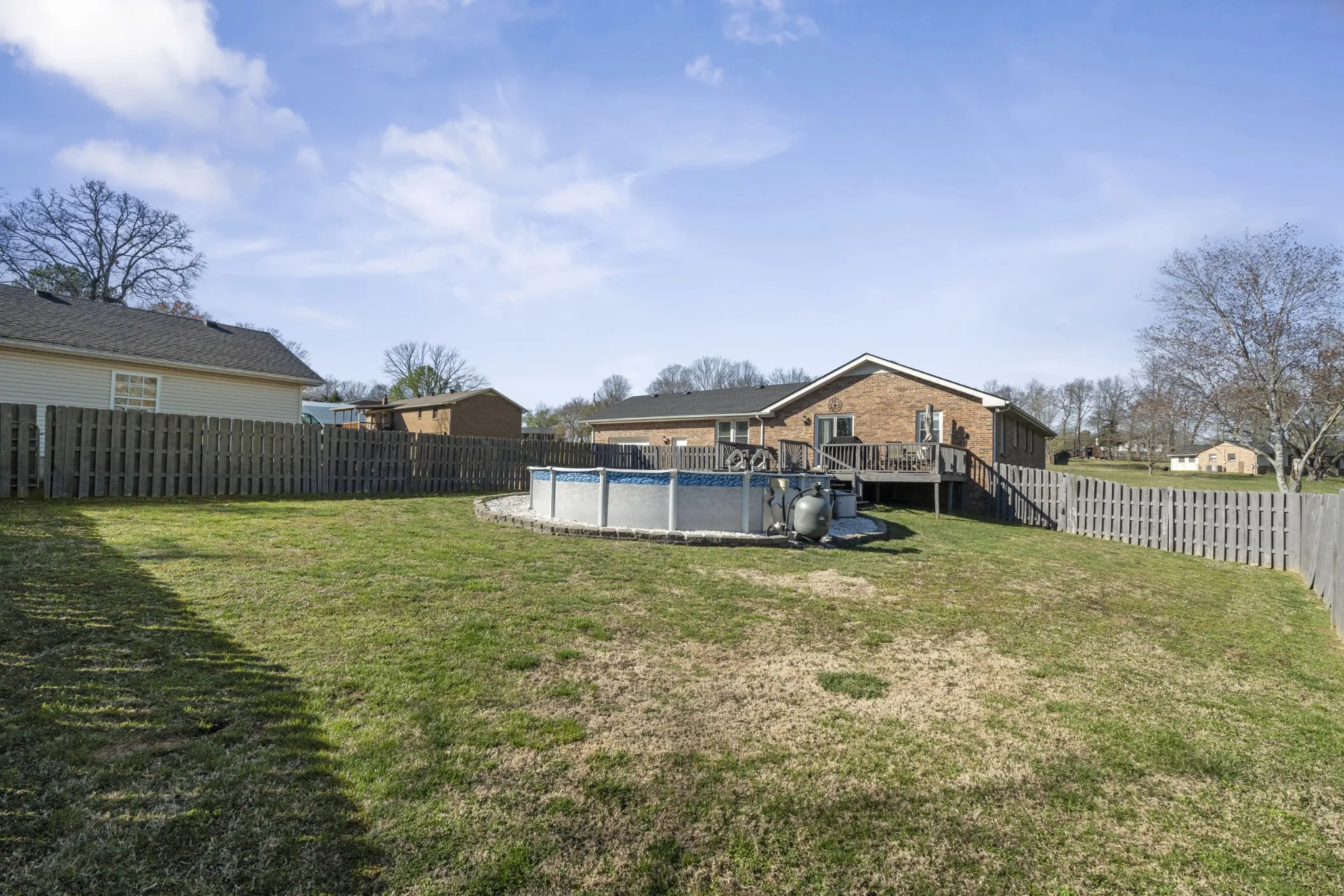 Welcome to this meticulously maintained 3-bedroom, 2-bathroom ranch-style home, offering a perfect blend of comfort and functionality. Situated on a large peaceful lot, this property boasts impressive features including a 24×52 above-ground saltwater pool and a 24×32 detached garage/shop, ideal for hobbyists or those needing extra storage space. Step inside and be greeted by the warmth of new engineered hardwood flooring throughout the home, installed in 2021. The spacious living area leads into the bright dining room, which seamlessly flows into the kitchen. The kitchen features brand-new stainless steel appliances, installed in 2024 and professionally painted white cabinets. The outdoor space is equally impressive, with the 24×52 saltwater pool providing a refreshing oasis during warmer months, perfect for relaxation or hosting gatherings. The detached garage/shop offers ample room for vehicles, equipment, or projects, providing additional storage and versatility. Conveniently located near local schools, dining, and interstate access, this home offers both tranquility and accessibility. With its thoughtful upgrades and meticulous care, this property is a rare find. Schedule your showing today!