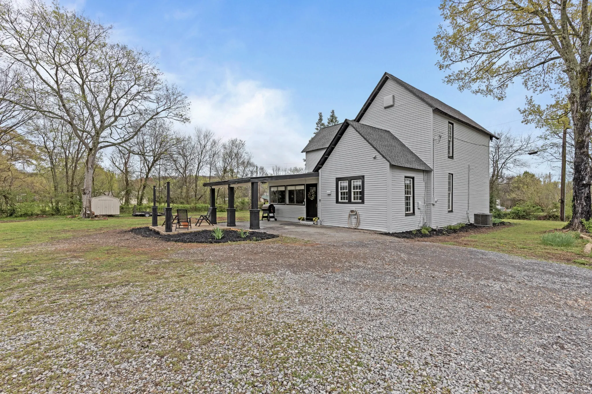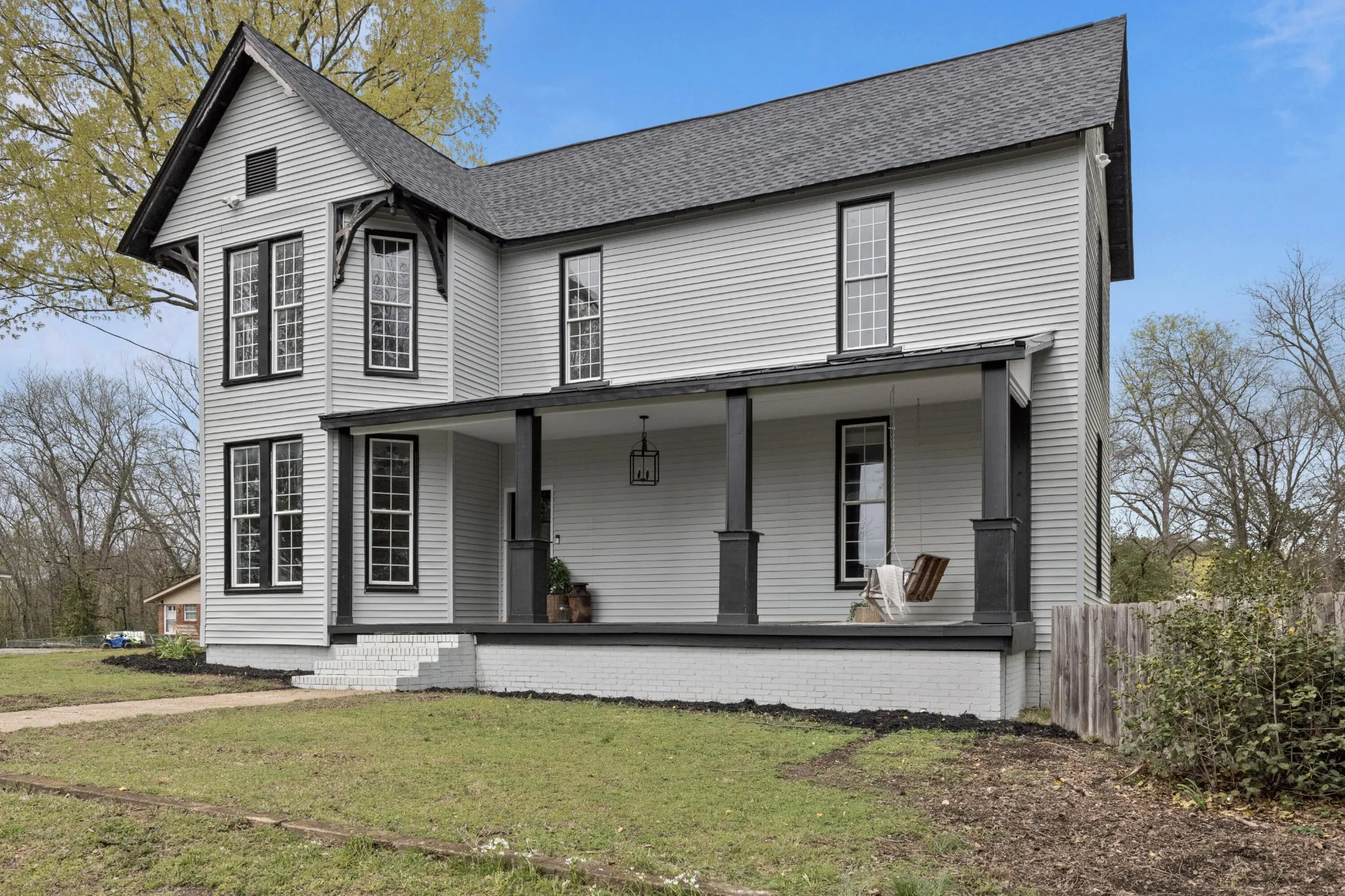 Welcome to 331 Smith Circle, where historic charm meets modern convenience. This beautifully remodeled 4-bedroom, 3-bath home boasts double bay windows, a detached two-car garage, and a covered porch with a classic swing—an ideal retreat. Step through the grand entryway, where a sweeping hardwood staircase and decorative tiled flooring set the stage. Just off the foyer, the living room features built-in bookcases, a cozy gas fireplace, soaring ceilings, and tall windows that bathe the space in natural light. The kitchen is a showstopper, with tiled flooring, a decorative wood ceiling, and seamless flow into the dining room, which includes a built-in wine fridge, dry bar, and dual double windows overlooking the covered back porch. The main level hosts two spacious bedrooms, including the primary suite with its own fireplace and en-suite bath featuring an oversized shower/tub combo. The guest bedroom also boasts a fireplace and picturesque bay windows. Ascend the grand staircase, where a double-tiered chandelier leads to an open office space with bay windows. Another large bedroom features a fireplace and en-suite bath with a double-sink vanity. The upstairs laundry room offers ample cabinetry and counter space. Outside, the covered back porch and level yard lead to the detached garage—currently a home gym. A separate storage shed adds extra space. This home is in a prime location, just 25 minutes from Hamilton Place and downtown Chattanooga. Major updates include a brand-new roof, 4-ton HVAC unit, septic system, and fully encapsulated crawlspace. The detached workshop/garage is fully insulated, with its own HVAC mini split system and standalone electrical. This versatile space was a must-have for us when house-hunting. For nature lovers, a 5-minute walk leads to Holcomb Heritage Park with miles of trails. Just a 7-minute walk to the elementary school and under half a mile from Tunnel Hill Golf Club, this home blends charm and convenience.