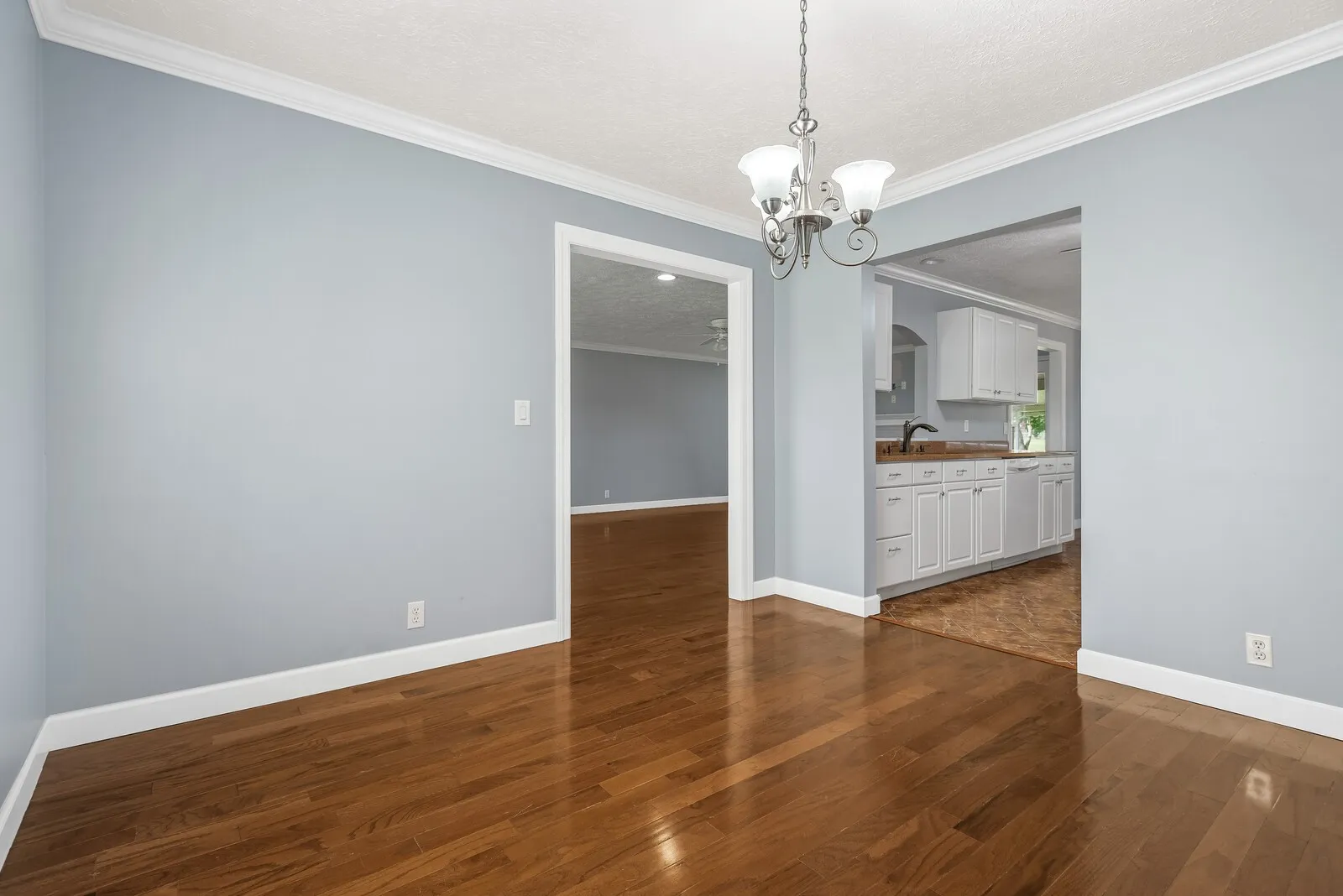 Nice Ranch home with 3 bedrooms, 2 bathrooms, 2 car garage and huge 3/4 Acre yard. Hardwood floors throughout and tile in bathrooms. No Carpet. Separate Dining Room adjacent to kitchen and living room. Eat in Kitchen. Garage is oversized with storage room and shelving and is located on the rear of the home. Storage building in back yard. Home is on cul de sac. Large Screened/Covered Patio in back. Small dog under 25 lbs considered. Very convenient to I24, Schools, Restaurants and Shopping. Available May 1st.