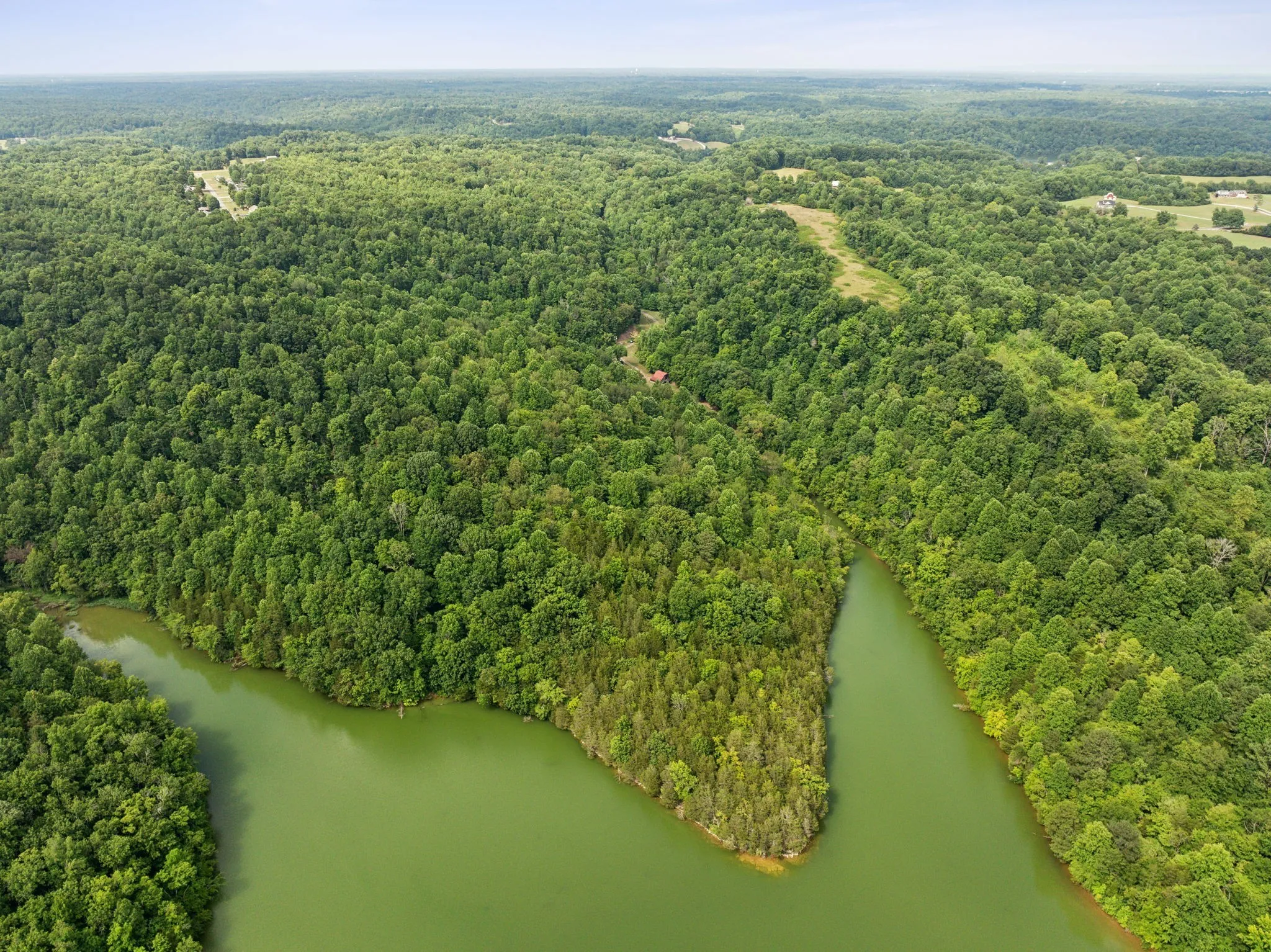 Introducing “Lost Creek,” a stunning 90-acre estate nestled on the shores of Tims Ford Lake in the heart of Moore County, Tennessee. This exclusive property offers unparalleled natural beauty, recreational opportunities, and refined living. The estate’s centerpiece is a beautifully designed 2-bedroom, 1-bathroom log cabin, a true testament to country living. It features high ceilings, finished wood floors, and a cozy wood-burning fireplace, perfect for those seeking a refined lifestyle. The wraparound covered porch provides a tranquil setting for relaxing while taking in the lakefront views. Complementing the cabin is an barn equipped with four stalls and a wash rack, a perfect addition for equestrian pursuits. The estate’s vast shoreline and panoramic lake views create a setting of unmatched tranquility. With over 86 acres of mature timber and 3.5 acres of open pasture, the property is as versatile as it is picturesque. Its extensive trail system is perfect for horseback riding, hiking, or UTV exploration. Its abundant wildlife makes it a haven for deer and turkey hunting enthusiasts. For water lovers, Tims Ford Lake offers year-round access to some of the region’s finest fishing and boating. The properties shoreline presents the potential for a private dock, a feature that will surely enhance its recreational appeal and make it a dream come true for boating enthusiasts. Located just minutes from historic Lynchburg and the scenic Tims Ford State Park, Lost Creek offers the tranquility of rural living with the convenience of nearby amenities. This exceptional property allows one to own a significant stretch of one of Tennessee’s most coveted lakes, all within easy reach of essential services and attractions. Contact us today to schedule a private showing and discover the unmatched elegance and possibilities that await at Lost Creek.