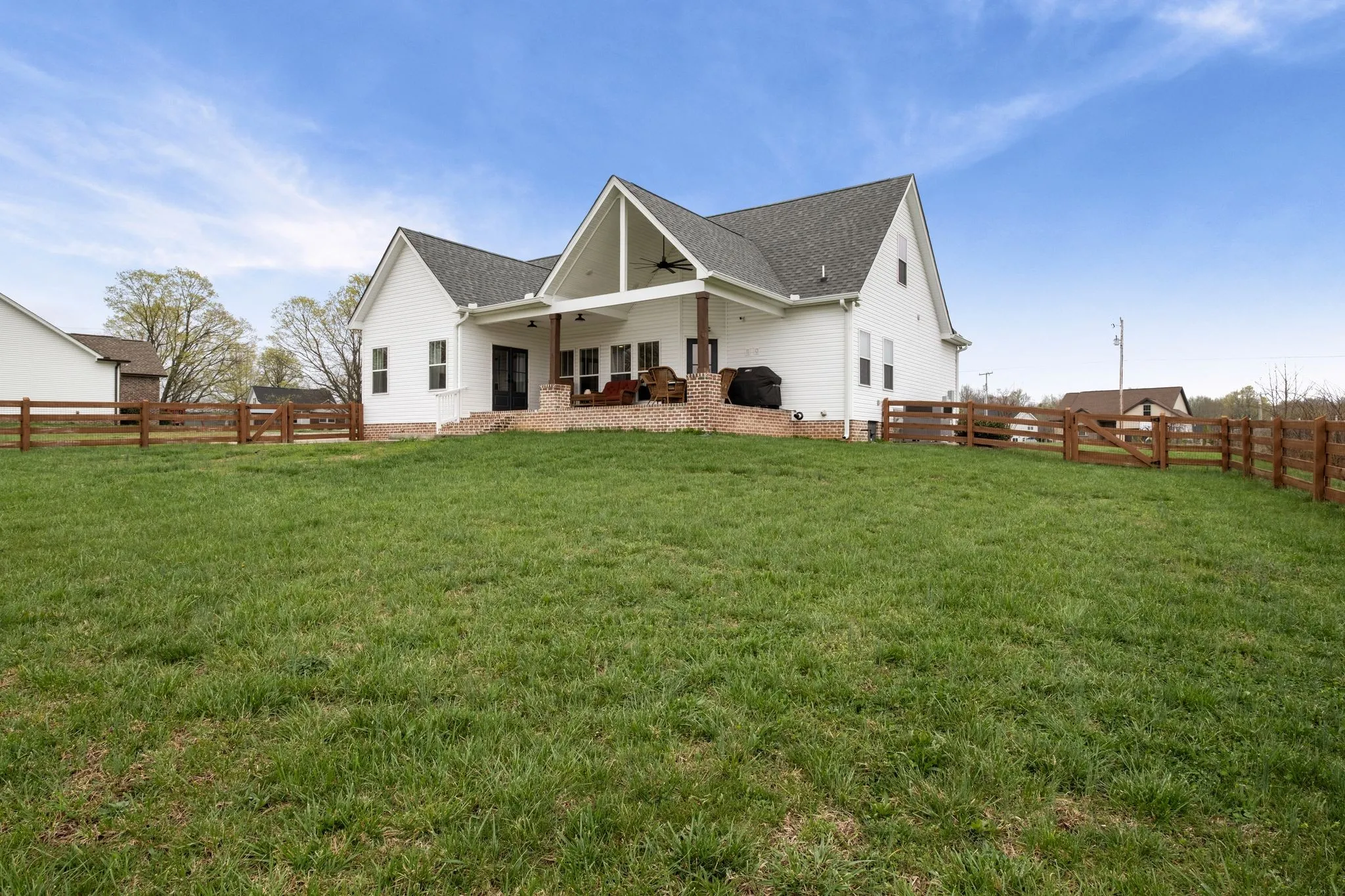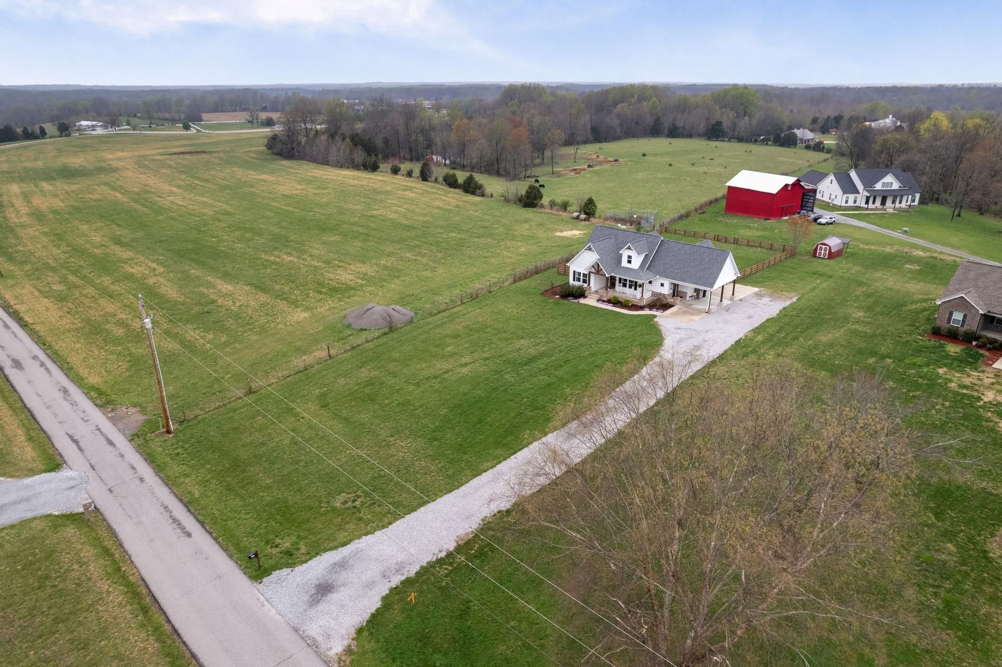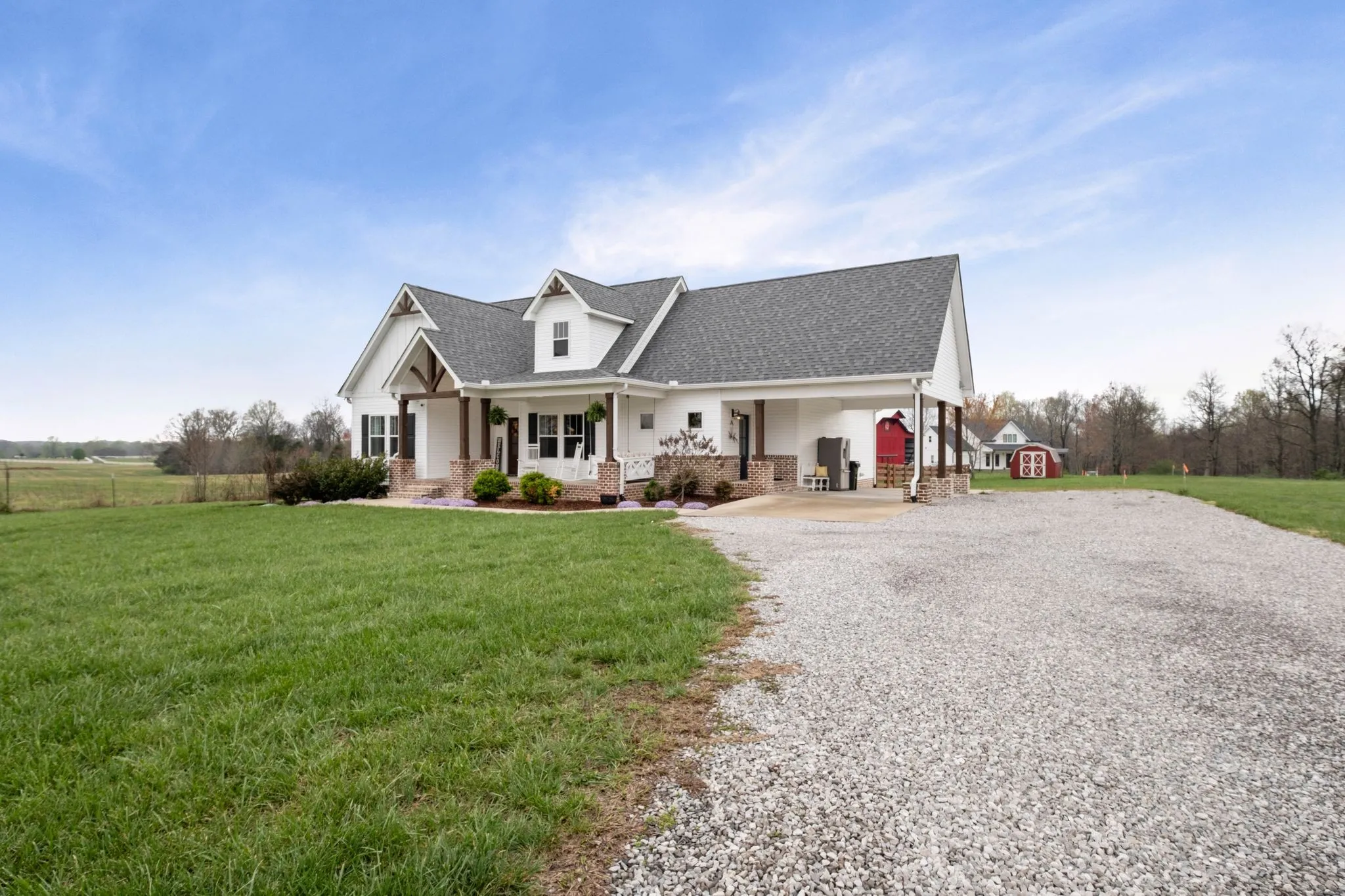 NEVER OFFERED ON THE MARKET … One-of-a-Kind Elegant Farmhouse in Portland, TN ~ Nestled in the serene countryside of Portland, TN, this exquisite farmhouse offers a perfect blend of rustic charm and modern luxury. Thoughtfully designed with high-end finishes, the home showcases a striking wood stove hood that serves as a centerpiece in the beautifully appointed kitchen. Upgraded granite countertops, including select surfaces with a stylish leathered finish, add a sophisticated touch. The primary suite is a serene retreat, where double French doors open to soothing sunset views over the sprawling field. Pamper yourself in the private bath and enjoy the convenience of a spacious wardrobing closet. Step outside onto the covered back patio, where solid wood beams and a vaulted ceiling create an inviting space to relax or entertain while soaking in the tranquil scenery. Outdoors, the covered back patio invites you to relax or entertain beneath its vaulted ceiling and striking solid wood beams. The charming covered front porch, which also features solid wood beams and columns, is perfect for enjoying a leisurely afternoon snack or your favorite beverage while taking in the countryside tranquility. Built for year-round comfort, the home features an encapsulated crawlspace, ensuring controlled temperatures and enhanced efficiency. This distinctive farmhouse with upgrades galore offers refined country living at its finest—a rare opportunity to enjoy luxury, privacy, and timeless beauty. Come and see for yourself—prepare to be wowed. Take advantage of this rare opportunity to own this stunning farmhouse and make it uniquely yours.