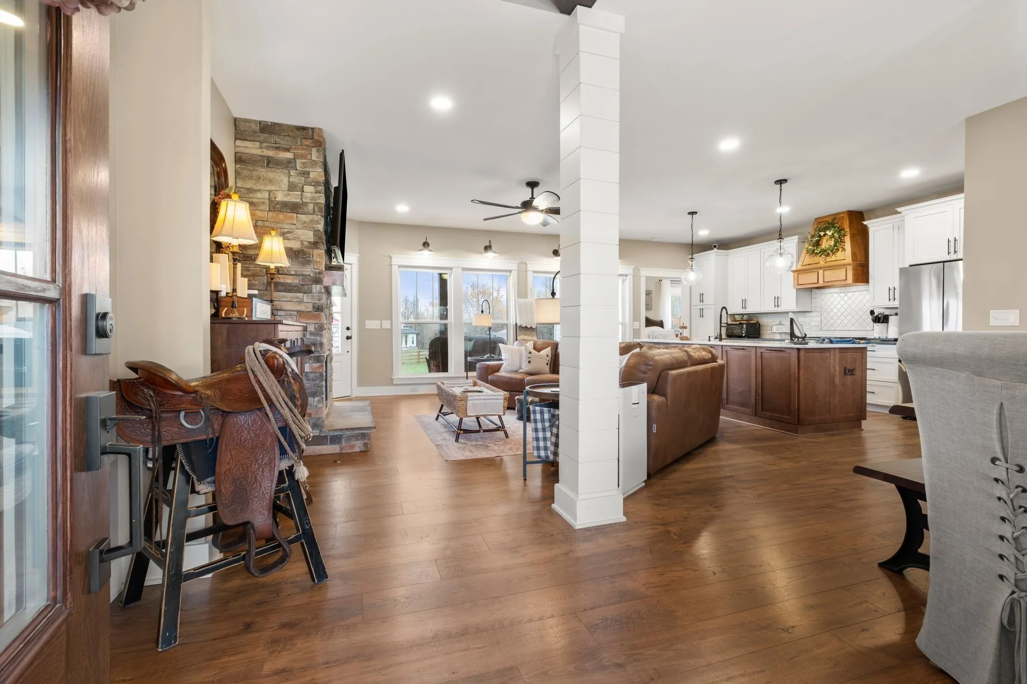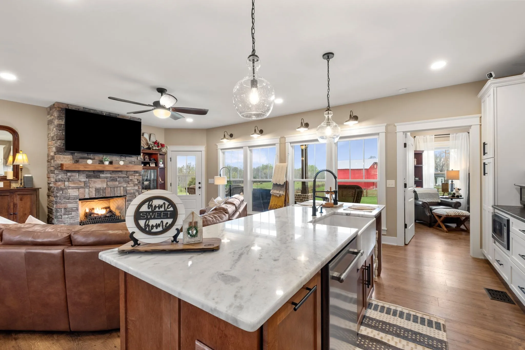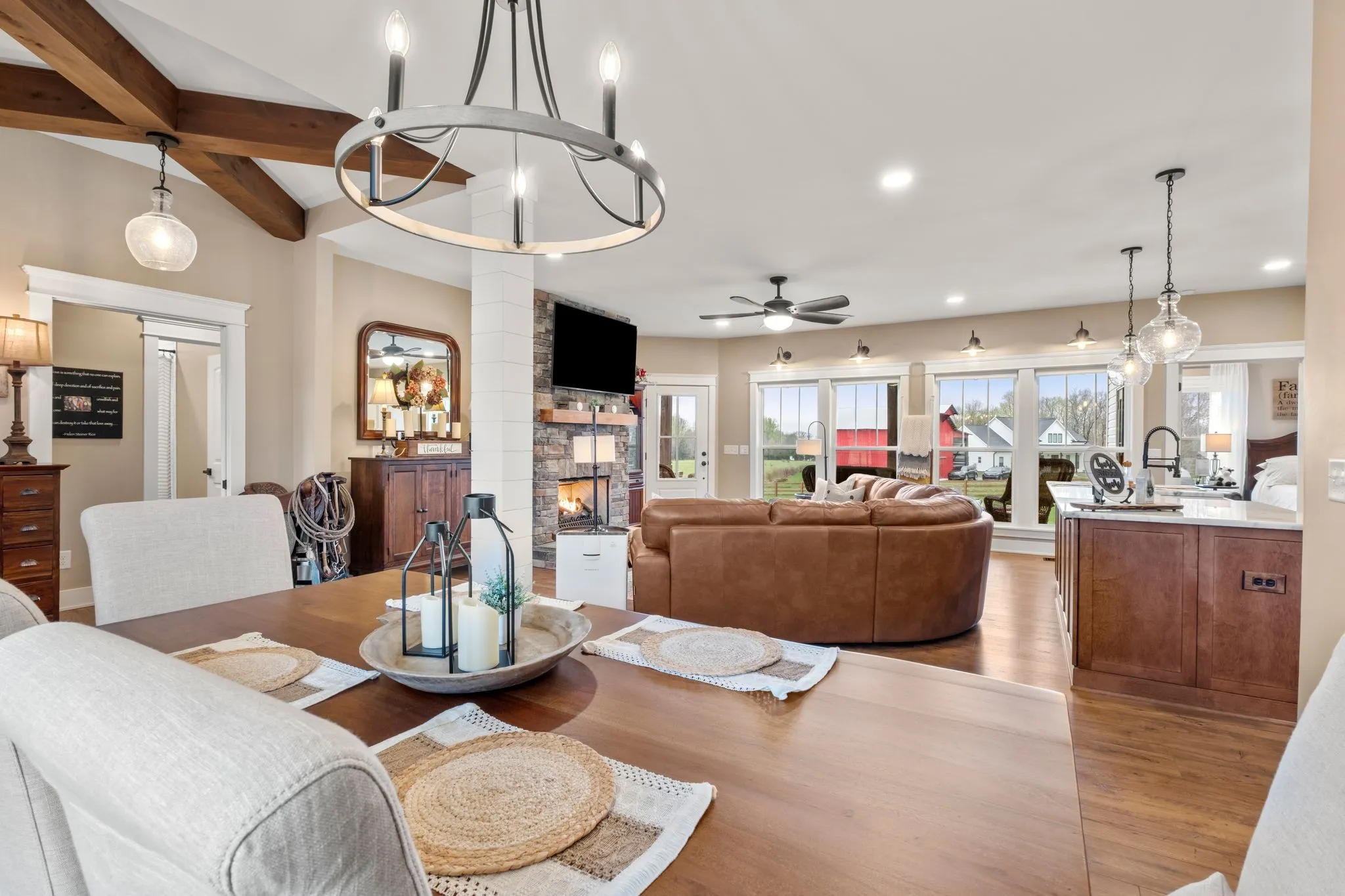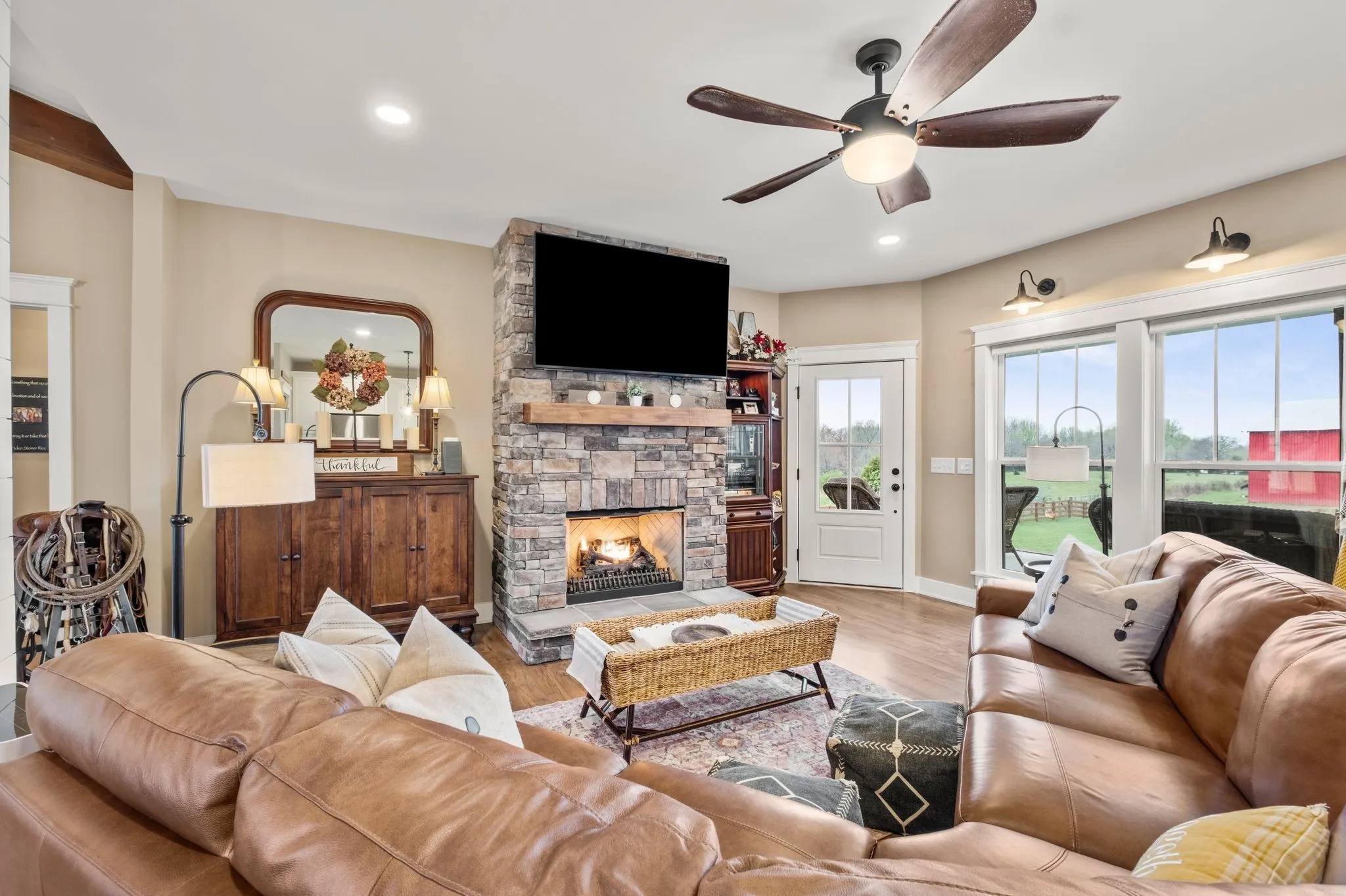 NEVER OFFERED ON THE MARKET … One-of-a-Kind Elegant Farmhouse in Portland, TN ~ Nestled in the serene countryside of Portland, TN, this exquisite farmhouse offers a perfect blend of rustic charm and modern luxury. Thoughtfully designed with high-end finishes, the home showcases a striking wood stove hood that serves as a centerpiece in the beautifully appointed kitchen. Upgraded granite countertops, including select surfaces with a stylish leathered finish, add a sophisticated touch. The primary suite is a serene retreat, where double French doors open to soothing sunset views over the sprawling field. Pamper yourself in the private bath and enjoy the convenience of a spacious wardrobing closet. Step outside onto the covered back patio, where solid wood beams and a vaulted ceiling create an inviting space to relax or entertain while soaking in the tranquil scenery. Outdoors, the covered back patio invites you to relax or entertain beneath its vaulted ceiling and striking solid wood beams. The charming covered front porch, which also features solid wood beams and columns, is perfect for enjoying a leisurely afternoon snack or your favorite beverage while taking in the countryside tranquility. Built for year-round comfort, the home features an encapsulated crawlspace, ensuring controlled temperatures and enhanced efficiency. This distinctive farmhouse with upgrades galore offers refined country living at its finest—a rare opportunity to enjoy luxury, privacy, and timeless beauty. Come and see for yourself—prepare to be wowed. Take advantage of this rare opportunity to own this stunning farmhouse and make it uniquely yours.