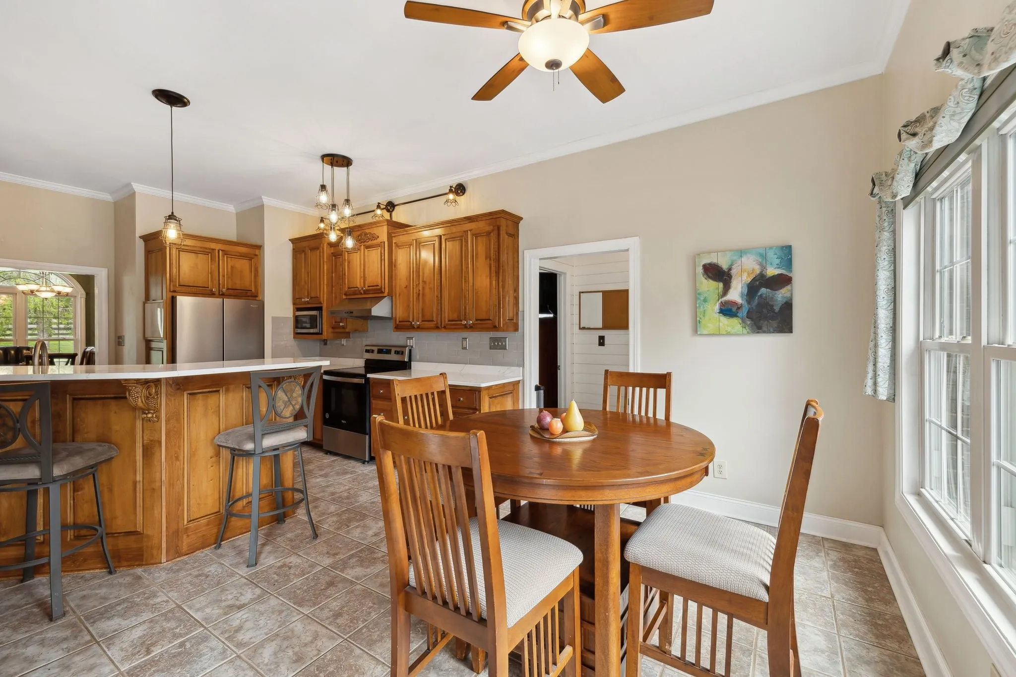 Welcome to 6572 Leipers Creek Rd., where modern updates blend seamlessly with country charm on 2.2 acres of picturesque land, complete with Leipers Creek flowing through the property. This spacious 3,400 sq. ft. home boasts an updated kitchen featuring new quartz countertops, a stylish backsplash, upgraded lighting, and a walk-in pantry. Upstairs, the bonus room offers fresh carpet and paint, while the downstairs Jack and Jill bathroom has been beautifully renovated and the primary bathroom includes a brand-new shower. Step outside to enjoy a fully fenced front and backyard, a newly renovated back deck, and an array of fruit trees and bushes scattered across the property. For those needing extra space, the 30×50 insulated barn with power and water opens up endless possibilities, plus there’s a dedicated RV slab with a 50-amp power hookup. Additional updates include a newer roof and water heater. With Leipers Creek running through the property, this home offers a peaceful retreat paired with modern conveniences. Don’t miss your chance to see it—schedule a private showing today!