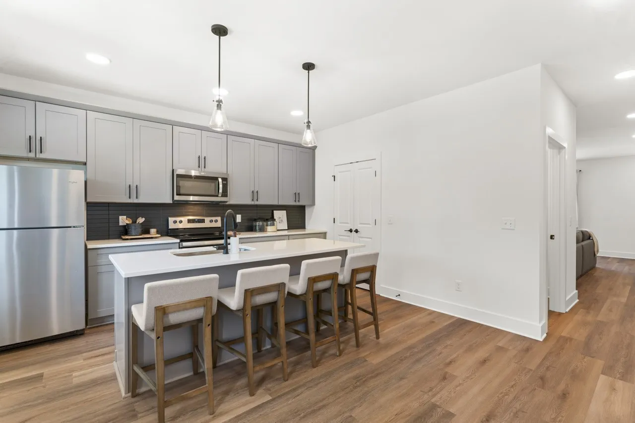 To Be Built – Choose your selections at Soren! This Lachlan floorplan is yours to personalize! Contact our Sales Counselor for details. Soren, a Legacy South gated Community featuring 120 Contemporary Collection townhomes just outside of Nashville in the heart of Madison, TN. Within walking distance of city park! Fall in love with this floorplan featuring 9 ft ceilings, three bedrooms each with private bath, Two car garage. Quality included finishes including quartz counters, soft close cabinets & drawers, frameless shower door at owner’s bath, luxury vinyl in main living areas.