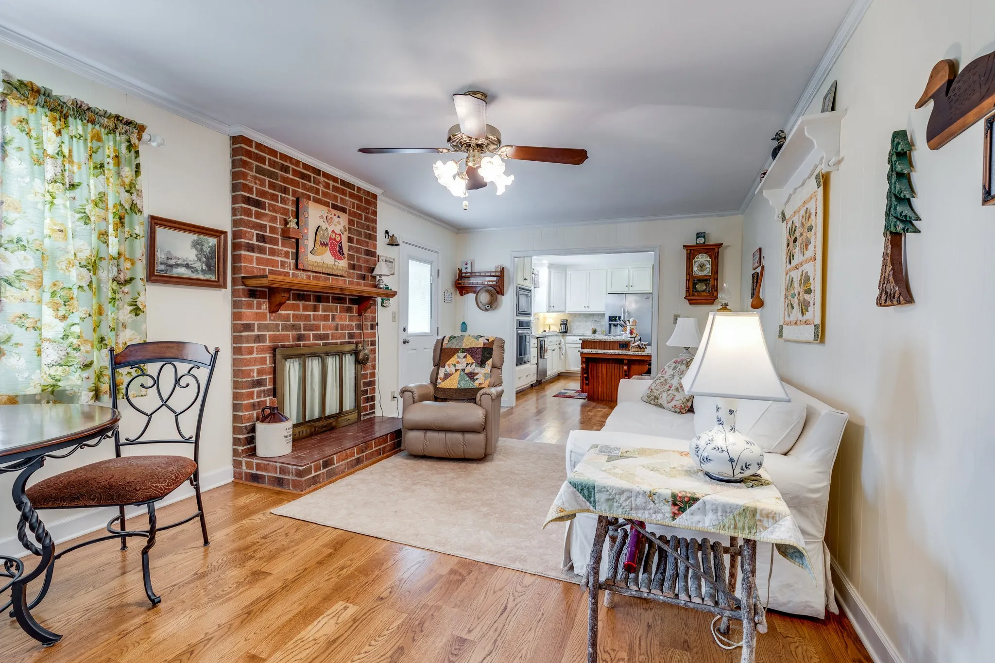 +"PublicRemarks": "Immaculate Vintage Ranch on Cul-de-Sac | 4 Beds, 2 Baths, Renovated Kitchen & More! Step into timeless charm with this beautifully maintained vintage ranch-style home, ideally located on a quiet cul-de-sac in a peaceful neighborhood with no HOA. Offering four spacious bedrooms and two updated tile bathrooms, this home is in pristine condition and ready for its next chapter. Inside, you'll find gleaming hardwood floors throughout the main living areas and den, while three of the bedrooms are carpeted for added comfort. The cozy den features a classic brick fireplace, creating a perfect space to unwind or entertain. The renovated kitchen combines functionality with modern flair, showcasing stainless steel appliances, granite countertops, and updated cabinetry. The primary bathroom has also been thoughtfully remodeled, offering a fresh, contemporary feel. This home features a level, fenced backyard—ideal for outdoor gatherings, pets, or play—as well as a paved driveway and a two-car garage for convenience. A separate storage building equipped with shelves and a workbench adds valuable space for tools, hobbies, or projects. Important updates include a new roof installed in 2020 and a current termite contract, giving buyers added peace of mind. With its prime location near the hospital, doctors’ offices, schools, shopping, and restaurants, this home offers a perfect blend of classic character, modern updates, and everyday convenience. Don’t miss this rare opportunity—schedule your private showing today."