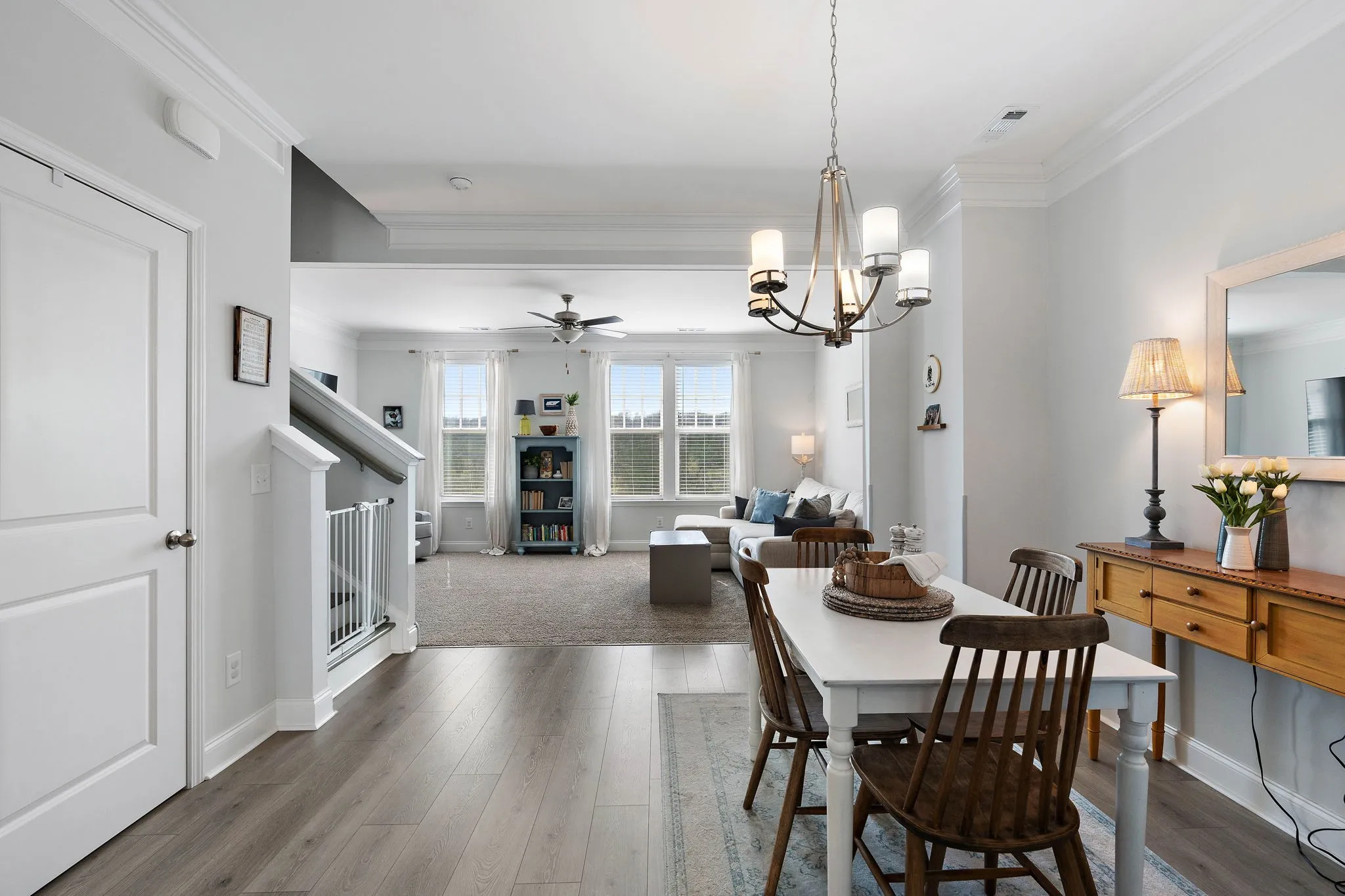 NEW PRICE! Located in the heart of Nolensville’s Burkitt Commons, this like-new exterior facing townhome is new-owner ready! Covered front porch with rocking chair views, open floor plan with living/family room, dining room, and kitchen with breakfast area, island, and pantry. Hardwood, carpet and tile flooring, granite and quartz counters, and tiled baths! Spacious primary and secondary en-suites located at third level with private third bedroom (current home office) and bath located on main. Two car garage and rear deck. Walkable to dog park, shopping, restaurants, coffee shops, and more!