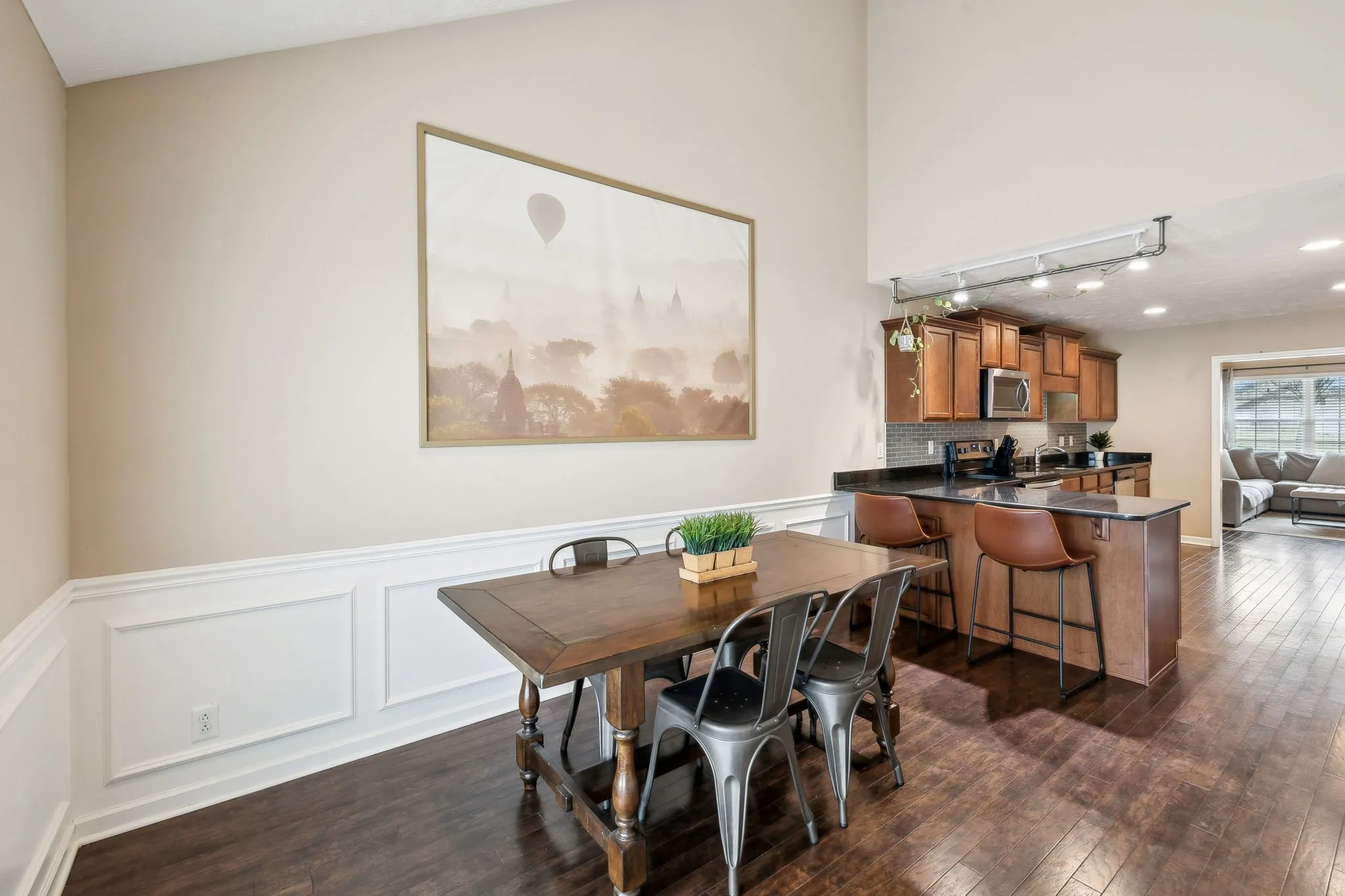 Welcome to this exceptional 2-bedroom, 2.5-bathroom townhome in The Villas of Evergreen Farms. Located at the end of a three-unit building, this home offers privacy, community green space & guest parking. As you step inside, you’re immediately greeted by a spacious and thoughtfully designed floor plan. The heart of the home is the kitchen, which features granite countertops, wood cabinetry, a tile backsplash, stainless steel appliances, and separate pantry. Adjacent to the kitchen is a dining area, where you can enjoy meals with family & friends. A large piece of artwork in the dining room can stay with the home, adding a personal touch that complements the space. Step outside onto the large patio w/ privacy fence, where you’ll find a space perfect for relaxing or entertaining. The main level also includes a Living Room with vaulted ceilings, a convenient half bath, a Laundry Room and a Primary Bedroom/Bath. Primary Bedroom has vaulted ceilings and room for your king-size bed and furniture. The Primary Bath has a shower and tons of storage with two separate closets.The attached one-car garage adds another layer of convenience, providing space for your vehicle and additional storage. Upstairs, you’ll find the spacious second bedroom with double closets and an attached private bath. One of the standout features of this home is the large loft area, which is perfect for use as a home office, a playroom, or even a media room. With plenty of natural light and open space, the loft allows you to create an area that suits your unique needs, offering flexibility and versatility. Whether you need a quiet place to work from home or a space for hobbies and creativity, this loft is an excellent addition to the home. Storage will never be an issue in this home. With numerous closets throughout, you’ll have ample room to organize your belongings, making it easy to keep everything in its place. This home truly offers the perfect balance of comfort, privacy, and functionality.