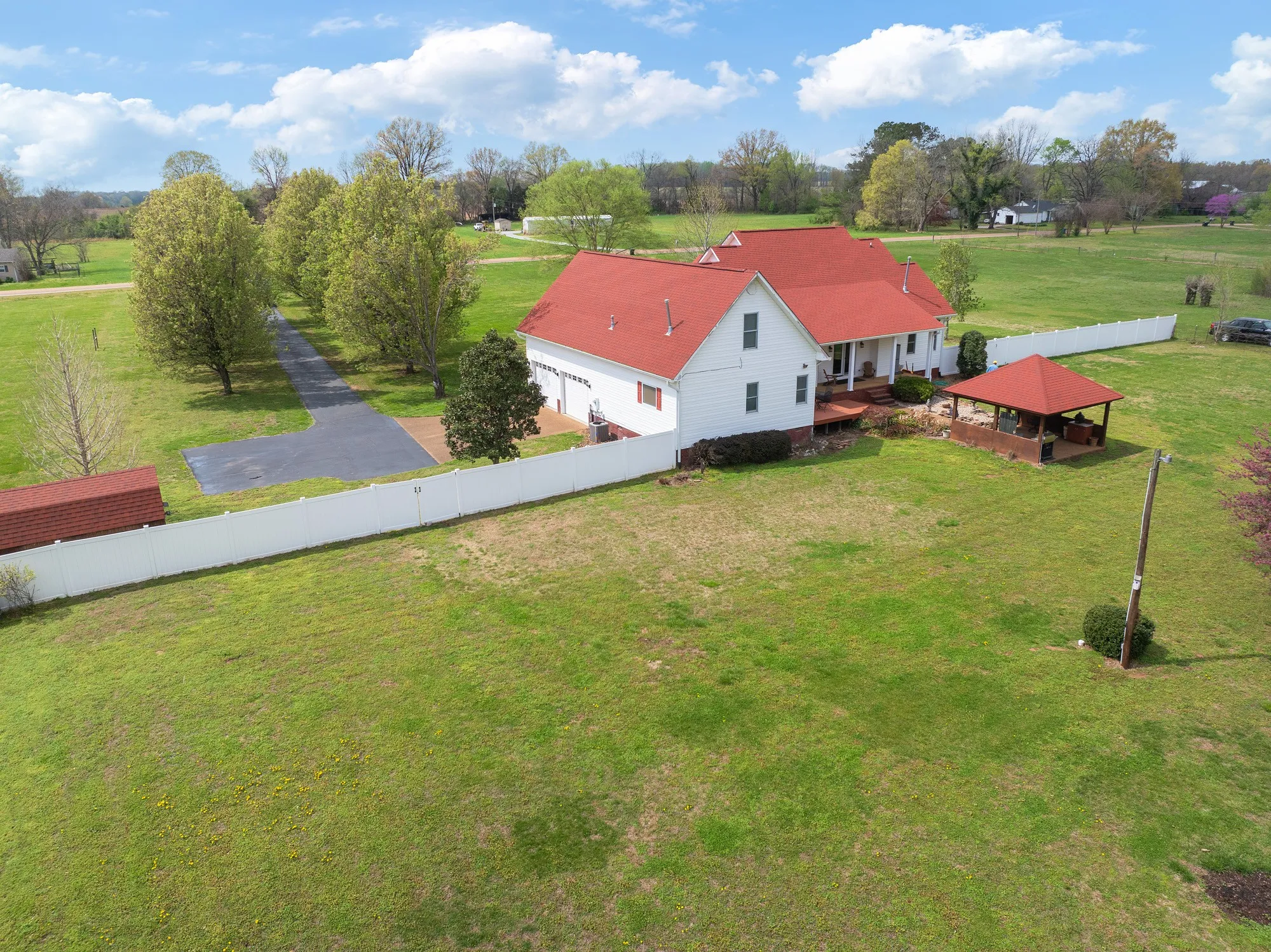 Absolutely beautiful 4 /5 bed, 3 1/2 bath home on over 5 acres with a pond. The home is over 3,800 sq ft with a grand entry, gorgeous stair case & an incredible custom kitchen. The kitchen has a Wolf stove, warmer drawer, built in Subzero refrigerator, ice maker in the peninsula that makes pellet style ice & a microwave drawer in the island. There are 3 bedrooms with a split bedroom plan & 2 1/2 bathrooms downstairs. Upstairs has 1 bedroom, 1 bathroom, an office/bedroom, an enormous game/media room completed with tongue & groove wood walls & ceiling. In the fenced in backyard there’s a greenhouse, gazebo & shed. Updates include: downstairs HVAC April 2025, upstairs HVAC 2021, roof replaced 2020, all flooring downstairs except 1 bedroom & 1 bathroom replaced in 2021 & the solar system was installed in 2021. Two new lithium batteries were installed in June 2025 for the solar system. To top it off, the seller is offering a 1 year home warranty for the new owner. This is definitely a custom dream home within minutes to Mckenzie, Huntingdon & Paris.