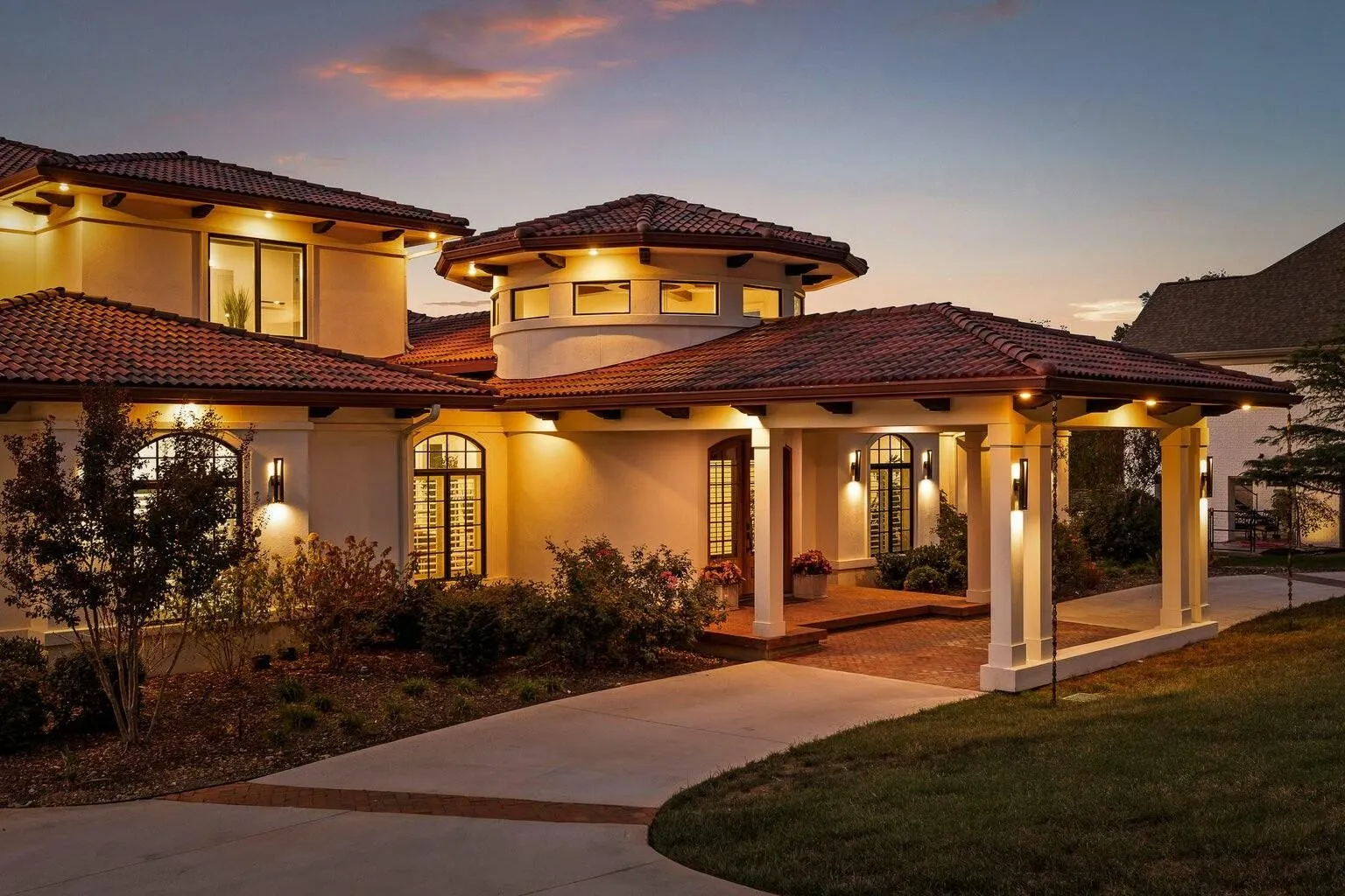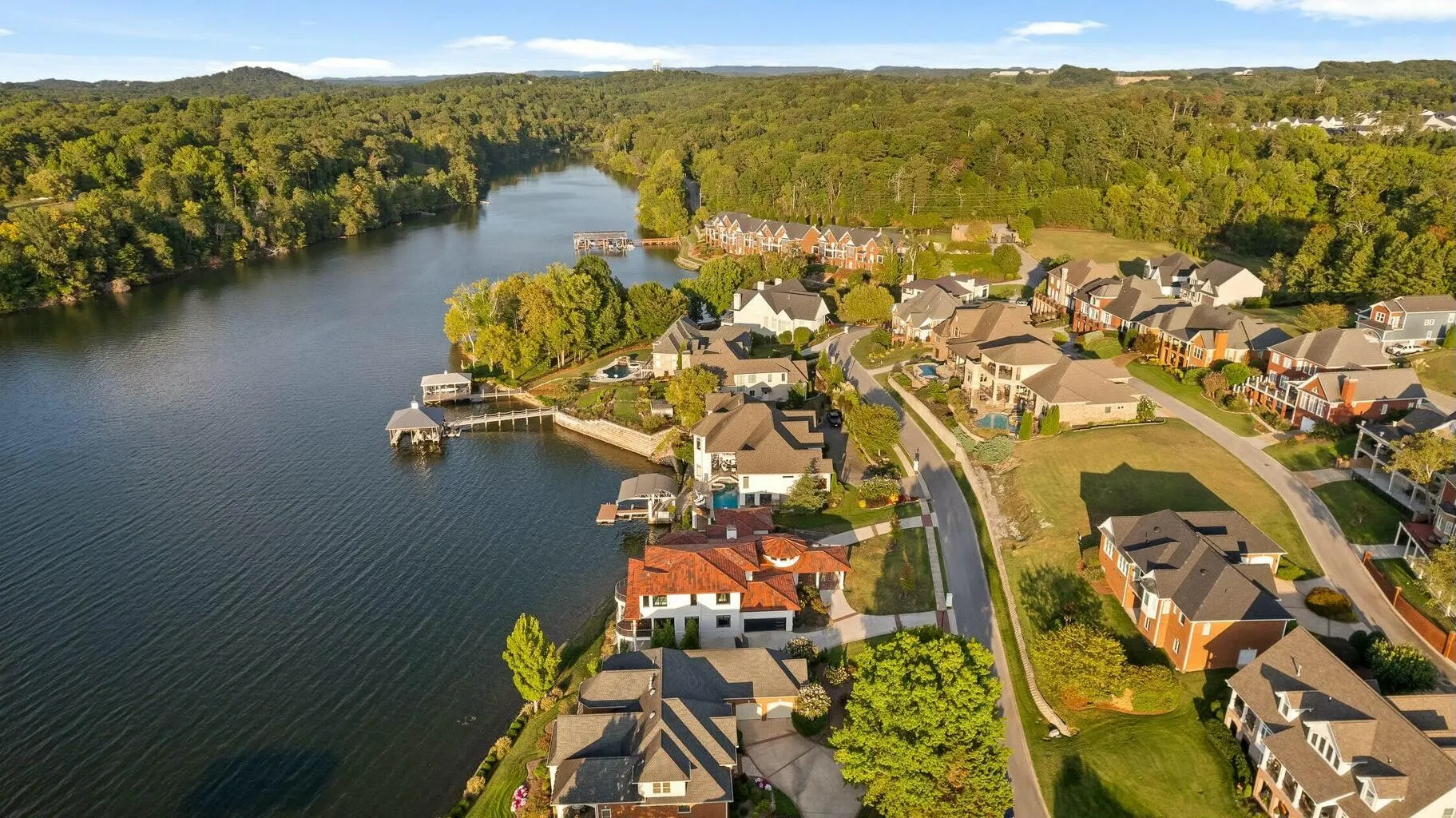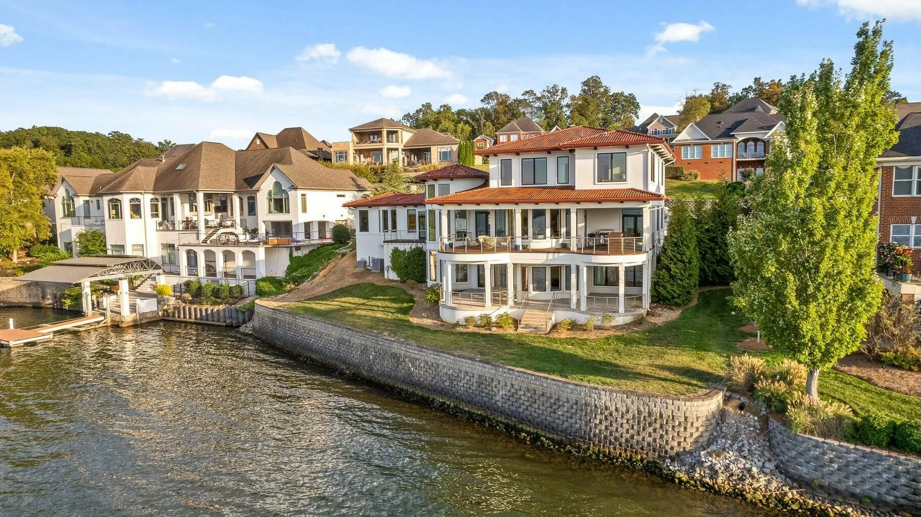 Exterior highlights include a porte cochere entry, 10-ft front door, multiple covered terraces, and sophisticated Spanish Mediterranean design. Just 20 minutes from downtown Chattanooga and Hamilton Place Mall, this home combines serene lakeside living with city convenience.