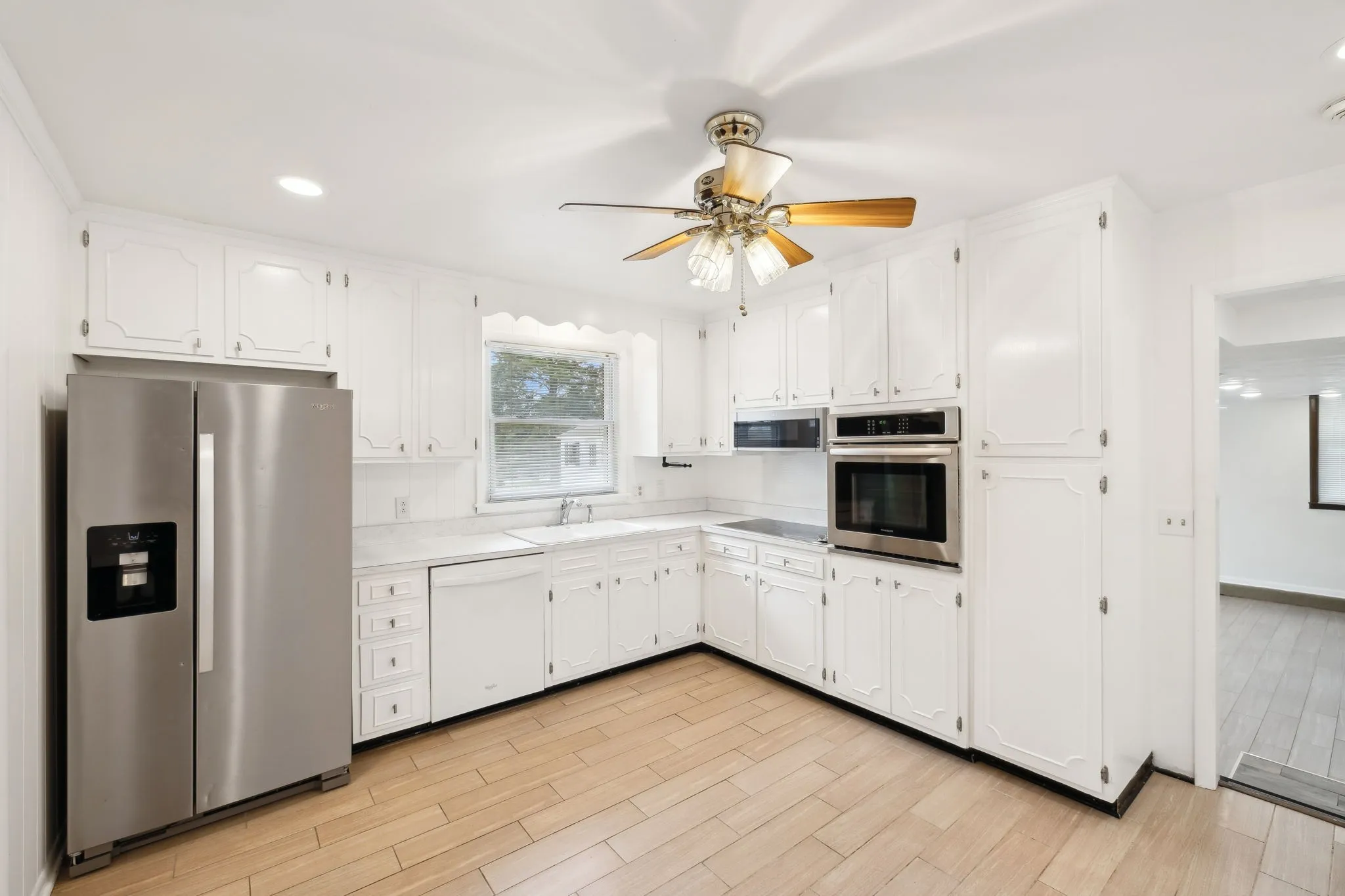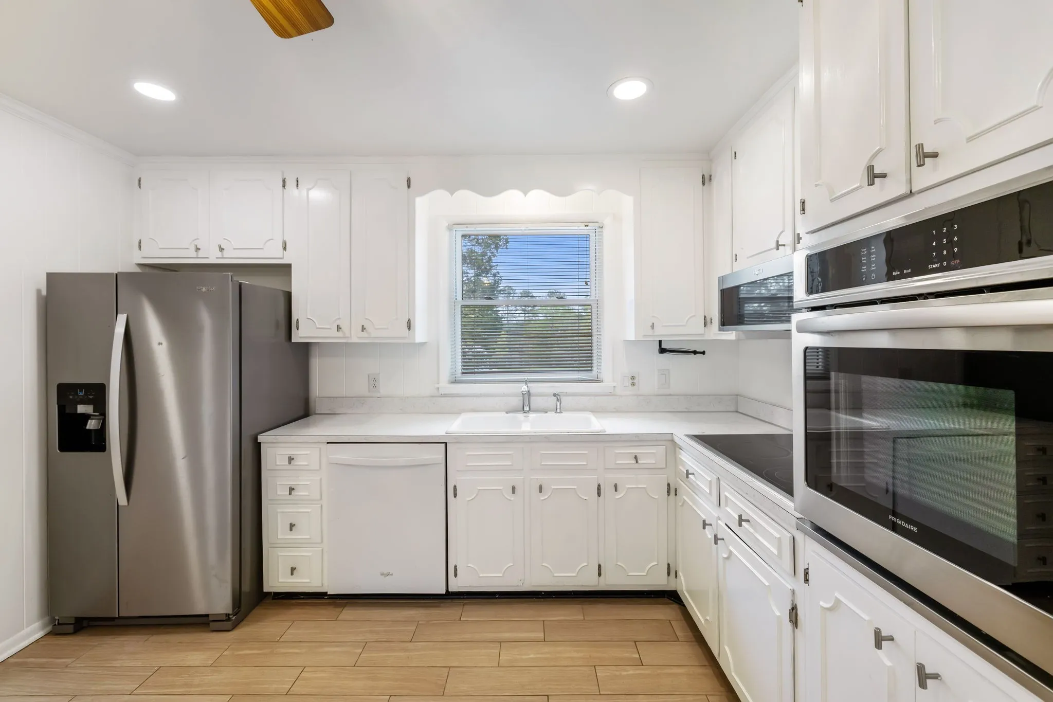 This all-brick ranch home in desirable Williamson County offers 3 bedrooms and 2 bathrooms, featuring hardwood floors throughout. The spacious dining room with a charming wood-burning fireplace seamlessly connects to a cozy family room/den, perfect for relaxing or entertaining. It features a cute kitchen with white cabinets, a double basin sink, and stainless steel appliances that convey. Enjoy a huge 20×10 utility room with tons of storage and a washer and dryer that convey! Step outside to a massive back patio, ideal for hosting, along with a custom metal fence providing privacy and security. With tons of recessed lighting, no HOA, and plenty of room to spread out, this home offers both comfort and convenience in a prime location!
