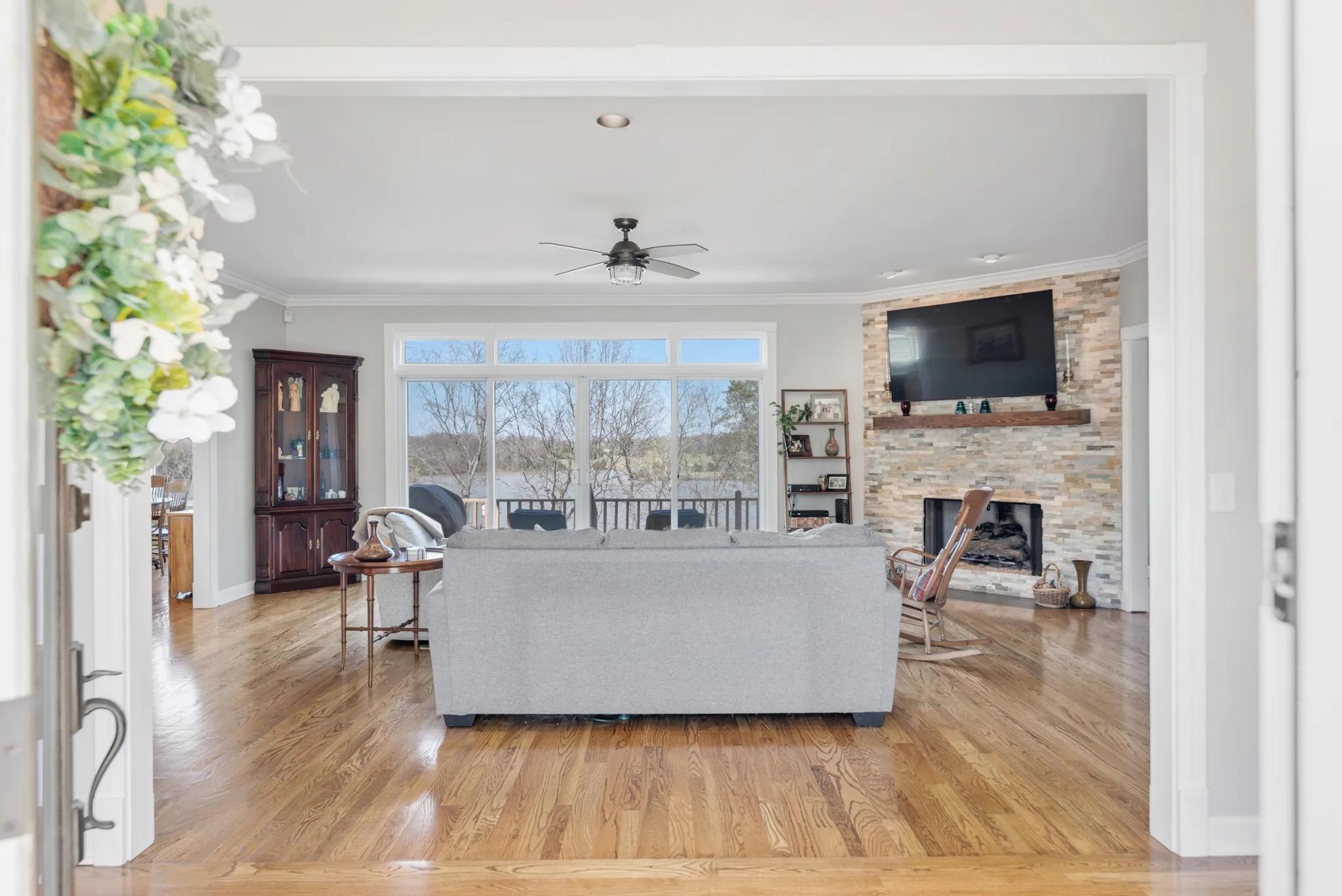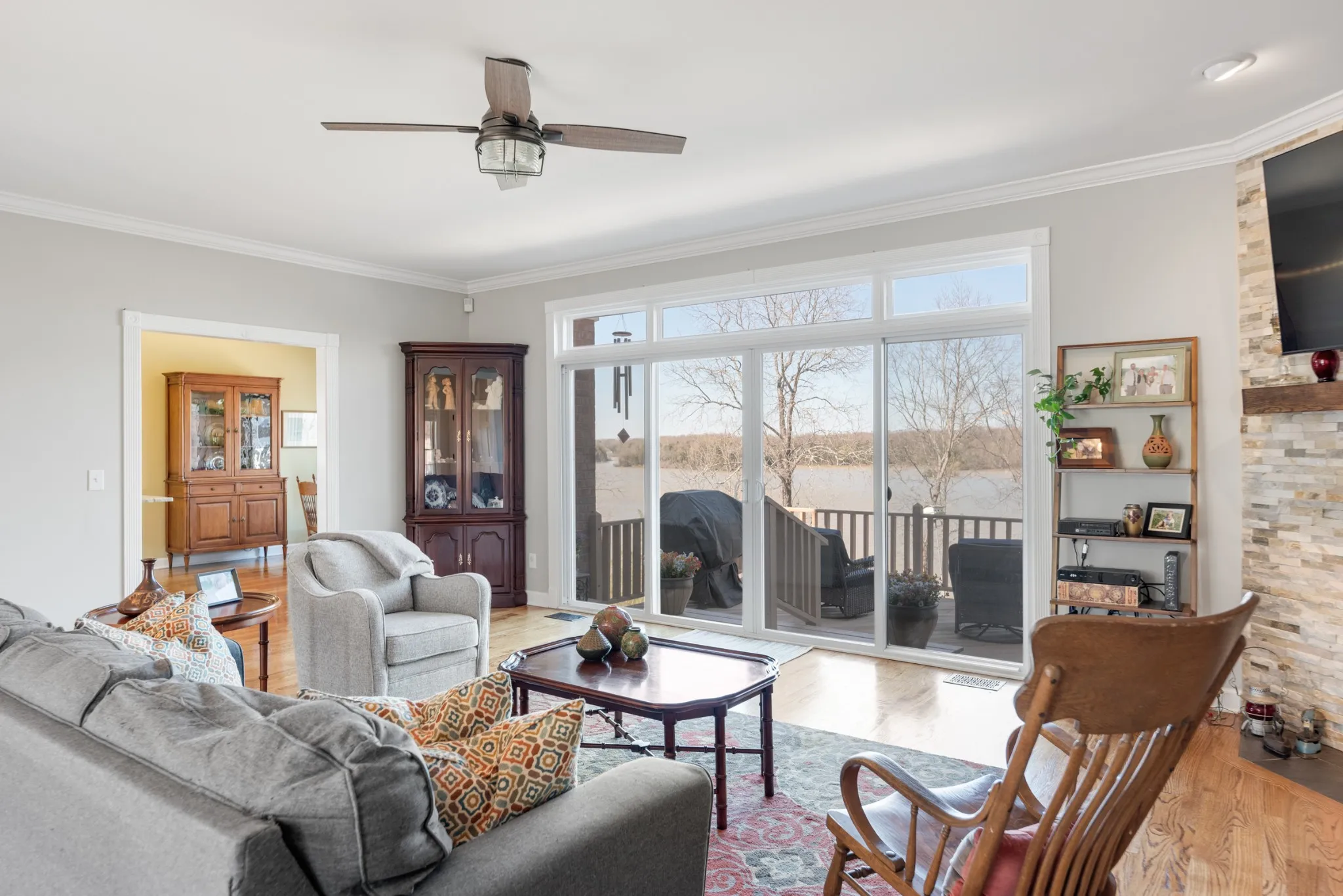 Stunning home overlooking Old Hickory Lake! You’ll be instantly greeted by breathtaking lake views from nearly every room. Open floor plan offering a spacious kitchen that flows seamlessly into the cozy living area—perfect for entertaining or unwinding. Step outside to your deck, where morning coffees and sunset dinners become cherished rituals. The primary bedroom, located on the main level, is a true sanctuary with picturesque windows capturing all angles of your view. This is truly a one of a kind property offering a peaceful setting and a functional floor plan. The basement has a large finished flex space with a full bathroom and a garage with a large separate workshop. Fully updated in 2016, and a new roof was installed in 2024. Located only 5 minutes to Cedar Creek Marina!