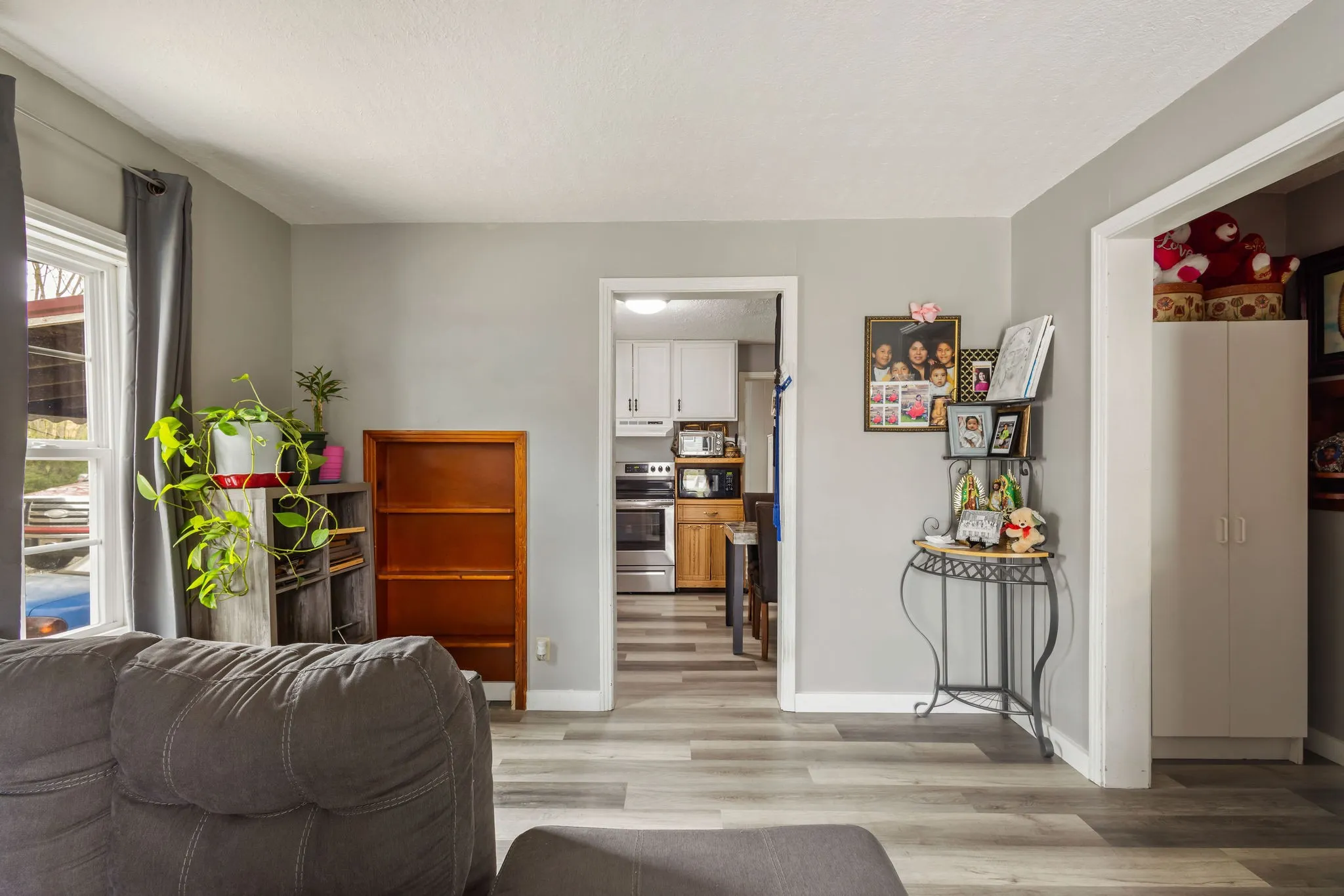Great opportunity- Beautifully updated home close to town. Don’t miss this great opportunity to own a charming and nicely updated home just 2 minutes from town. This 3-bedroom,1-bath property features a recently remodeled kitchen and bathroom, new flooring throughout, and windows that are only 3 years old. The detached garage provides additional storage or the perfect space for a workshop. Enjoy the convenience of nearby town amenities, all in a great location. The home also includes a basement for extra storage or potential living space. Refrigerator, stove and wardrobes in the two rooms will stay with the property.