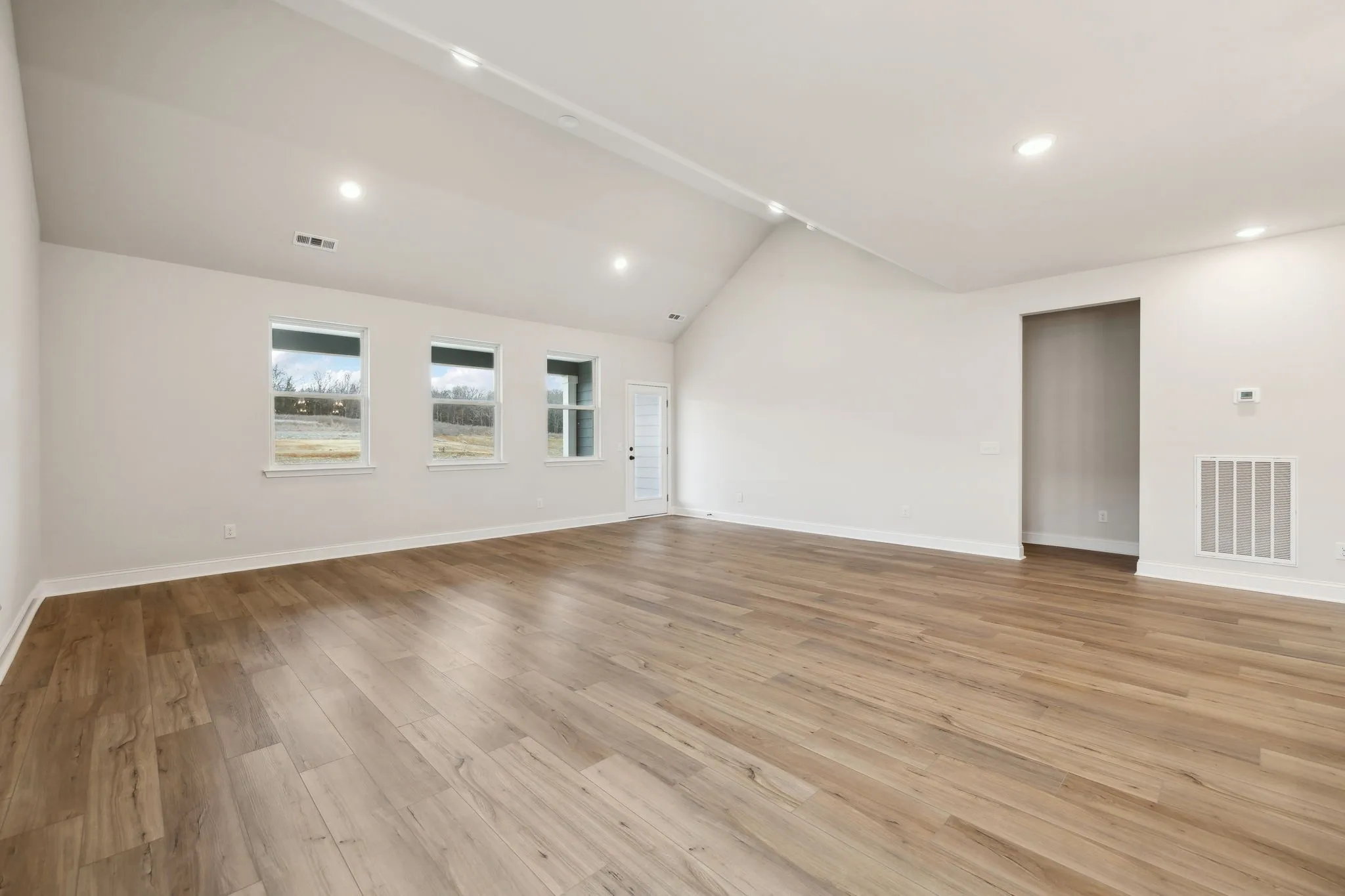 MOVE IN Ready!! 4.99% Amazing Interest Rate with participating lender! See agent for details. Terms and conditions apply. Discover the sprawling, one-story Cheyenne where you’ll find modern design and comfortable spaces. Featuring 3 bedrooms, this open-concept plan has a spacious great room with a vaulted ceiling, from which you can access an expansive rear covered porch. The great room flows seamless into the dining area, a convenient gathering space adjacent to the kitchen. In the design-curated kitchen, you’ll find a quartz-topped island with large-scale pendant lights, white 42″ upper cabinetry with contrasting black hardware, and stainless appliances including a double wall oven. The primary suite boasts a tray ceiling, huge walk-in closet, and spa-like bathroom with a garden tub, walk-in tiled shower, and double vanities. Two secondary bedrooms are amply-sized for family or guests. This home is complete with a mud room off the garage entry, large laundry room with a storage closet, and a 1/2-car garage extension. Enjoy added privacy on this prime corner homesite.