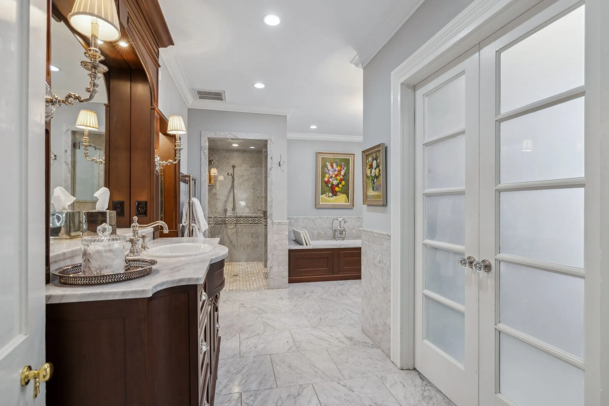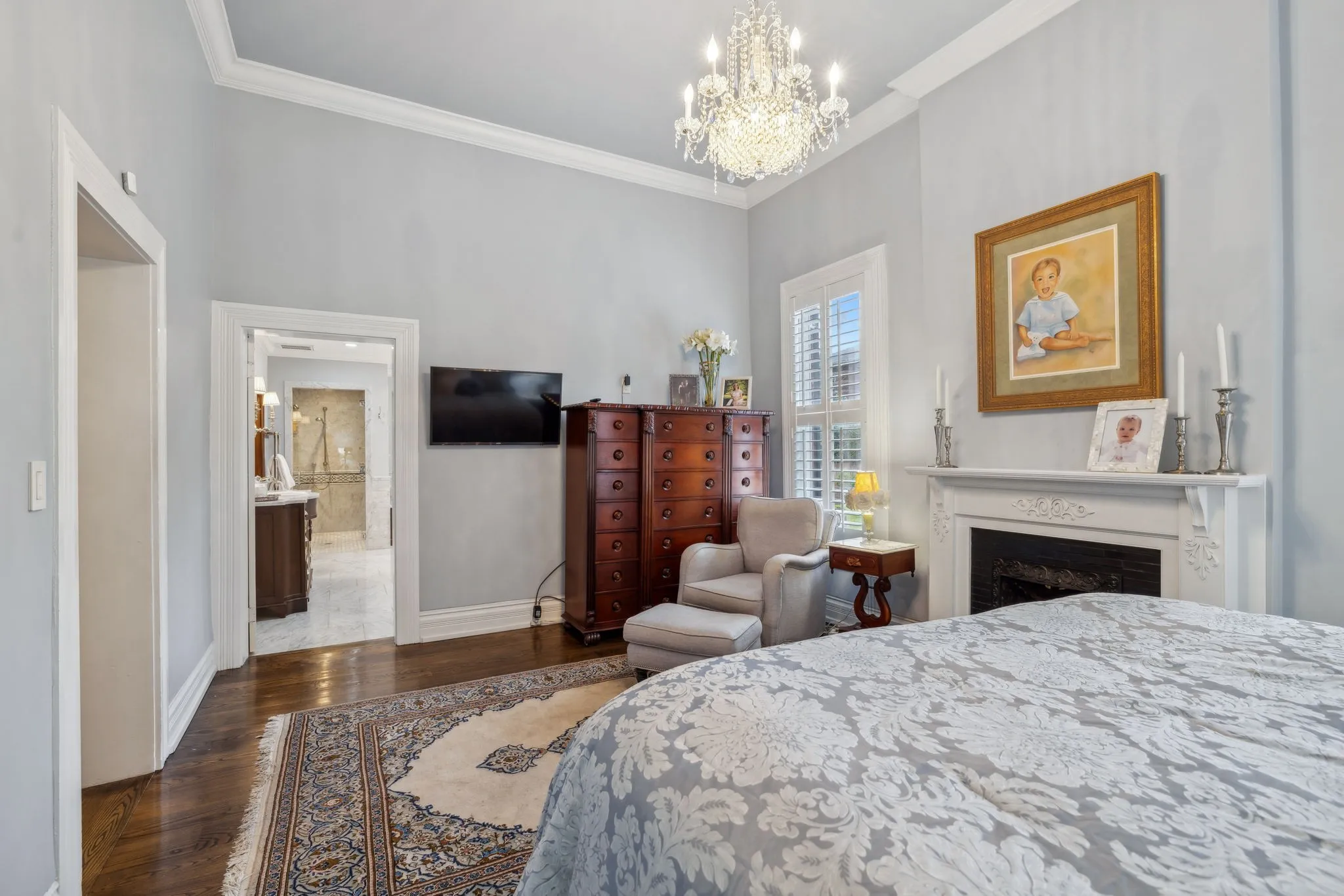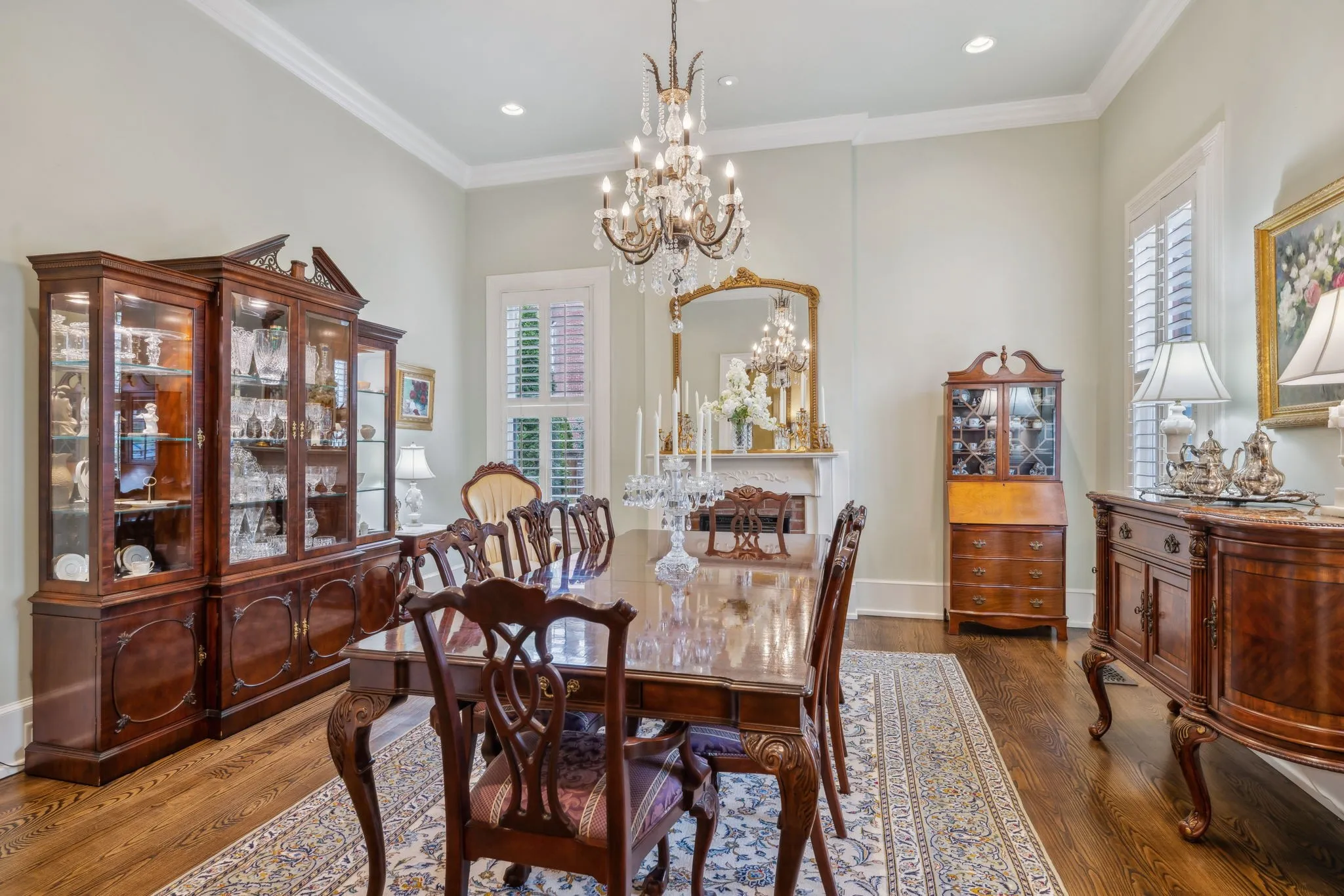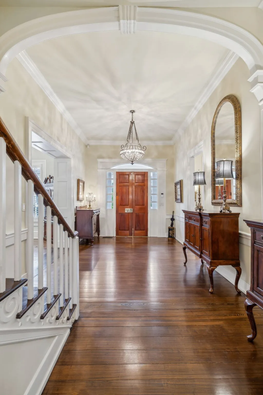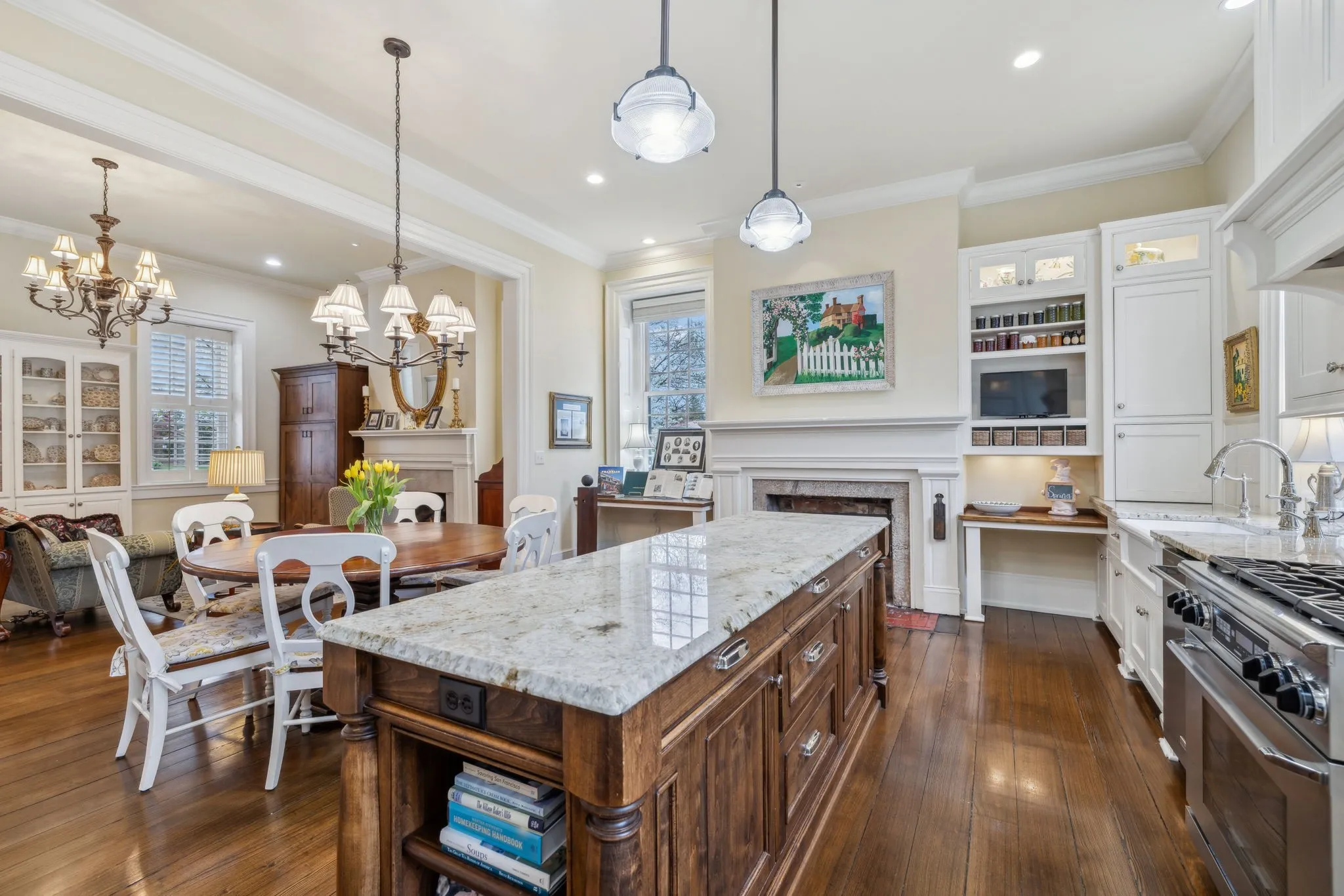 The iconic Saunders-Marshall-Wright House is the original brick home in Historic Downtown Franklin and dates to 1805. It is prominently located on prestigious 3 rd Avenue South and is only one block from the town square. This stately home was extraordinarily well constructed by master craftsmen to stand the test of time and it certainly has for the past 220 years while becoming even more beautiful and refined. The Federal-style home opens to a stunning foyer featuring 12 ft. soaring ceilings and an elegant handcrafted stair case with original poplar steps and oak railing. Original 1” thick tongue-in-groove ash floors grace the interior which was fully renovated by Tallman Enterprises and includes; Primary-on-the-main with luxurious ensuite featuring a heated Carrera marble floor, bidet, large air jet soaking tub, spacious walk-in marble shower with heated towel bar, custom walnut vanity and cabinets, and custom designed walk-in closet. The open and naturally lit Chef’s kitchen features custom cabinetry, subzero refrigerator, Dacor six burner gas range, warming drawer, and new wall oven and dishwasher. The home also features a spacious 28×21’ den with an impressive stone wood-burning fireplace (2016), an attached 2.5 car garage includes additional storage and private driveway (replaced 2025), separate fully renovated (2021) walk-in guest house with complete kitchen and attached garage. A beach-entry L-shaped swimming pool (2013) compliments beautifully landscaped front, side and backyards which include fountains and a charming traditional English garden. The home has seven fireplaces and is handicap-accessible. GUEST HOUSE NOT INCLUDED IN SQUARE FOOTAGE.