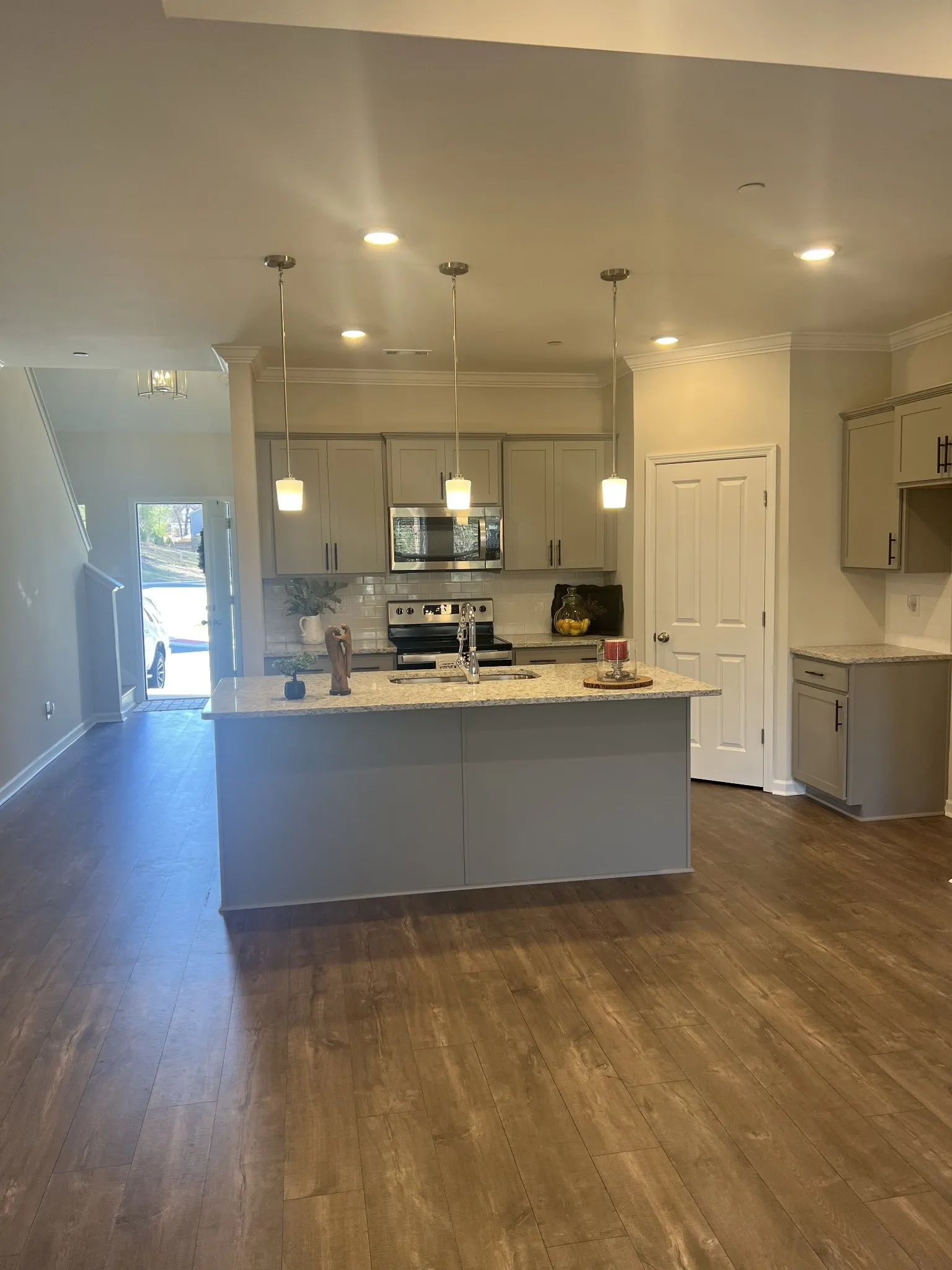 Picture Perfect End Unit Townhome* One Car Garage* 3 Bedrooms, all with their own Baths* Spacious & Open Floor Plan* Easy Care LVP Flooring Down* Luxury Tile Baths* Huge Walk-In Shower and Walk-In Closet in Primary Suite* Open Kitchen with Pantry, Large Island, Granite, Stainless Appliances, Farm Sink* Separate Laundry Room- Washer/Dryer Included* Upstairs boasts Bedroom with Bath, Rec Room and 2 Huge Floored Unfinished Storage Rooms* Private, 34’x10′ Deck with Amazing Views of Woods and Pond*. Easy Commute to Nashville, Franklin, Natchez Trace Pkwy*. Peaceful & Quiet Living but close enough to everything* Room to Breathe! Must see! Pets accepted case by case.