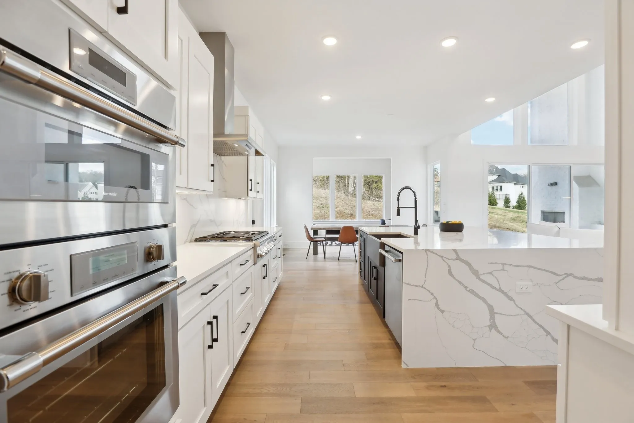 Furnished home for lease in highly sought after Lookaway Farms in Franklin with/ approx. 100 acres of green space/walking trails! 6 month minimum. 5 BR -6 Bath custom Luxury PIB newer construction home on premium semi-private over a half an acre homesite that backs up to treed deeded common space. Magnificent modern thoughtful open concept design with high end finishes throughout that include Thermador appliances/ full size frig/ freezer combo; granite waterfall island; 3 fireplaces; Chef’s kitchen; custom metal front double doors; 20 ft ceilings; floating stairs concept; hardwood floors or tiled floors throughout; 2 large walk in closets in primary; cool wall treatments; stunning spa like primary bath with super size shower and dual vanities with custom designer sinks; California sliders opening to outstanding outdoor living experience with built in grill/fireplace; Multiple bonus areas that could be used for sunroom; office; media room; gym; infrared sauna; bathed in natural light with floor to ceiling windows. 5 BR each with its own ensuite bathroom & walk-in closet. Gorgeous Primary bedroom suite on main level offers a fireplace and ensuite bathroom including a large super sized shower with spa-like feel, dual vanities with designer sinks, two walk-in closets and potential infrared sauna space. Gourmet kitchen with full size freezer/refrigerator, gorgeous marble waterfall island, pull-out smoothie bar and large walk-in pantry. Expansive media room upstairs. Oversized laundry room includes sink, island, built in drop zone/ cubbies washer/dryer & frig are negotiable. 3 car garage with 20 ft ceilings that could be converted to 6 car space w/ added car lifts. One of largest lots in Lookaway-backs up to mature treed green space. Your backyard oasis awaits – pool ready! Breathtaking views of the TN hills. . Zoned for top schools: Clovercroft, Ravenwood, & Woodland. Home featured in “Miracles” TV series