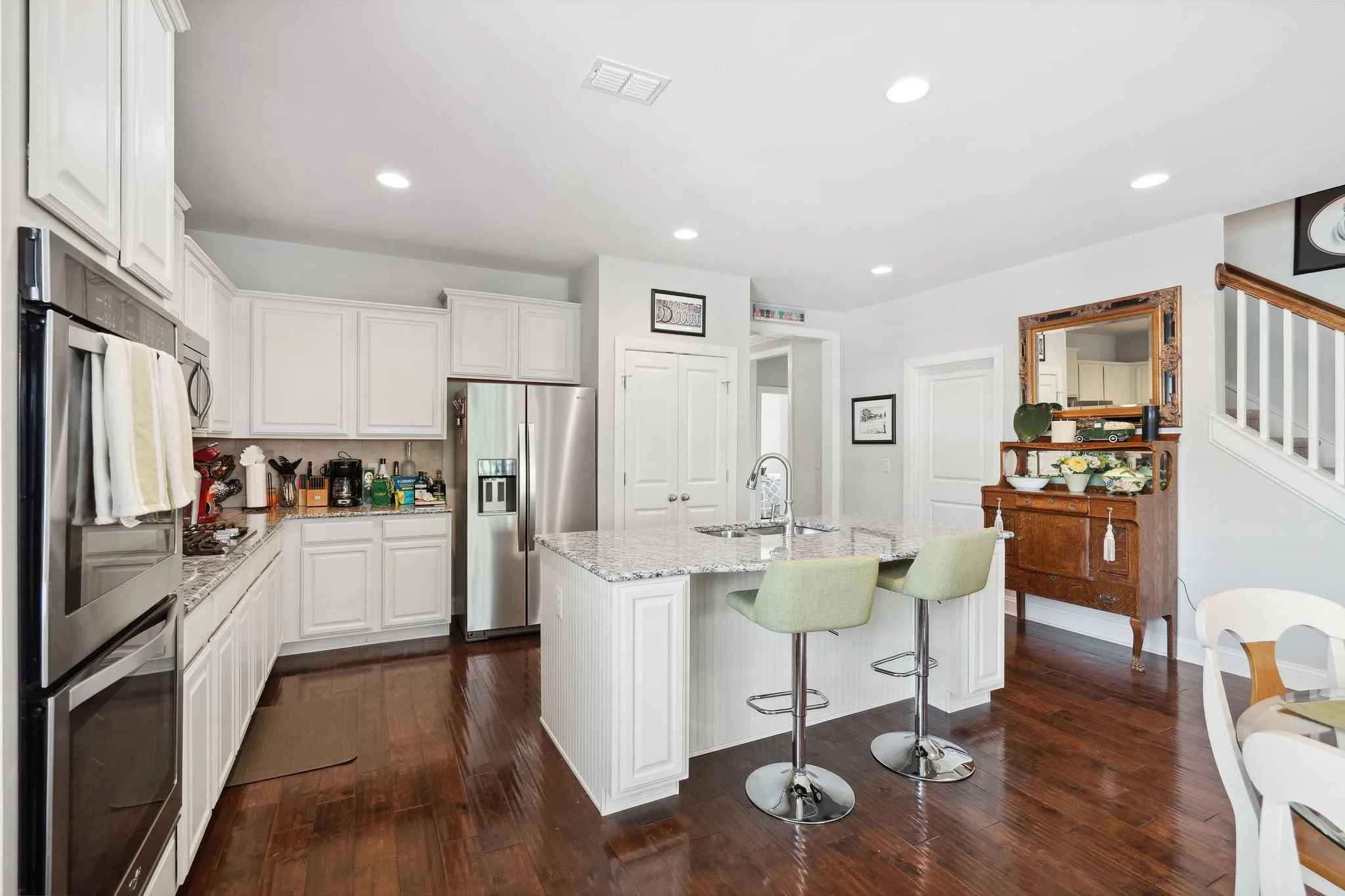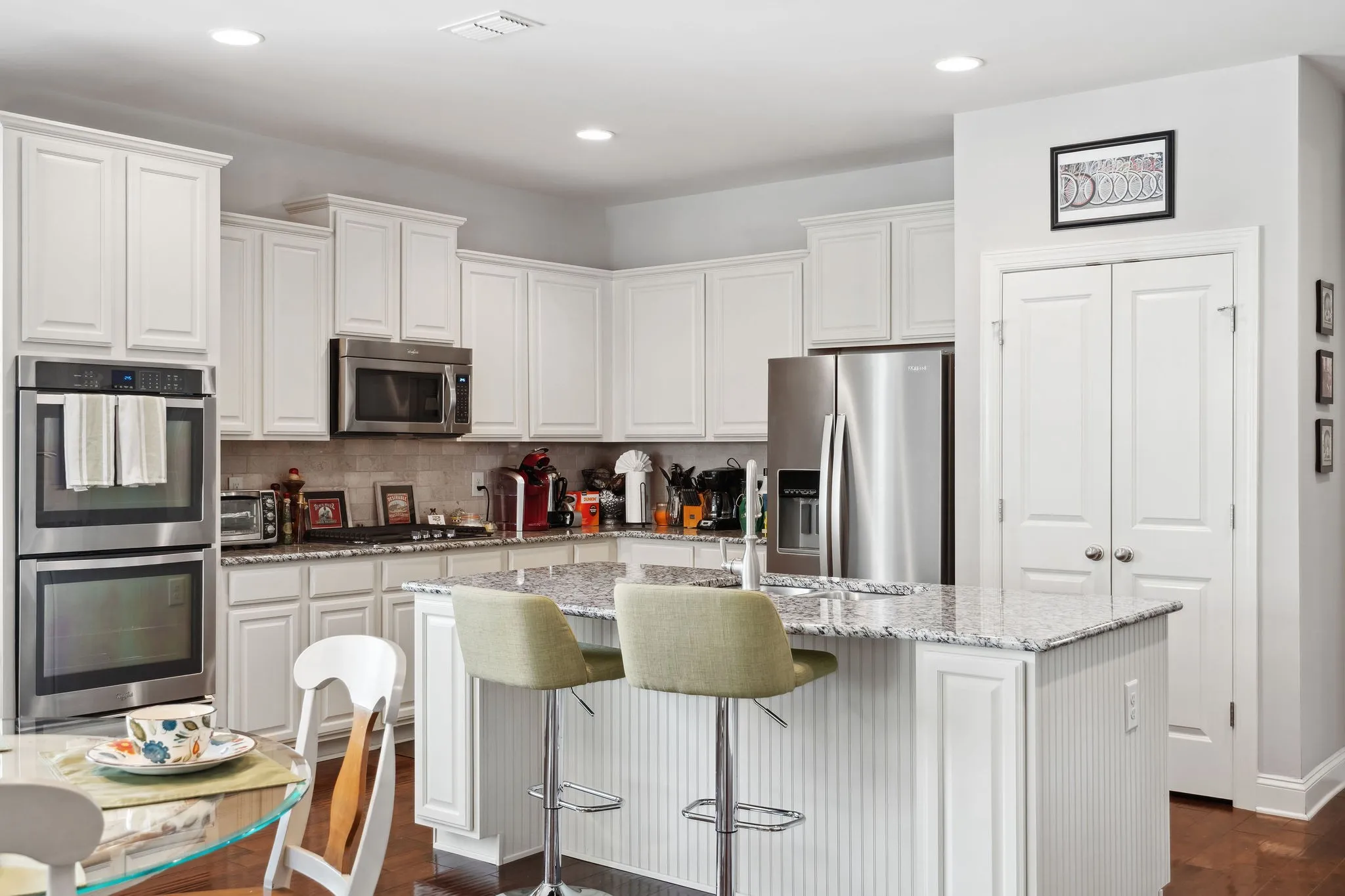This 3-bedroom, 3-bath home offers the ease of main-level living with a spacious bonus room and full bath upstairs—perfect for guests, a home office, or media room. Step inside to discover gorgeous hardwood floors, a gourmet kitchen with a large flush granite island, elegant ivory cabinetry, and a gas range—ideal for entertaining or everyday living.