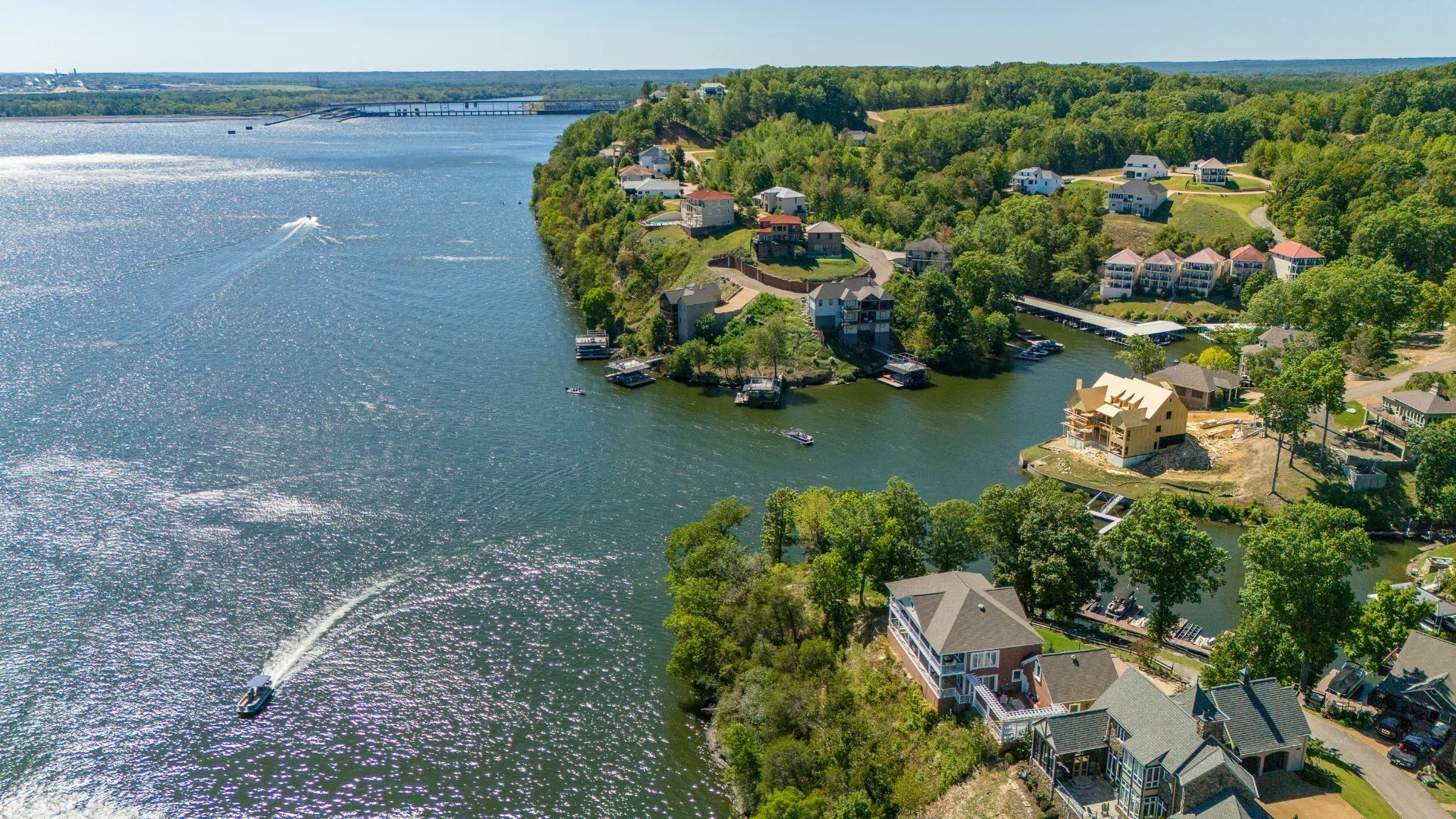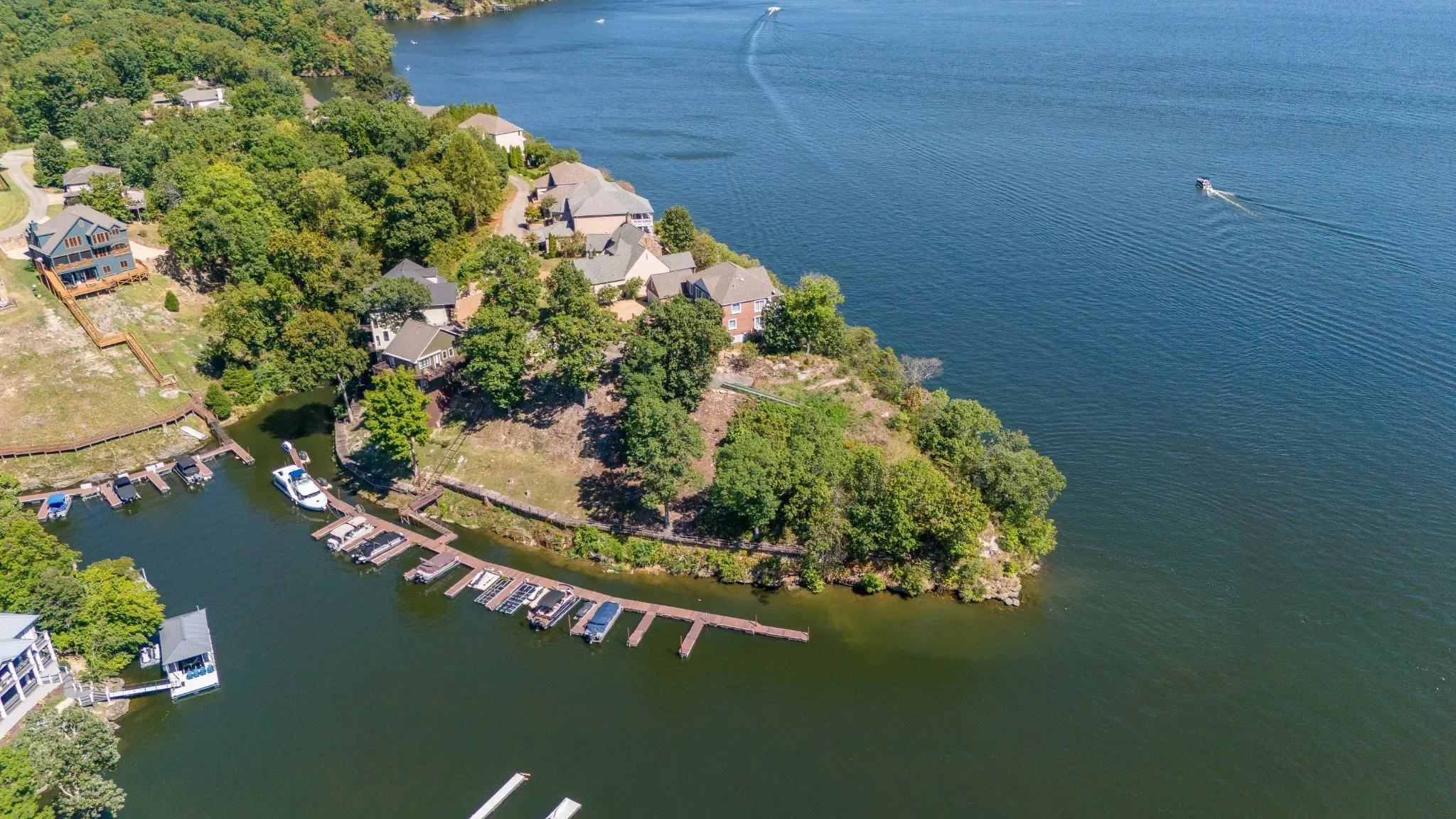 Enjoy the beauty of Pickwick Lake! These stunning lots sit right on the pointe in Anchor Bay Pointe subdivision. Located in the Northshore area of Pickwick. All things considered, probably the best remaining property on Pickwick Lake! These two adjoining lots make up the entire pointe of the exclusive Anchor Pointe gated community at the Northshore section of Pickwick. Here you can have it all-the stunning panoramic views from an elevation almost 50 feet above the water, yet the convenience of your own adjacent boat slips-19.5’X24′, and a RARE 24’X49’slip right at the base of your lots that are easily accessible by tram. The large boat owner can pull directly into the large slip-NO TURNS! All very Private. Perfect for someone looking to build a beautiful, terraced dream home or weekend getaway. Both lots (10and 11) and both slips are being offered at $949,000. Don’t miss this opportunity to build your lake dream home! Please call today to schedule a showing!