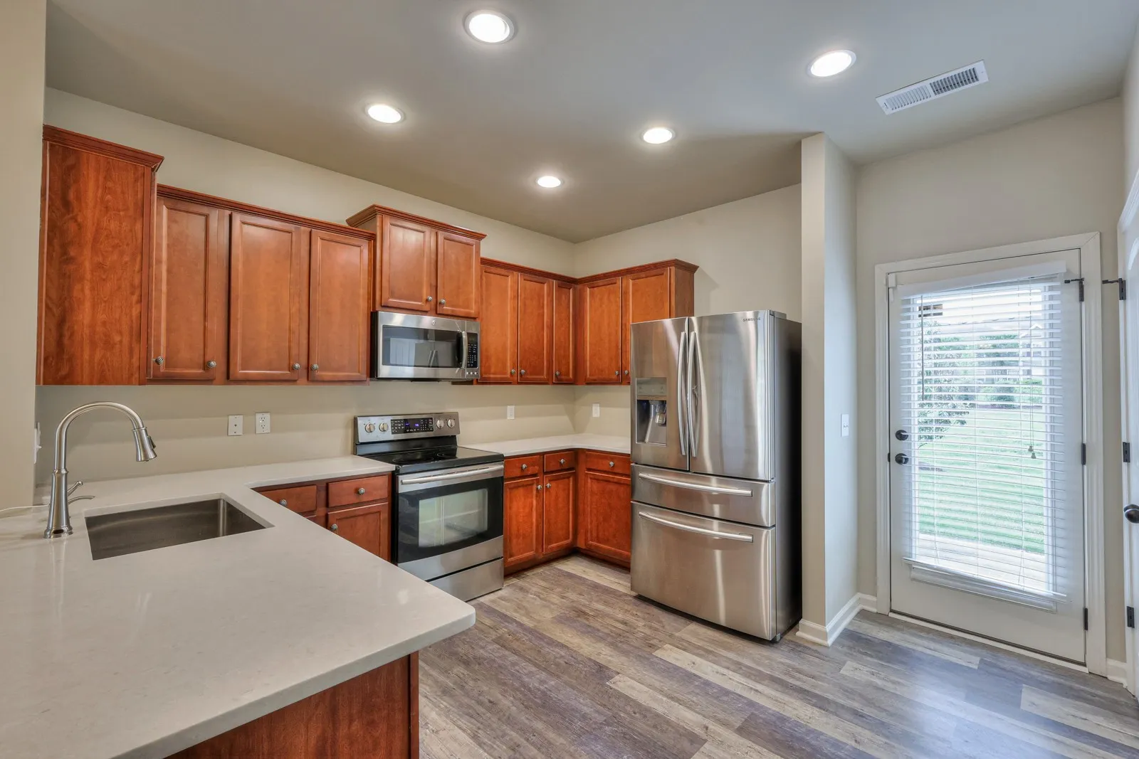 Beautifully maintained, End Unit Townhouse with 4 bedrooms and 3 full bathrooms. Guest bedroom/office on 1st floor with attached bath. Master features a sitting area w/ Electric Fireplace. Some updates include freshly painted, new Quartz countertops, Stainless steel appliances, California closets, and LVP flooring in all living spaces. Conveniently located to shopping, dining, and easy highway access. Highly desirable Blackman school district. App Fee $25 per adult – One-Time Admin Fee $200 Due at Move-in – Tenants responsible for all Utilities including trash