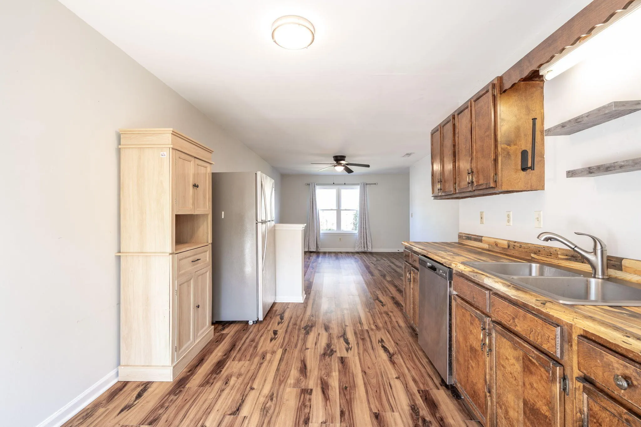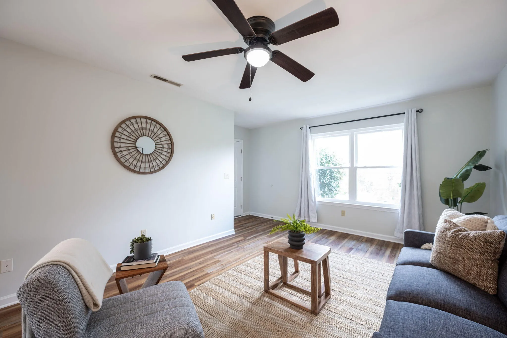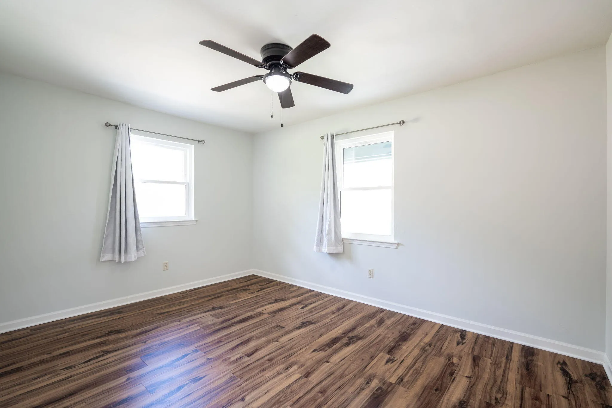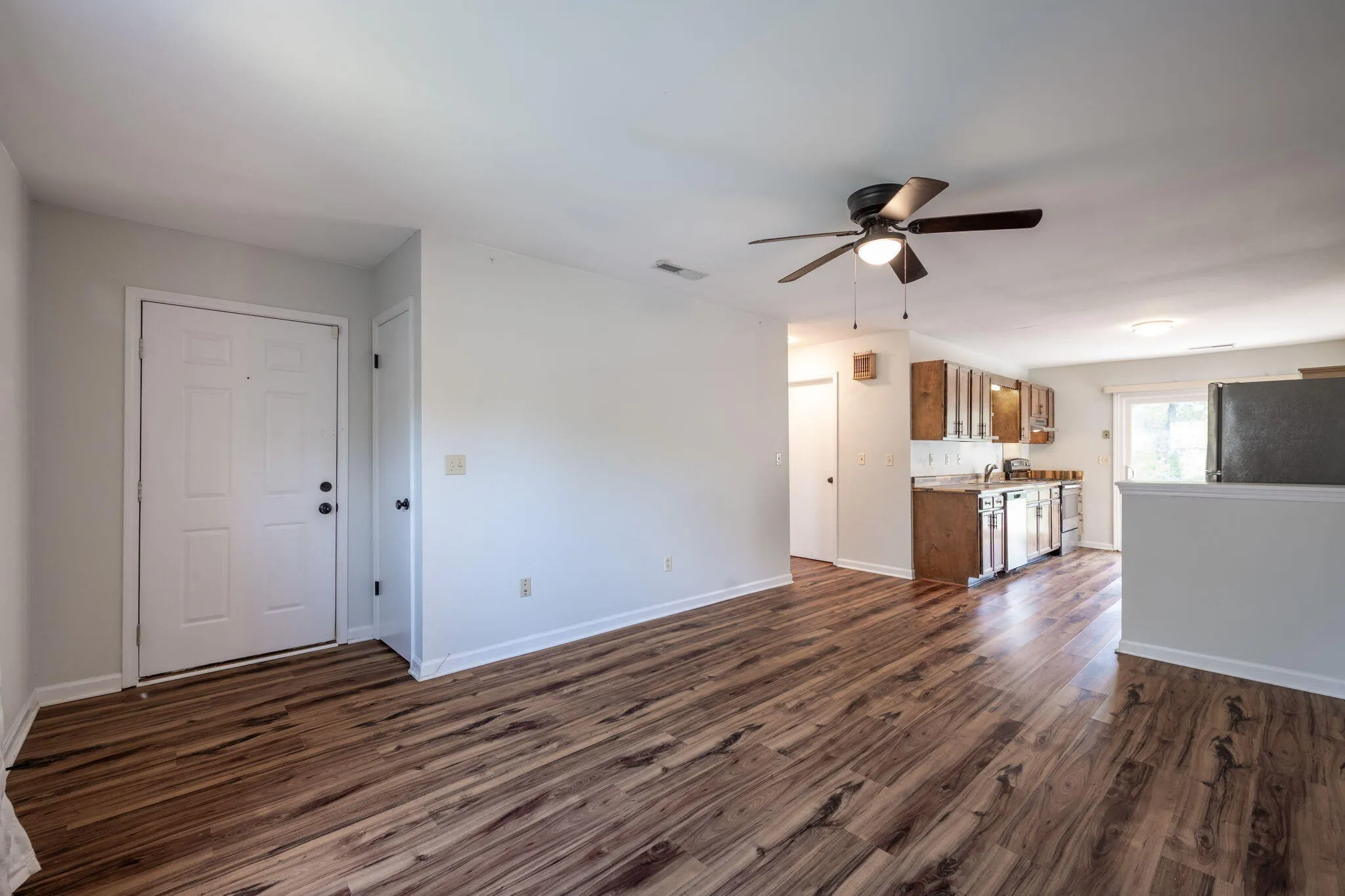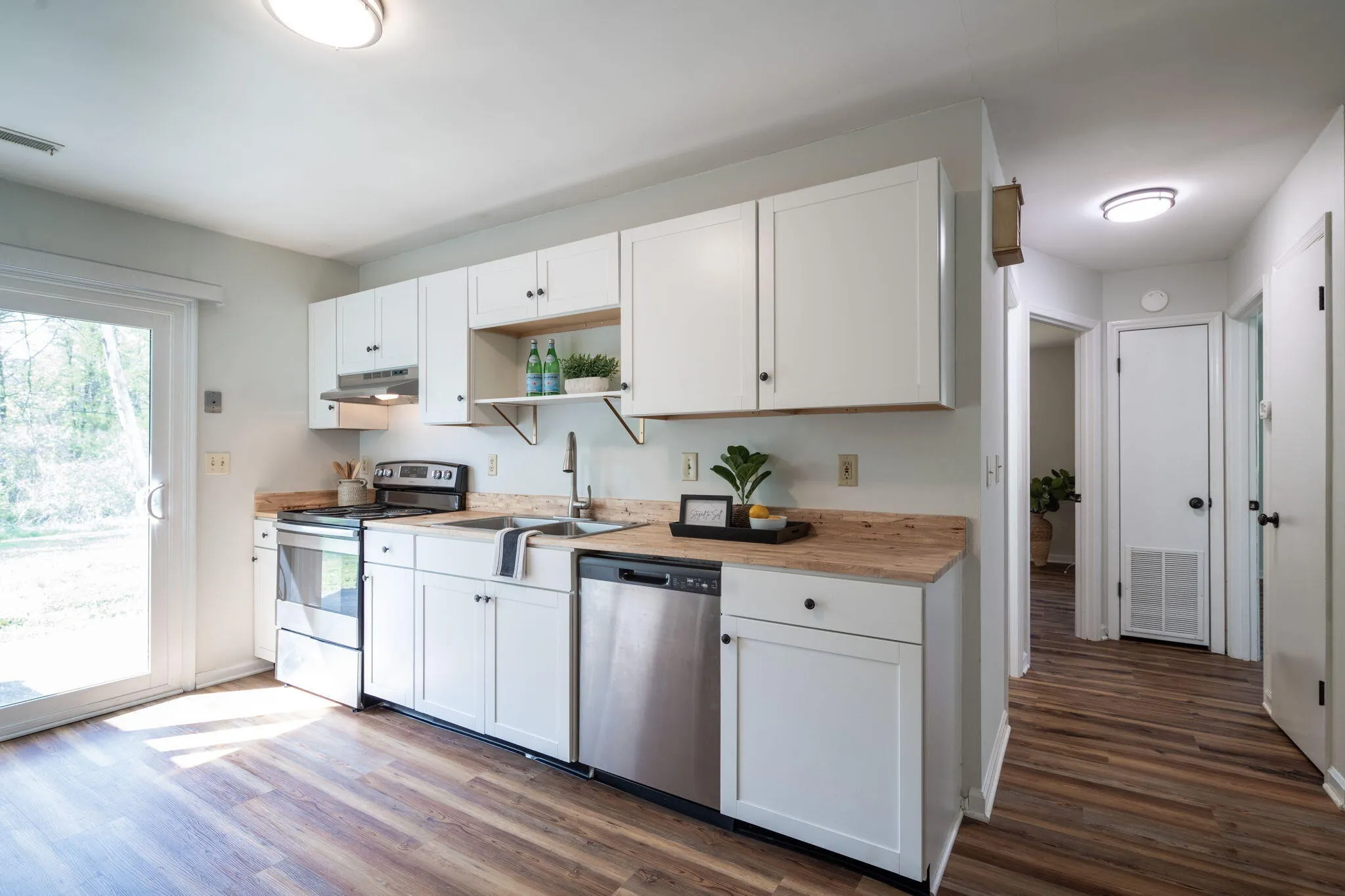 Welcome to 8740 Millard Lee Ln, a rare opportunity to own a fully updated duplex in a convenient location with cheap, county-only taxes! Situated on a quiet street, this property is just a short walk to Booker T. Washington State Park and the lake, offering easy access to outdoor recreation, and just minutes to Highway 153. This duplex features two identical 2-bed, 1-bath units, making it perfect for house hacking—live in one side and rent the other—or renting out both units for strong cash flow! Both units have excellent rental history – the right side rented consistently for $1,295 per month, while the left side was rented to a family member at a discounted rate of $950 per month but can easily achieve $1,295 or more. Both units are now vacant, allowing a new owner the flexibility to move in or choose their own tenants and lease immediately. The property has been fully renovated with new LVP flooring throughout, fresh interior and exterior paint, and a new roof installed in 2022. A brand-new septic system and field lines were installed in 2023, and the left unit had a brand-new water heater and expansion tank added in 2025. Both units feature newer stainless steel Whirlpool appliances and modern butcher block countertops, and the right unit features new cabinets. New energy-efficient windows and new sliding glass doors were installed throughout both units, which makes utility bills cheaper. The bathrooms have been renovated with updated shower/tubs, fixtures, lighting, and vanities. The left unit also has a newer interior and exterior HVAC system installed in 2021. The bedrooms and kitchens are spacious, and each kitchen boasts a pantry for added storage. Sitting on nearly half an acre, this property boasts a massive, level, and private backyard, offering plenty of space for outdoor activities. Each unit includes a private laundry area with hookups located in attached storage sheds, providing extra convenience and additional storage.
