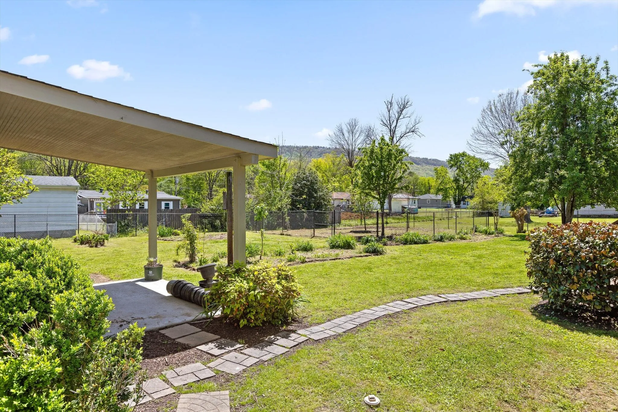 Welcome to 134 North Moss Avenue! This Single-Level TWO bedroom home was built in 2011, and features a large fenced lot with a 3-Car detached garage. As you enter, you’ll notice beautiful hardwood flooring that flows seamlessly throughout the open-concept living area. The Living Room features a breathtaking floor-to-ceiling stacked stone gas fireplace, creating a warm and inviting atmosphere perfect for cozy evenings or entertaining guests. The kitchen is equipped with matching appliances, ample cabinetry, and sleek countertops, perfect for entering family or guests. Off the kitchen, this floor plan offers a large laundry room that can be shared as a utility room or pantry space. The master bedroom includes french doors to access the screen porch on the back side of the home. Each bedroom features hardwood flooring as well as its own private full bathroom. Step outside to discover an expansive screened back porch, an ideal spot for morning coffee or relaxing while taking in views of the beautifully landscaped yard. The fenced-in yard provides privacy and security, perfect for children or pets to play freely. For car enthusiasts or those in need of extra storage, the detached 3-car garage offers ample space and convenience. Situated on a .58 acre lot, this property provides a perfect balance of indoor and outdoor living. *NO HOA **Refrigerator included. If you are searching for a new home in Chattanooga, then be sure to schedule your tour of 134 N Moss Avenue today and experience it for yourself!