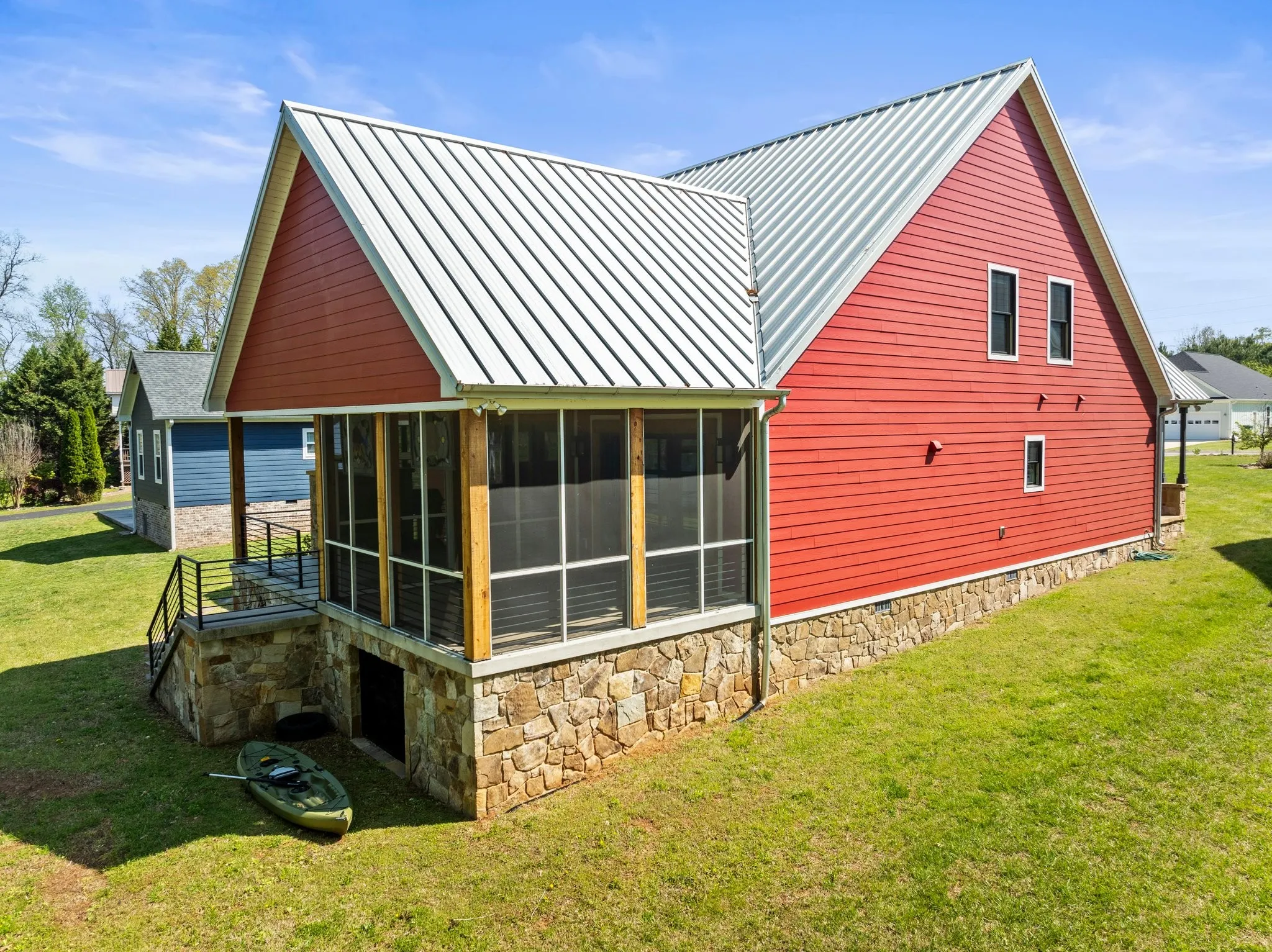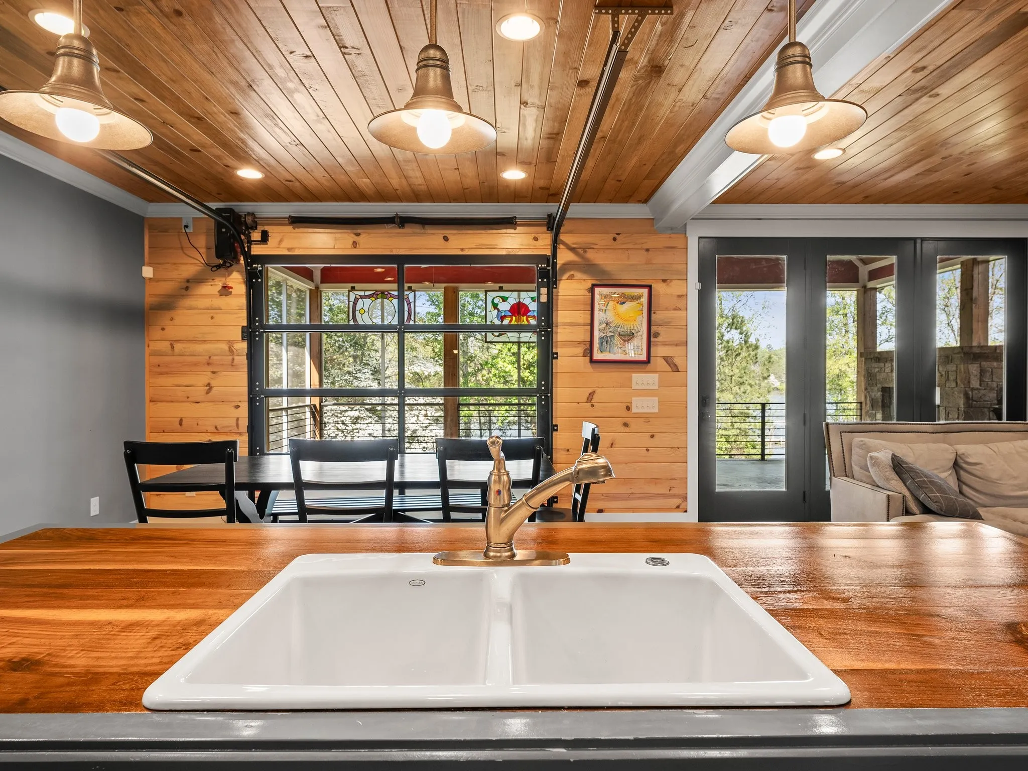 This property is absolutely stunning! The features give it such a luxurious and unique vibe. The combination of master suites on the main floor, the roll-up garage door in the dining room for that indoor-outdoor feel, and the real mountain sandstone outdoor fireplace and foundation really sets it apart. Plus, a boat slip on the community dock and extra garage space for a boat are perfect for lakefront living.