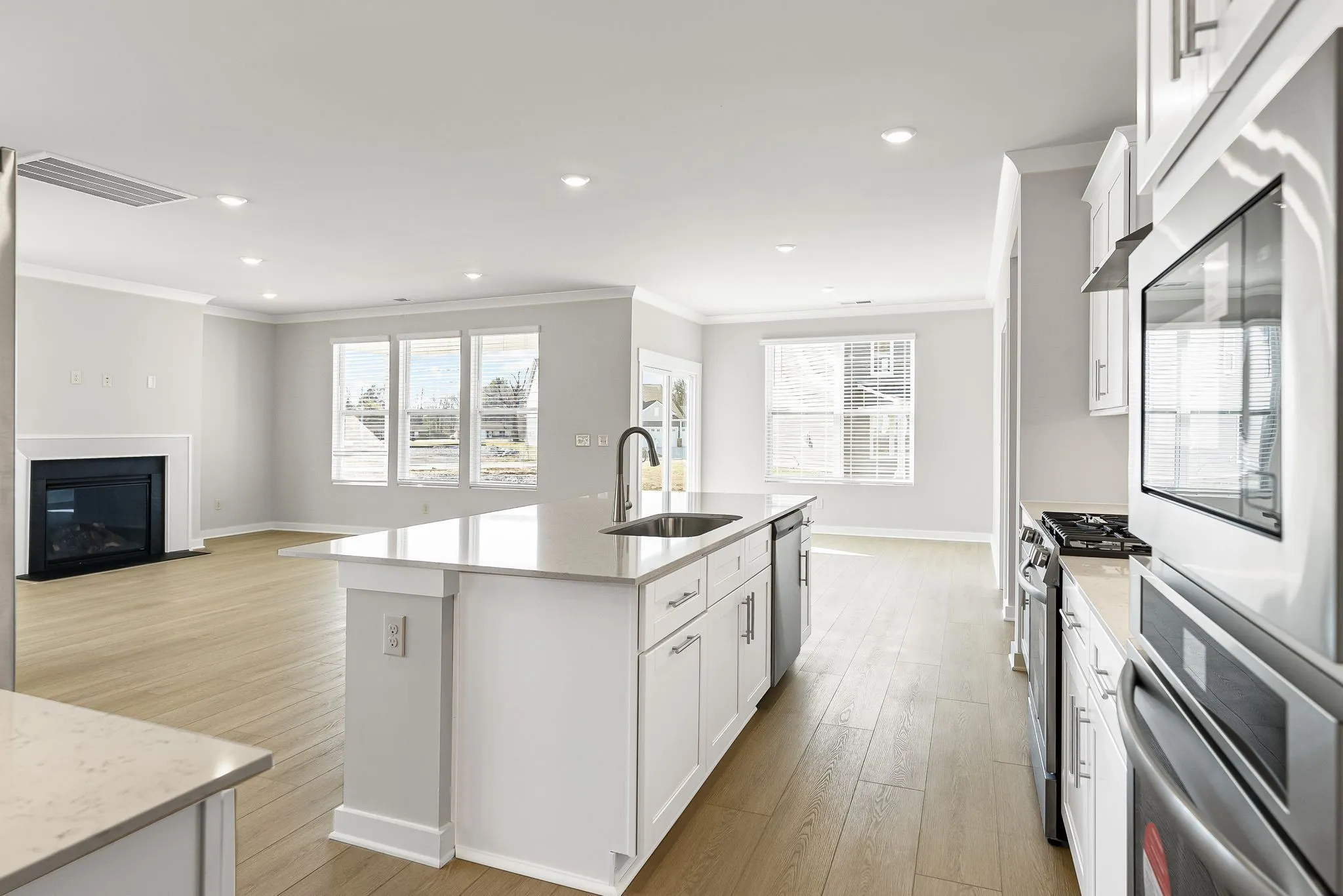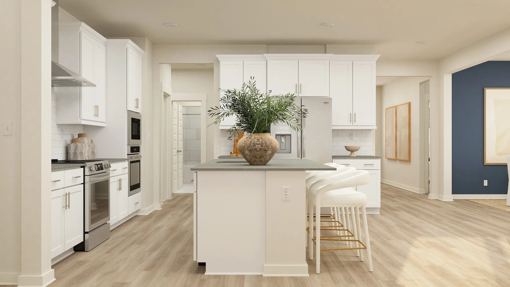 Move-in ready home with a side entry 3-car garage! Introducing the charming Choral floorplan, FINALLY a one-level home that has it all! Features an enormous open concept kitchen, huge dining nook opening to a covered porch, family room with gas fireplace, plus a separate dining area, and a large corner homesite. Gourmet Kitchen with vented hood, double ovens and an unbelievable pantry! Luxurious private primary suite with tile floor, executive height cabinets, quartz top, and oversized walk-in ceramic tile shower with built-in bench seat. LVP flooring in all main living areas, tile in secondary baths and laundry, including a laundry sink. Luxurious features throughout! Ring doorbell, Schlage keyless entry, Honeywell WIFI thermostat, and more! Drop zone with bench, PLUS 2″ window blinds. Huge savings with seller closing cost incentive with the use of preferred lender! Lot 50