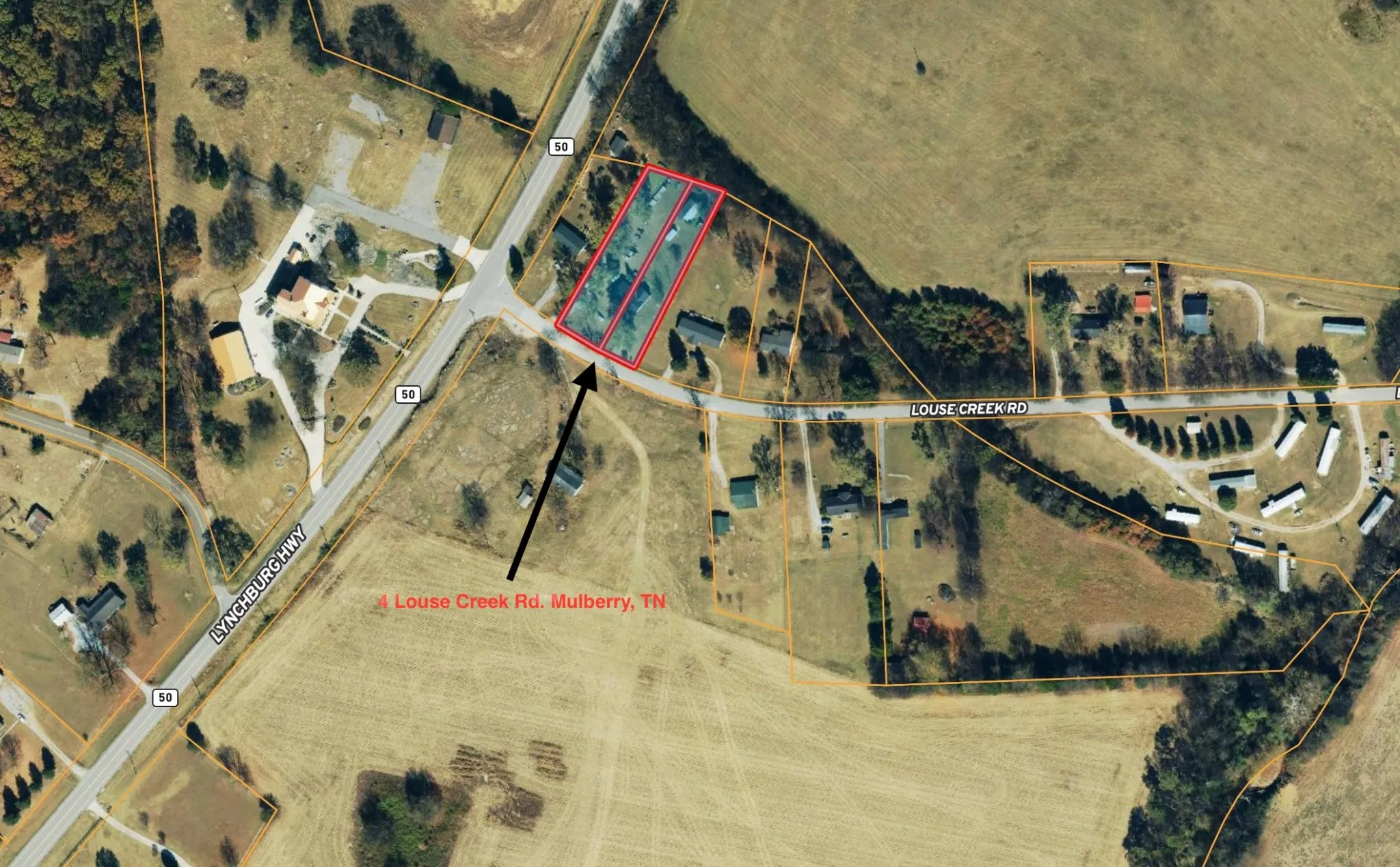 - Directions: From Fayetteville take 31 Lynchburg Hwy and then turn right on Louse Creek rd and property will be on your left. Sign in yard.