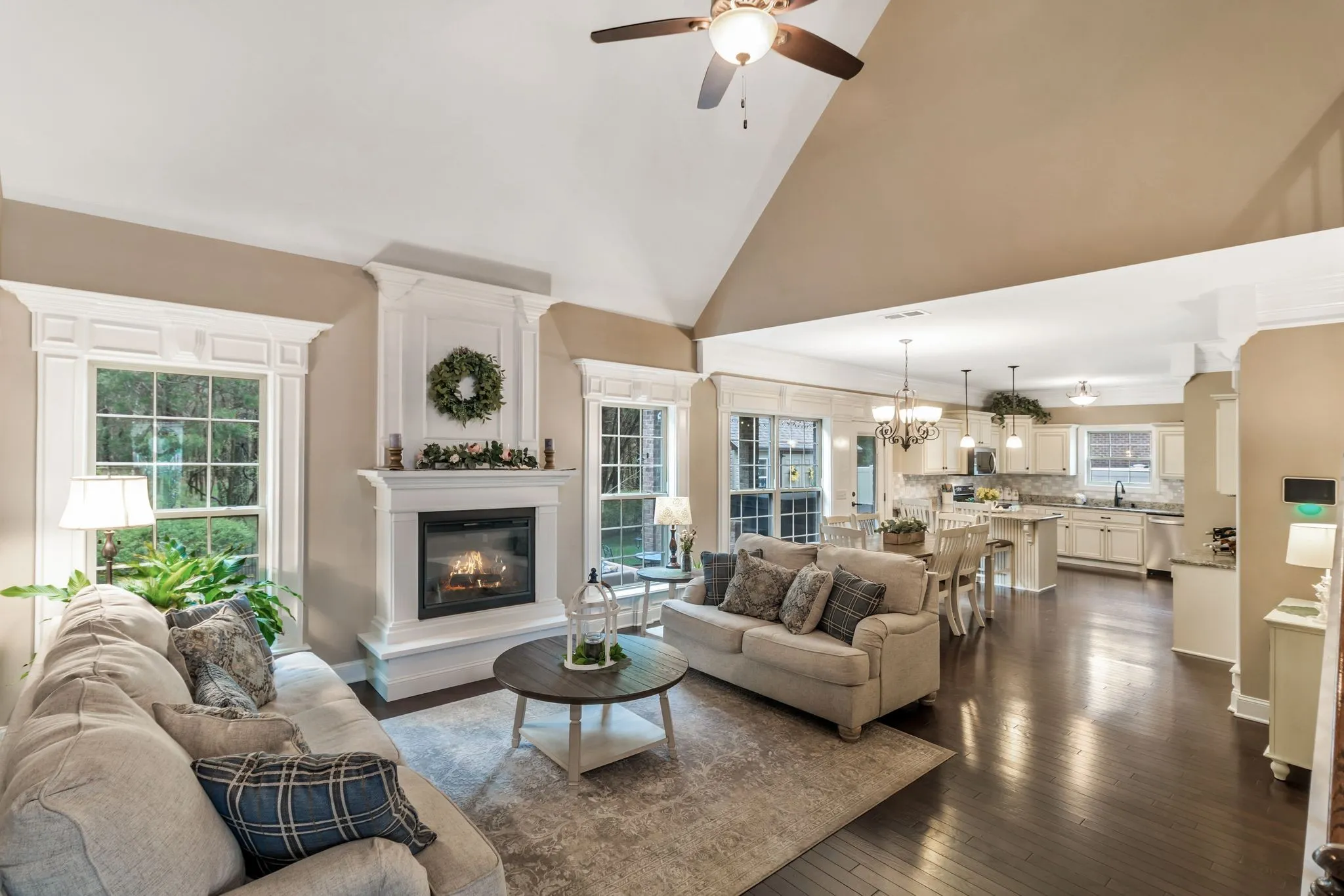 This stunning single-family residence boasts 2,418 square feet of thoughtfully designed living space, featuring five generously sized bedrooms and two and a half baths. From the moment you step inside, you’ll be captivated by the elegant trim work and inviting atmosphere that flows throughout the home. The spacious living room offers the perfect blend of comfort and sophistication, complete with a cozy fireplace ideal for relaxing evenings or entertaining guests. At the heart of the home, the gourmet kitchen shines with granite countertops, a modern double oven, dishwasher, pantry space, and stylish finishes. Designed with both luxury and everyday living in mind, this home provides versatile spaces for every occasion — whether you’re hosting a dinner in the formal dining area or enjoying a peaceful moment on the covered back porch overlooking a tranquil wooded field filled with wildlife. Additional highlights include a two-car garage with a dedicated 240V outlet, perfect for electric vehicle charging or workshop use, and an irrigation system that helps maintain a lush, healthy lawn year-round. Don’t miss the opportunity to make this exceptional property your forever home!