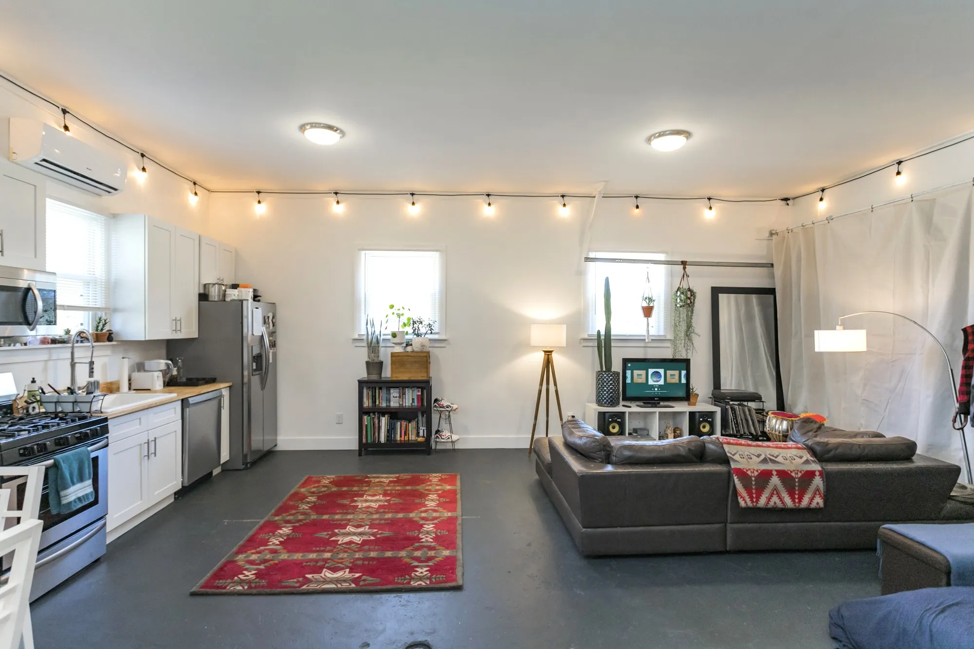 True east has a gorgeous studio renovation FOR RENT in Madison. Situated on a large lot, this spacious, DETACHED GARAGE studio has 10′ ceilings, concrete floors, butcher black counter tops, stainless steel appliances, walk in closet, shared washer/dryer, and off street parking. Due to parking constraints, only one car allowed. Additional monthly fee of $125 for electric, gas, water, sewer, trash and lawn. Sorry, NO DOGS allowed since yard is shared.