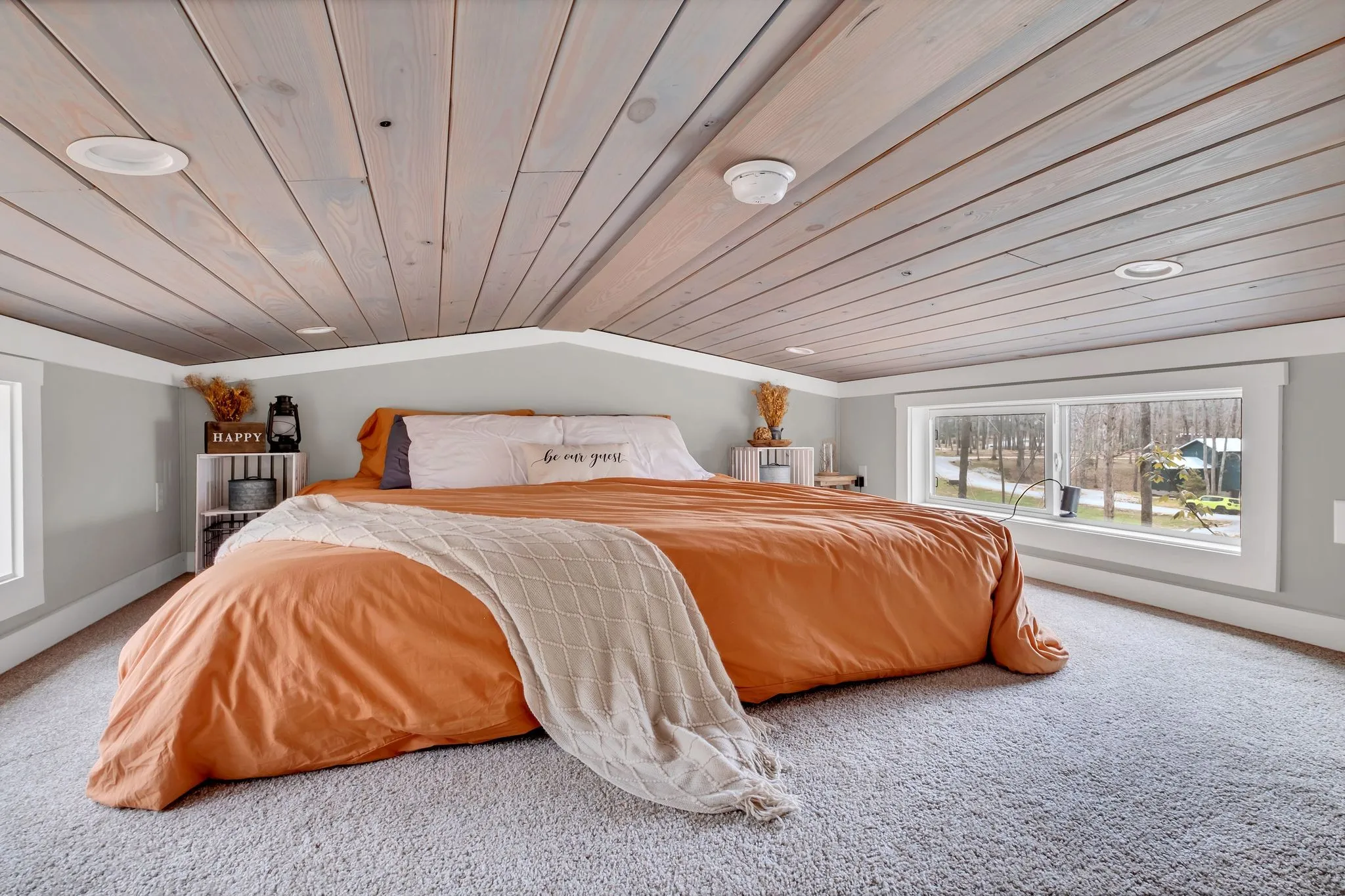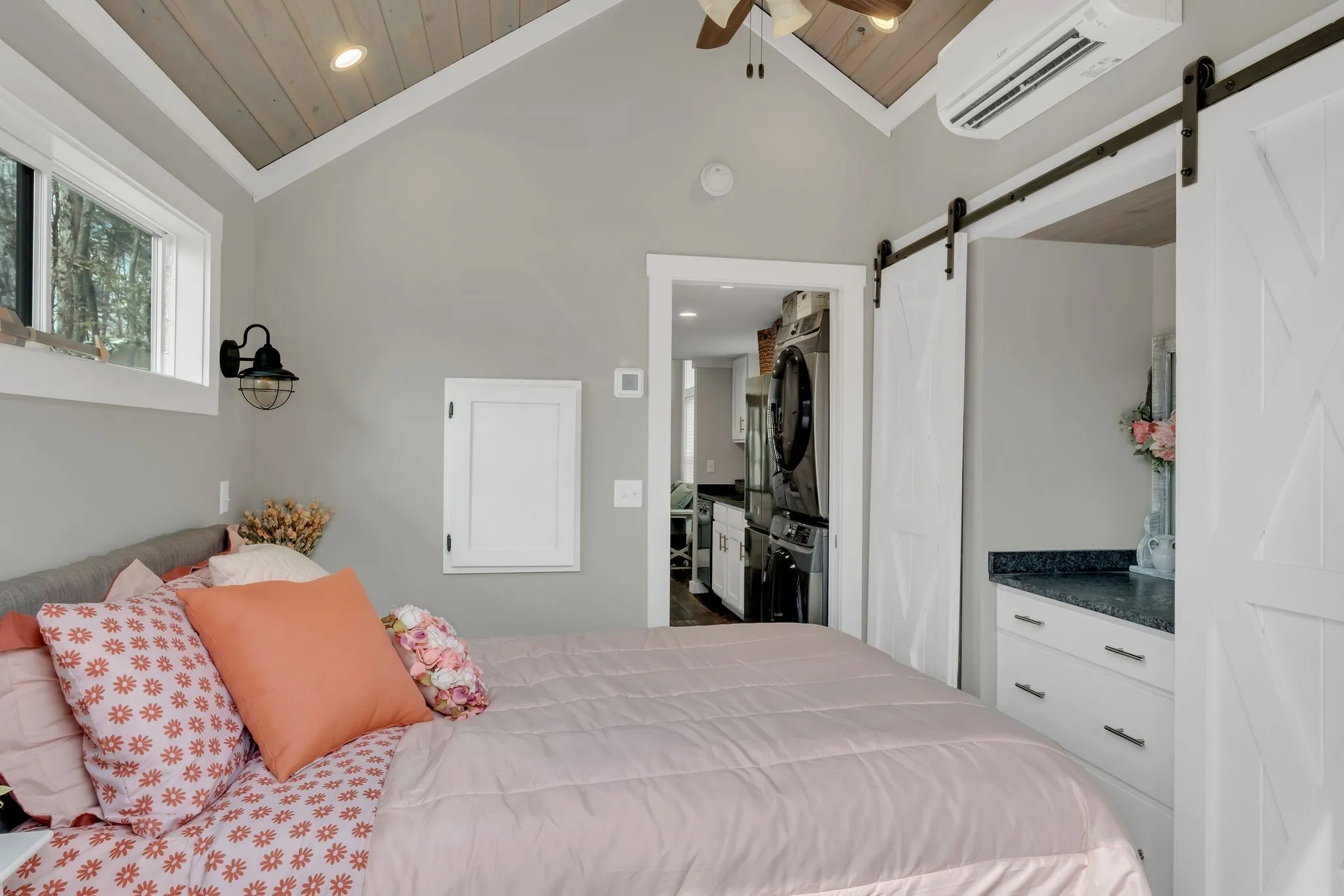 Thoughtfully designed, the home features a private bedroom with direct access to the back deck, a cozy loft for additional sleeping space, and soaring ceilings that create an open, airy feel. The full-size kitchen is equipped with stainless steel appliances—including a dishwasher—making everyday living or guest hosting a breeze.