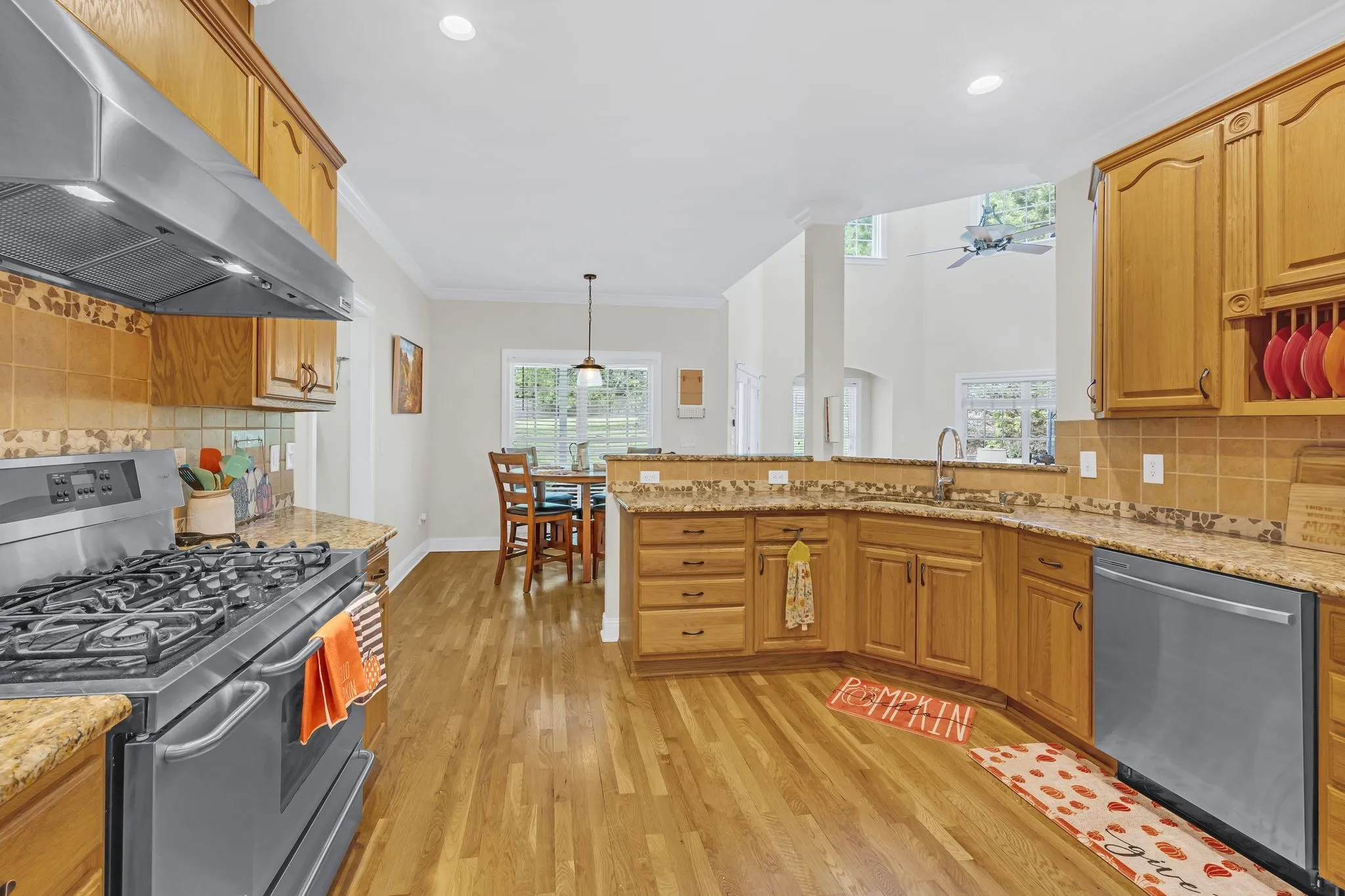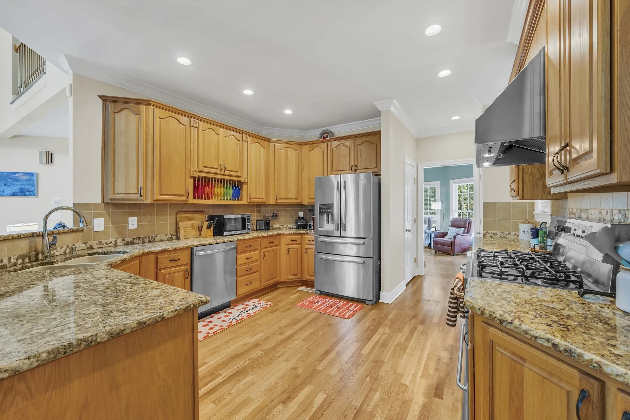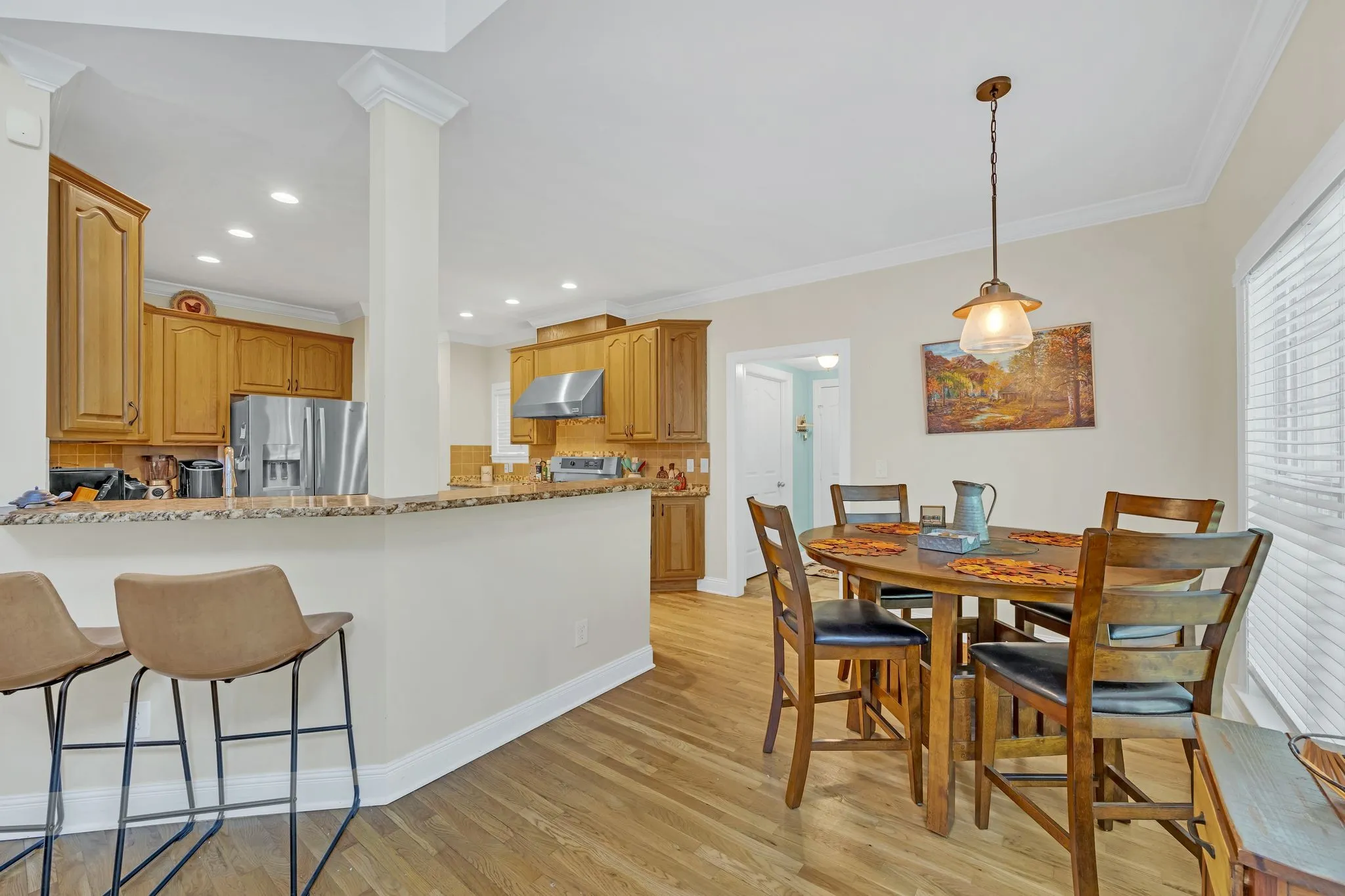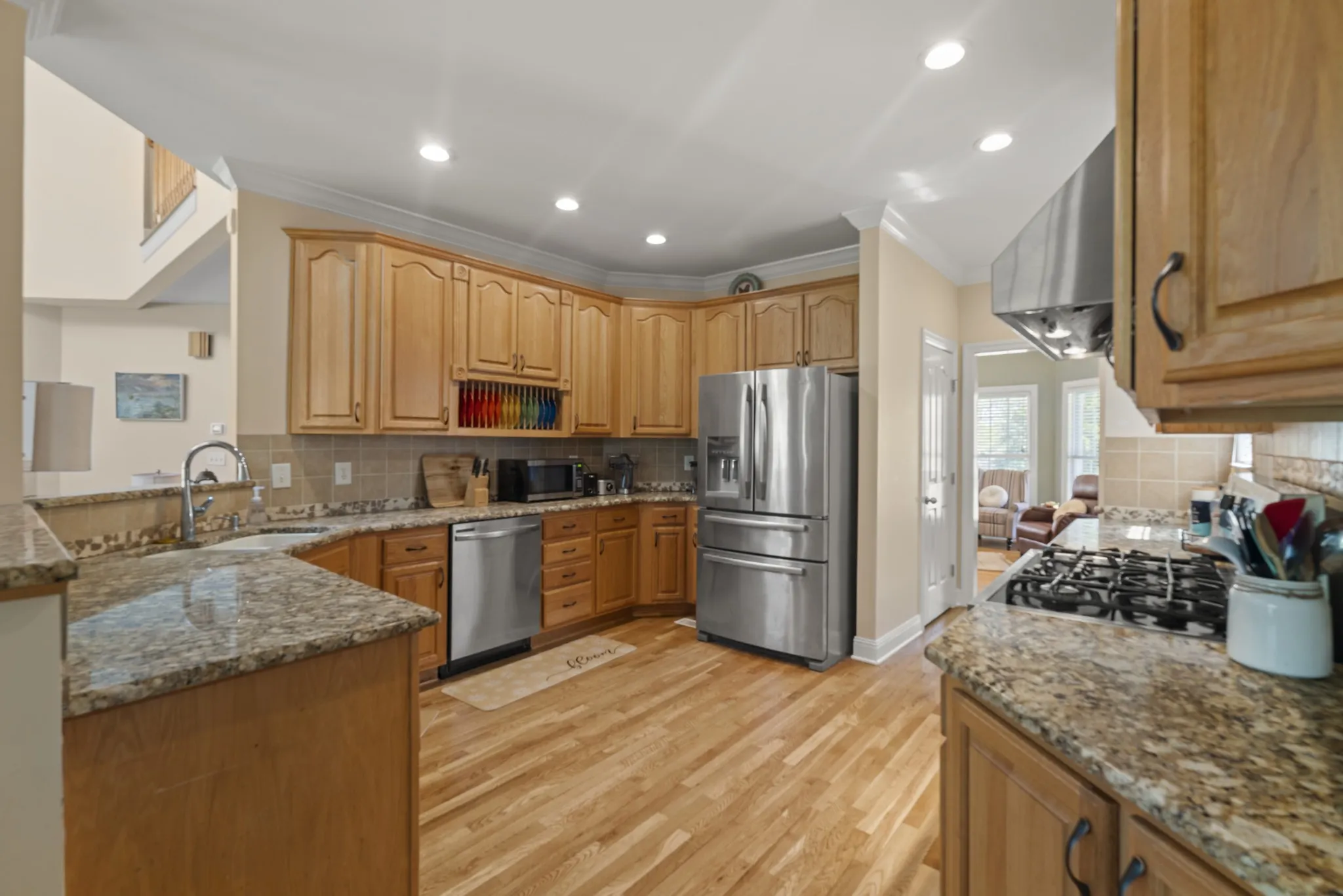 The gourmet kitchen is a chef’s dream, featuring granite countertops, premium stainless steel appliances, and a dual-fuel commercial-style stove. With two generously sized pantries, storage is never a concern. Both HVAC units have been recently replaced—upstairs in July 2023 and downstairs in November 2022—each backed by a 10-year warranty for ultimate comfort and efficiency.