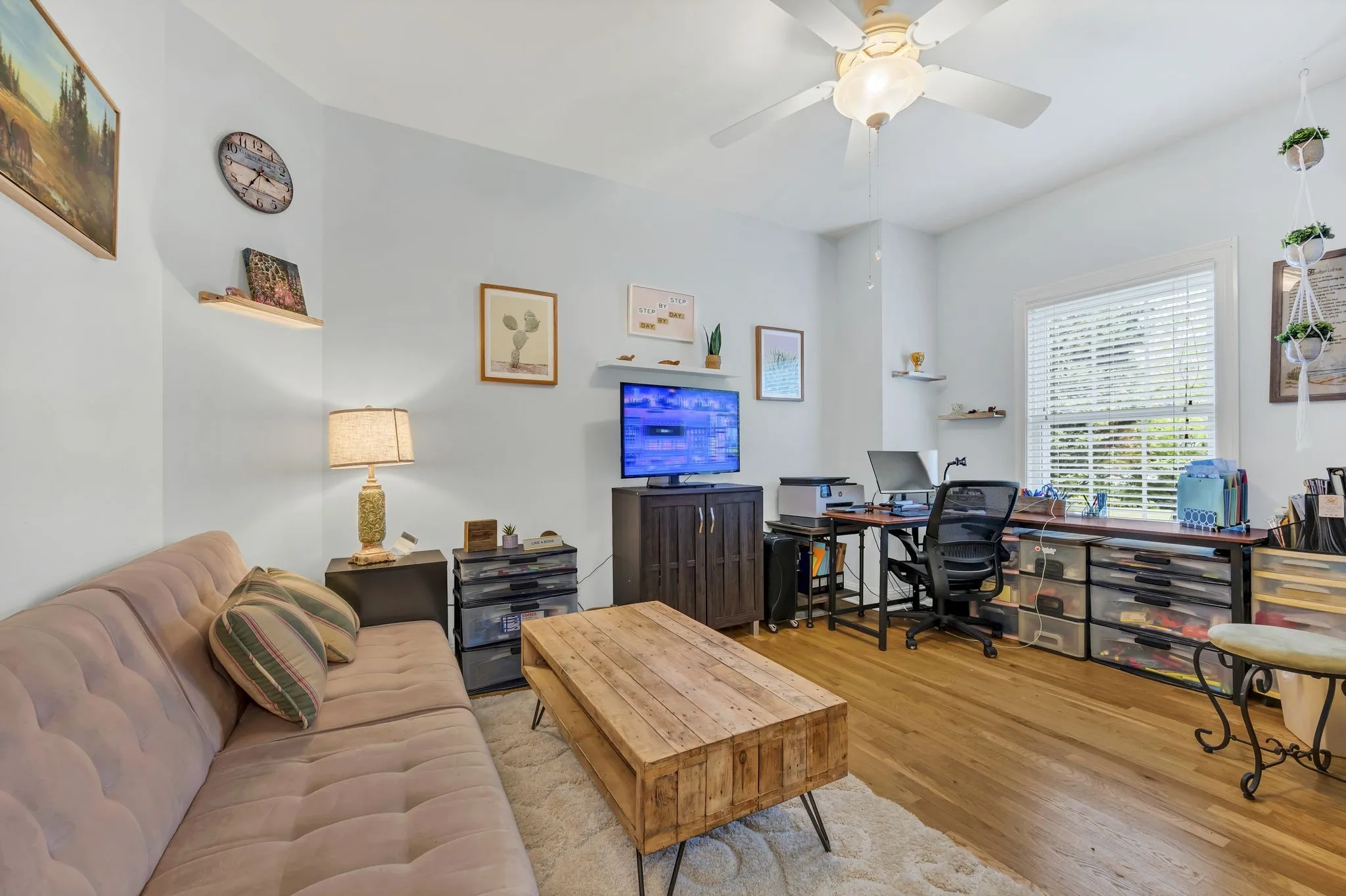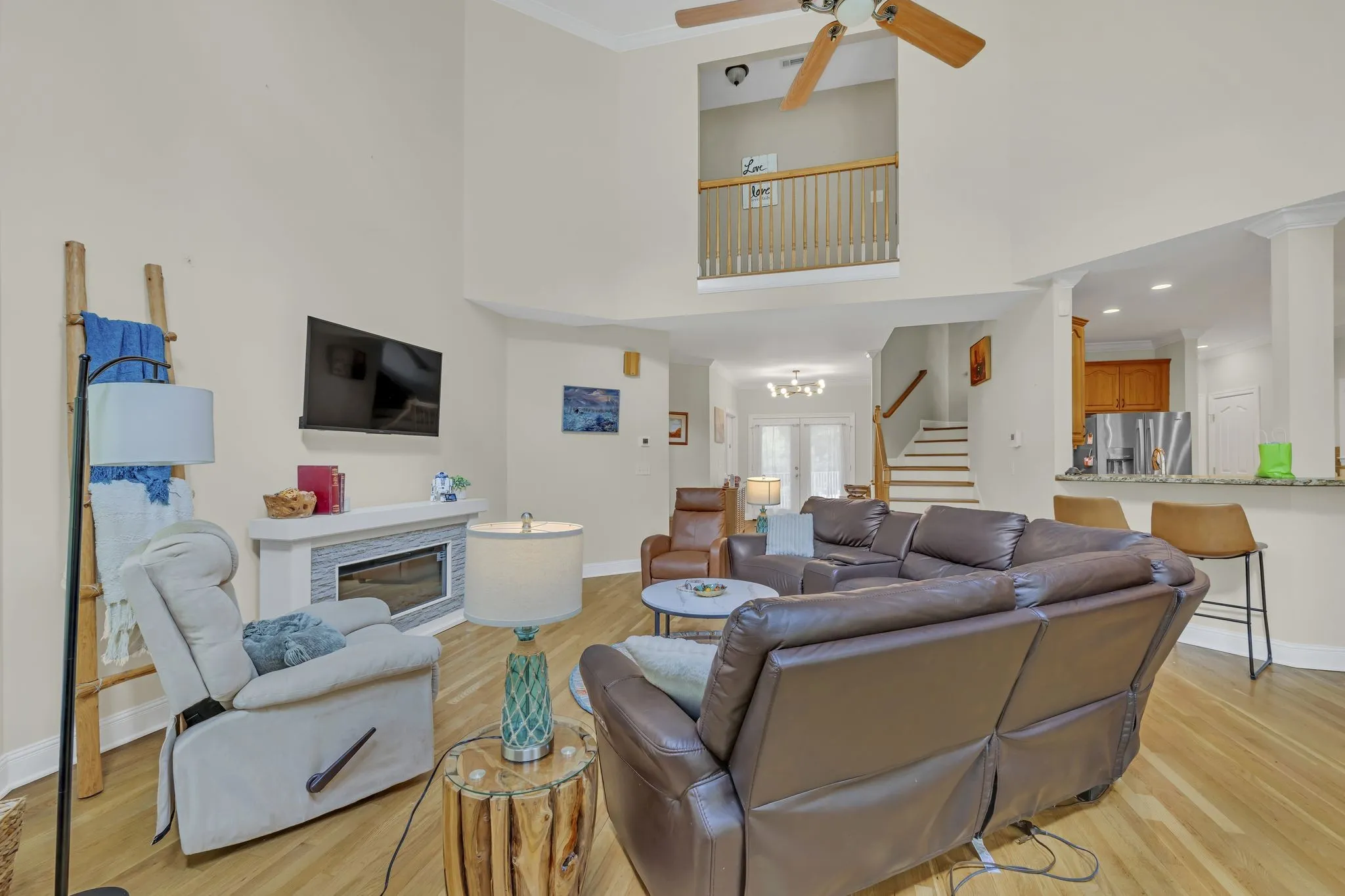 Step inside to discover stunning hardwood floors throughout the first level, complementing an open-concept floor plan with soaring ceilings that create an airy, inviting ambiance. The expansive master suite, conveniently located on the main floor, offers a serene retreat, while a second main-level bedroom, currently utilized as a sophisticated home office, provides versatile living options.