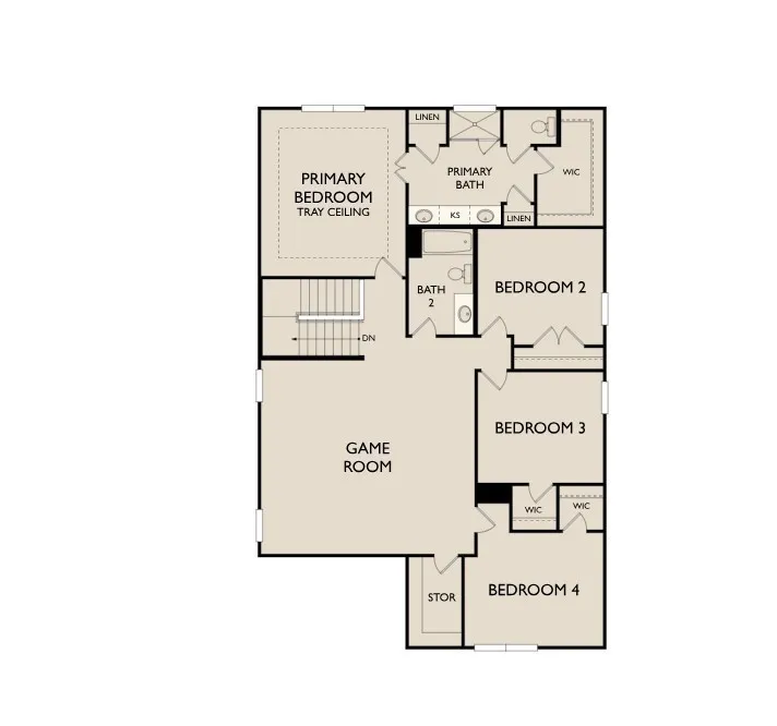 Now with 3.99% FHA/VA rate lock PLUS $10K towards closing costs with preferred lender. *Terms and conditions apply, contact listing agent for details. Welcome to the spacious Wyatt plan where you’ll find a versatile flex room off the foyer, a study with glass French doors across from the mud room, and an oversized tandem garage with plenty of space for storage. In this open-concept plan, the living room flows seamlessly into the breakfast area which lends access to a rear covered porch. The designer-curated kitchen features The Milan Collection. Here, you’ll enjoy a quartz-topped island, stainless appliances, ample cabinetry, a corner pantry, and a window above the sink. Upstairs, a large game room is ideal for a play space, home gym or office. The primary bedroom offers a tray ceiling, generous walk-in closet, double vanities, tiled walk-in shower, two linen closets, and a water closet. Three secondary bedrooms, a full bathroom, and a walk-in storage closet complete the second floor.