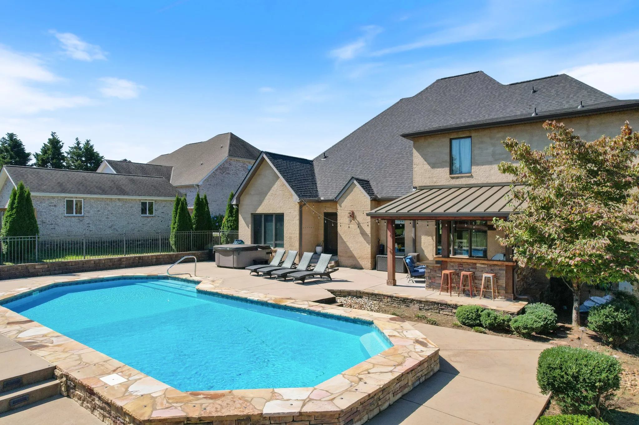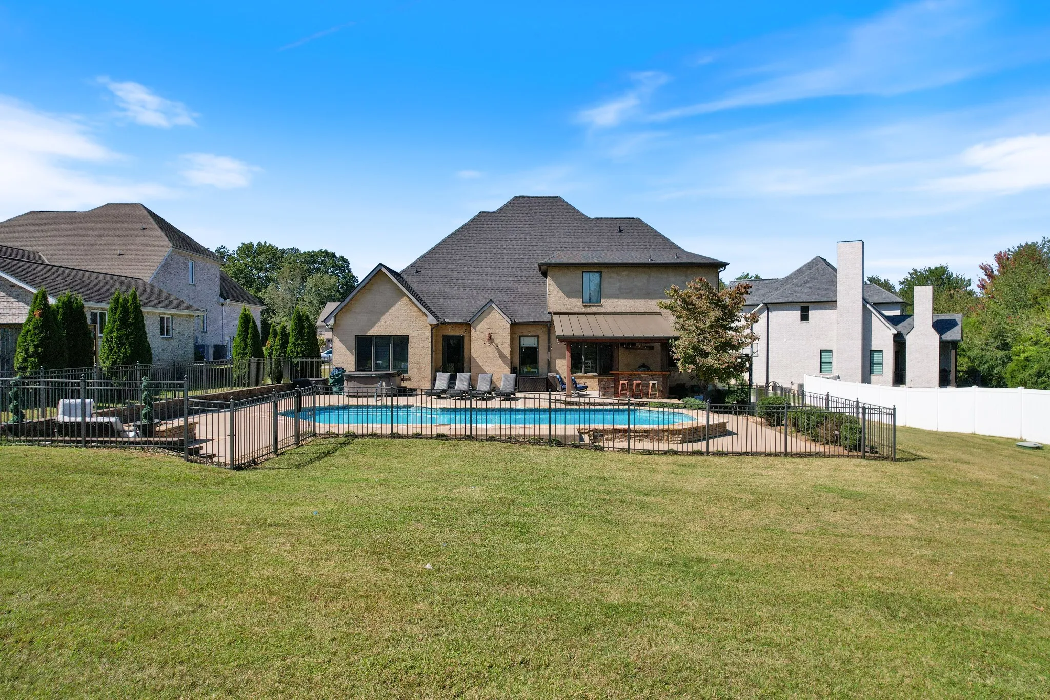 Nestled at the end of a quiet cul-de-sac in the highly desirable Lincoln Park neighborhood (NO HOA), this beautiful 5-bedroom, 3-bathroom custom home combines elegance with modern convenience. Step inside to soaring high ceilings, brand-new carpet upstairs, and beautiful hardwood flooring downstairs, creating a seamless blend of comfort and sophistication. The main level features a luxurious primary suite with a large, custom walk-in closet. The heart of the home is perfect for entertaining, with seamless flow from the gourmet kitchen to the spacious living and dining areas. Upstairs, you’ll find generously sized bedrooms and a huge bonus room — perfect for a playroom, home gym, media room, or additional living space. Outside, a private paradise awaits! The expansive, flat lot boasts an in-ground pool, a covered outdoor kitchen with gas grills, and a stunning stone gas firepit — ideal for year-round gatherings. Relax on the charming covered front porch or retreat to the backyard oasis for ultimate tranquility. Brand new roof was installed Oct. 2024. One of the HVAC units was replaced summer of 2022. Do not miss this opportunity to not only own this home, but be apart of this amazing community. Inspections welcome but home is being sold “as is”. Seller prefers 24hr notice for showings but will accommodate as much as possible.