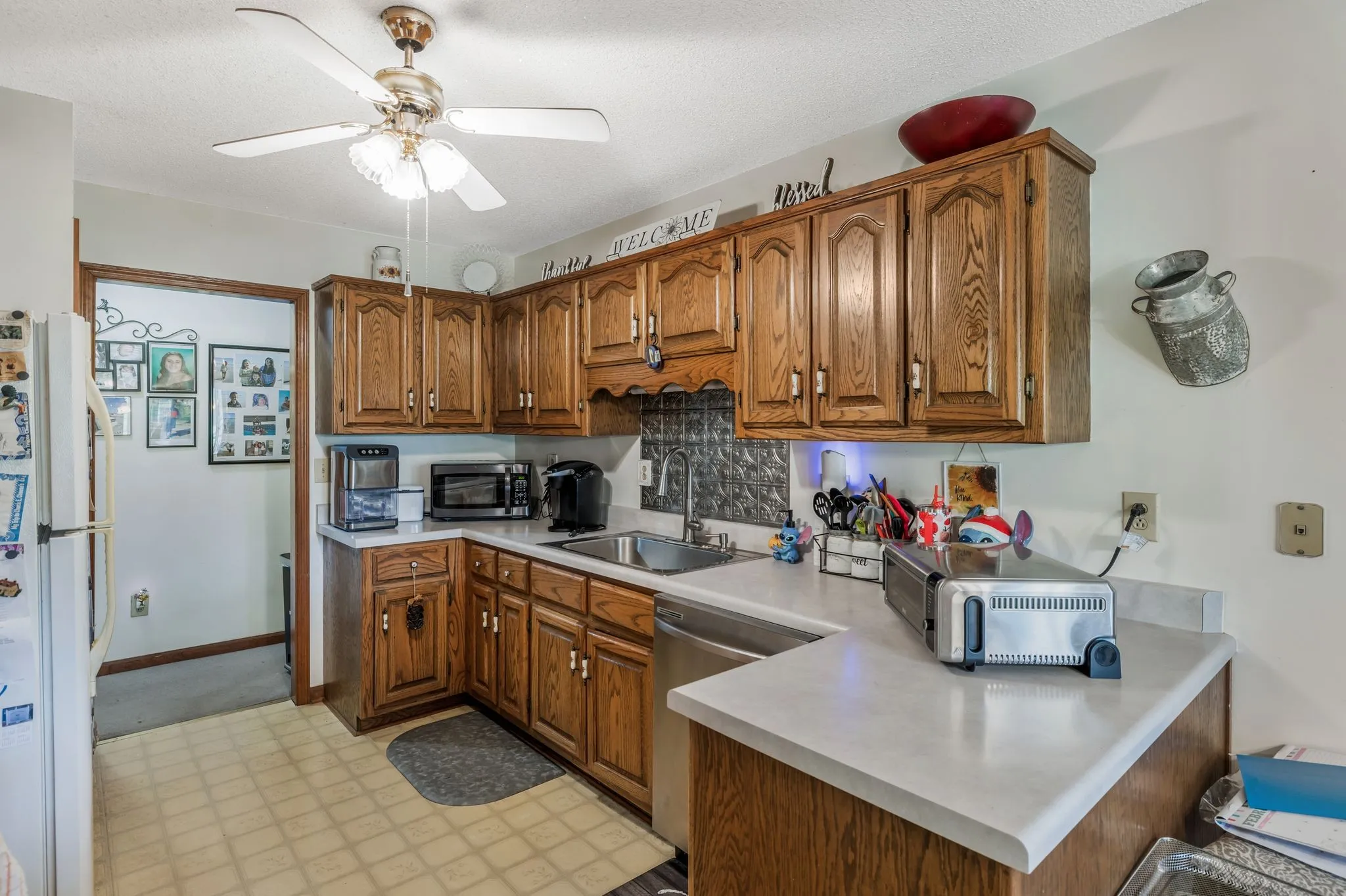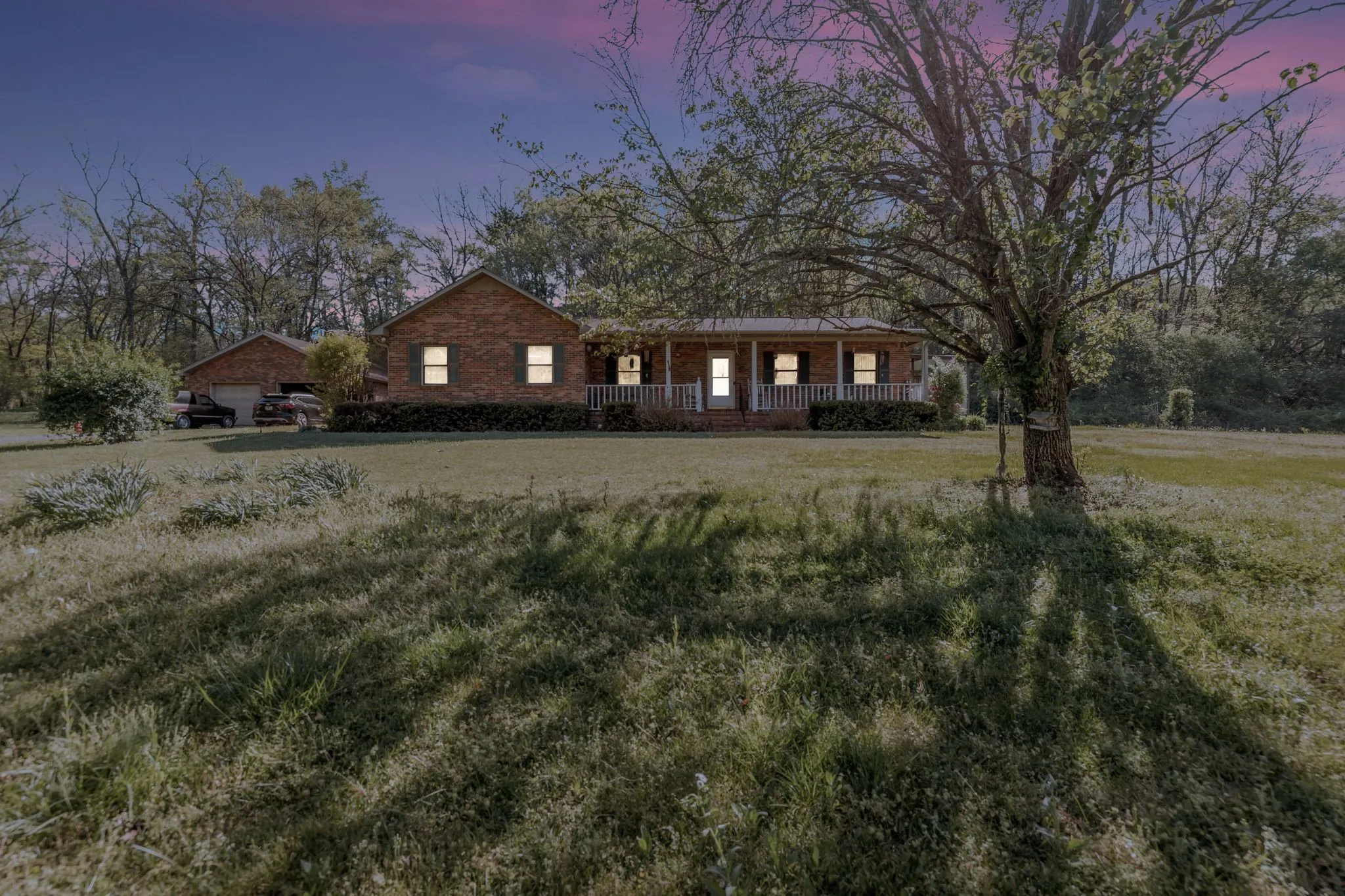 Welcome to this charming brick ranch-style home nestled on a generous, gently sloping lot that offers privacy and peaceful country living. This well-maintained home features solid oak kitchen cabinets, offering both timeless style and durability. Enjoy the convenience of an oversized two-car garage, plus an de-attached workshop—perfect for hobbies, storage, or your next big project. This is truly a must-see for those seeking tranquility without sacrificing convenience—just a short drive to town for shopping, dining, and other amenities. Please note: All measurements are approximate. If exact dimensions are important, buyer is encouraged to remeasure.