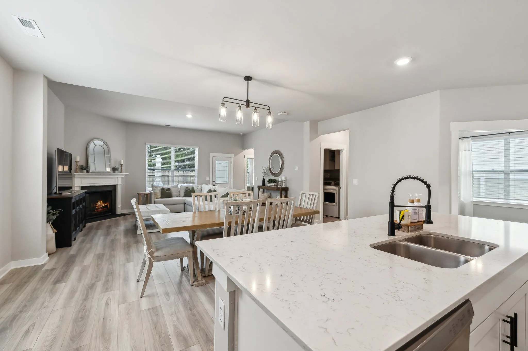 Open House Saturday & Sunday 2pm-4pm! All offers due by Sunday at 8pm. Save up to 1% of your loan amount as a closing cost credit when you use seller’s suggested lender! This stunning home offers the perfect combination of modern amenities and an unbeatable location in the heart of Murfreesboro. Situated on a quiet cul-de-sac, this 4-bedroom, 2.5-bathroom home is just under 10 minutes to The Avenue and only 12 minutes to Old Fort Park and Stones River Mall. Plus, the community features a park and playground, making it an ideal place for families to call home. Dual zoned for Blackman and Overall Creek Elementary and Blackman Middle/High. As you enter, you’ll be greeted by a grand two-story foyer that leads to the open floor plan, with a spacious kitchen, dining area, and living room. The main level features gorgeous vinyl floors throughout and an abundance of windows, filling the home with natural light. The spacious living area seamlessly connects to the kitchen and dining area, making it perfect for entertaining. The large private office downstairs features stunning trim work, creating an ideal, quiet workspace. The kitchen features ample white cabinetry, quartz countertops, a tiled backsplash, stainless steel appliances, a large island, and a pantry for plenty of storage. The large living room includes a cozy gas fireplace, ideal for relaxing. The primary bedroom is conveniently located on the main level, offering a peaceful retreat with an ensuite bath that includes double vanities, a tiled walk-in shower, and a generous walk-in closet. Upstairs, you’ll find a versatile loft area that could serve as an additional living space or playroom. Three more spacious bedrooms, all with walk-in closets, share a full bathroom. Enjoy the outdoors in your fenced-in backyard, complete with a large back patio and a serene tree line behind the fence, ensuring privacy and tranquility. This beautiful home offers a desirable location and family-friendly amenities.