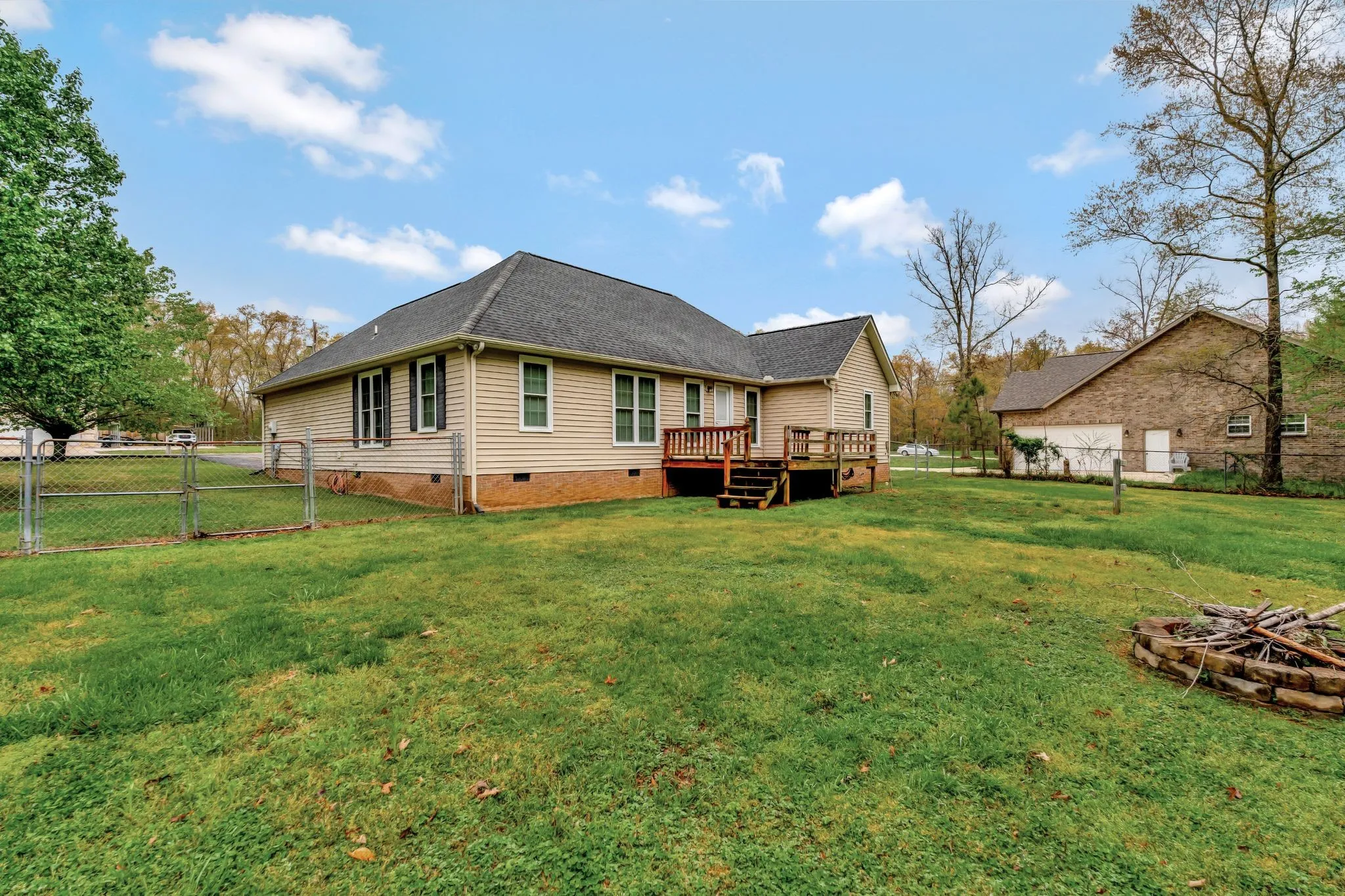 Welcome home to this beautifully maintained one-level residence, perfectly situated on a large, tree-lined lot. Inside, you’ll love the vaulted ceilings, fresh neutral paint, and an inviting electric fireplace in the living room. Work from home in the home office! The layout flows easily into the kitchen and dining spaces, ideal for everyday living or entertaining. Step out back to a fully fenced yard, complete with a deck and firepit—ready for summer evenings. Plus, enjoy the convenience of a 2-car garage and no HOA! The seller has updated the following since purchasing the home to ensure your home is truly move-in ready: New Blinds, freshly painted, current termite contract, all windows were replaced in 2021, brand new landscaping, recently pressure washed, and a newer SS refrigator that remains!