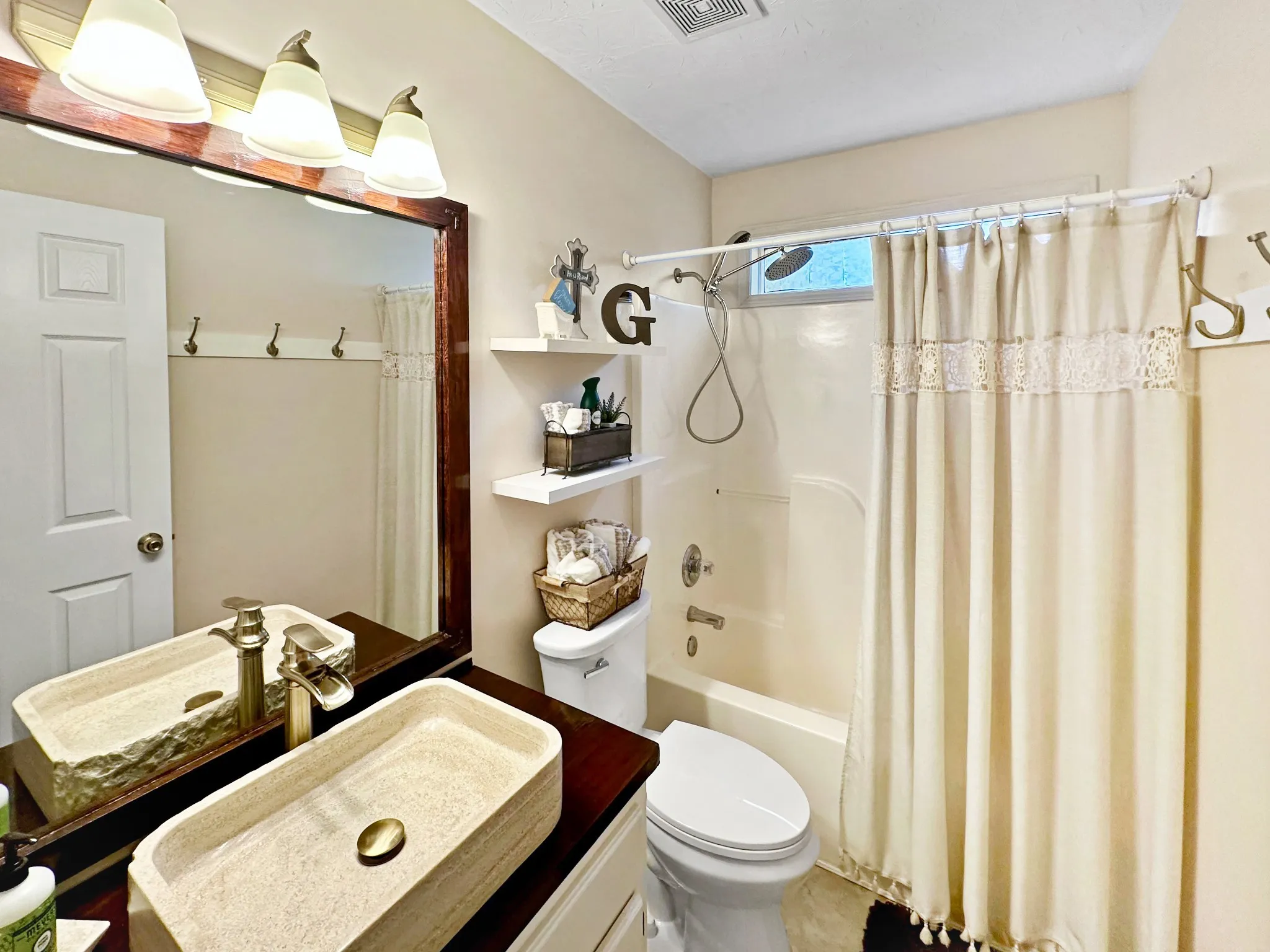 +"PublicRemarks": "Welcome to this beautiful 4-bedroom, 2.5-bath home with a bonus room, perfectly situated in the desirable Northwoods subdivision with no HOA fees! This home is ready for you to move in and enjoy its spacious layout and upgraded features. The luxurious primary suite offers a peaceful retreat, complete with tray ceilings, dual walk-in closets, a soaking tub, and a stunning tiled open shower with rainfall showerhead. The cozy great room features a gas log fireplace, providing a warm and inviting atmosphere, and flows seamlessly into the eat-in kitchen. The kitchen is a chef's dream, with a gas stove, stainless steel appliances, elegant marble countertops, and an abundance of cabinets for all your storage needs. Step outside to the backyard, which boasts brand-new fencing for added privacy and security. Additional highlights include oversized parking, a newer roof, HVAC system, and appliances. Inside, you’ll find brand-new vinyl flooring, fresh paint throughout, and an encapsulated crawl space with a humidifier. This home combines style, comfort, and functionality – all in a prime location! Don't miss your chance to make this beauty yours. Schedule your showing today!"