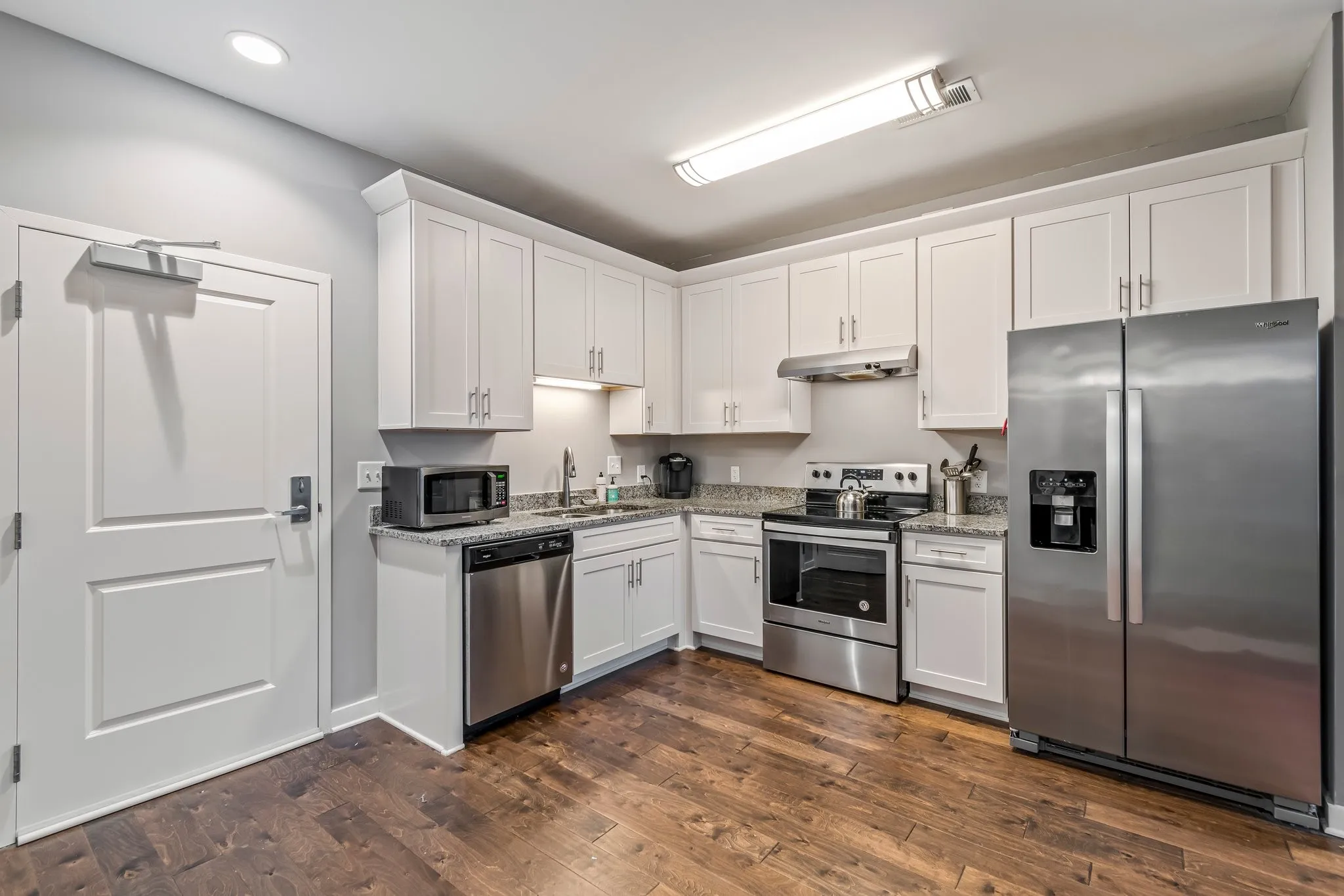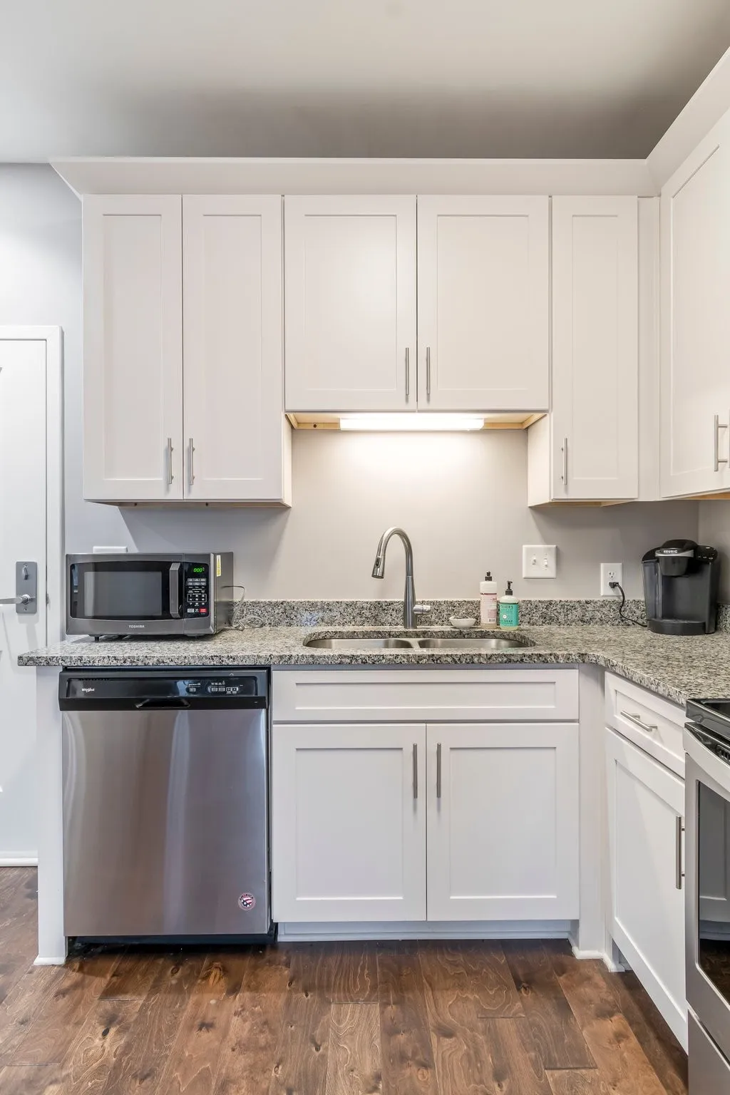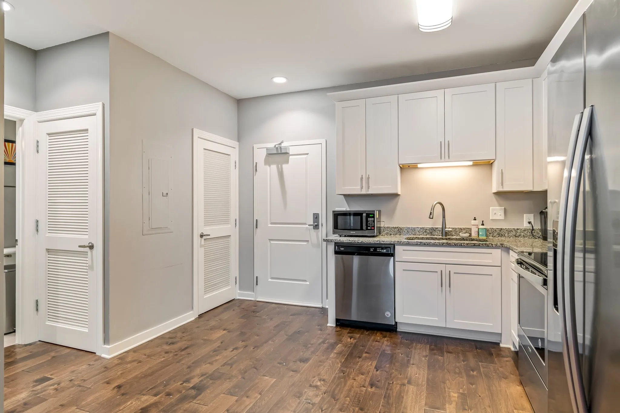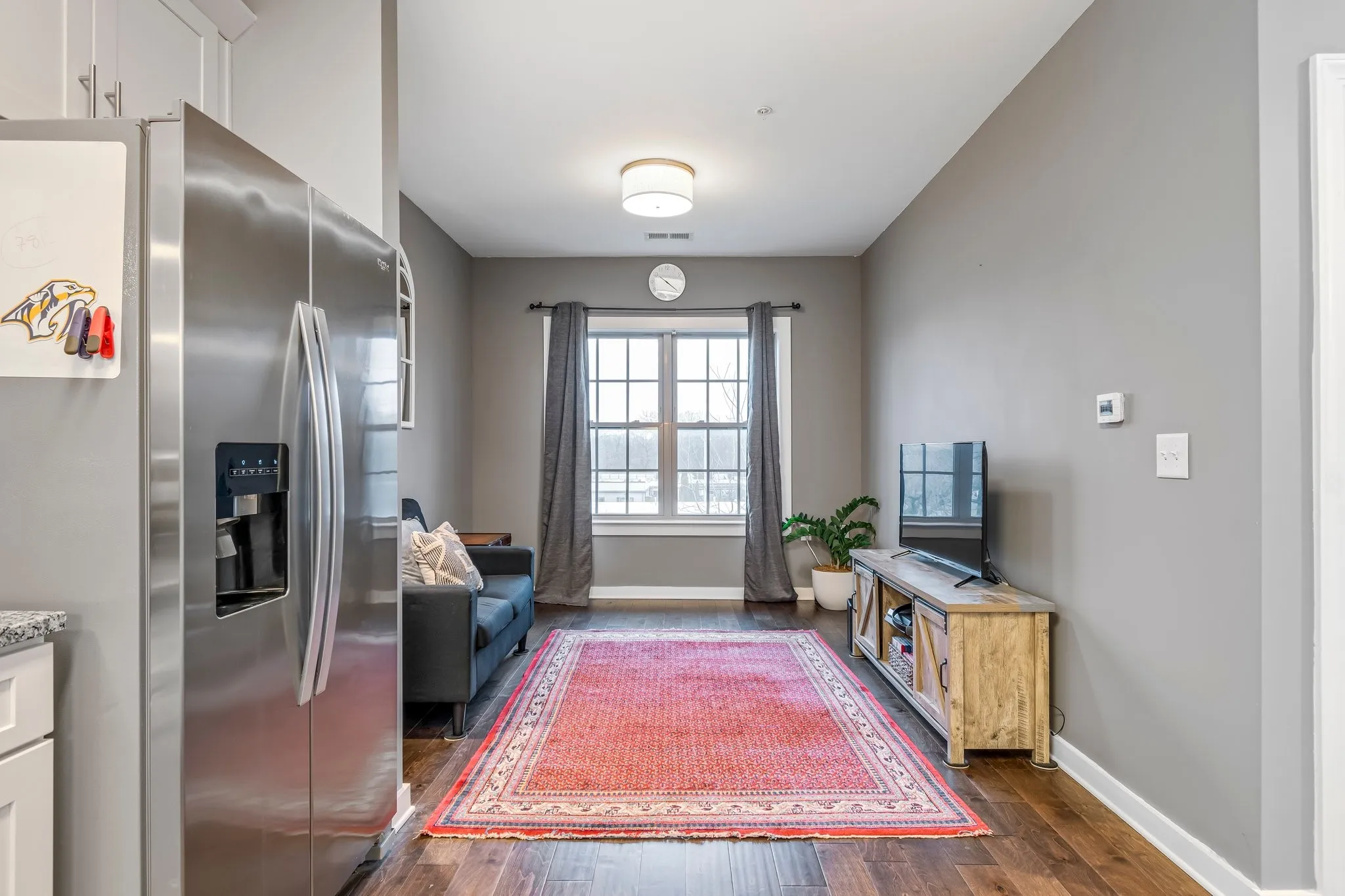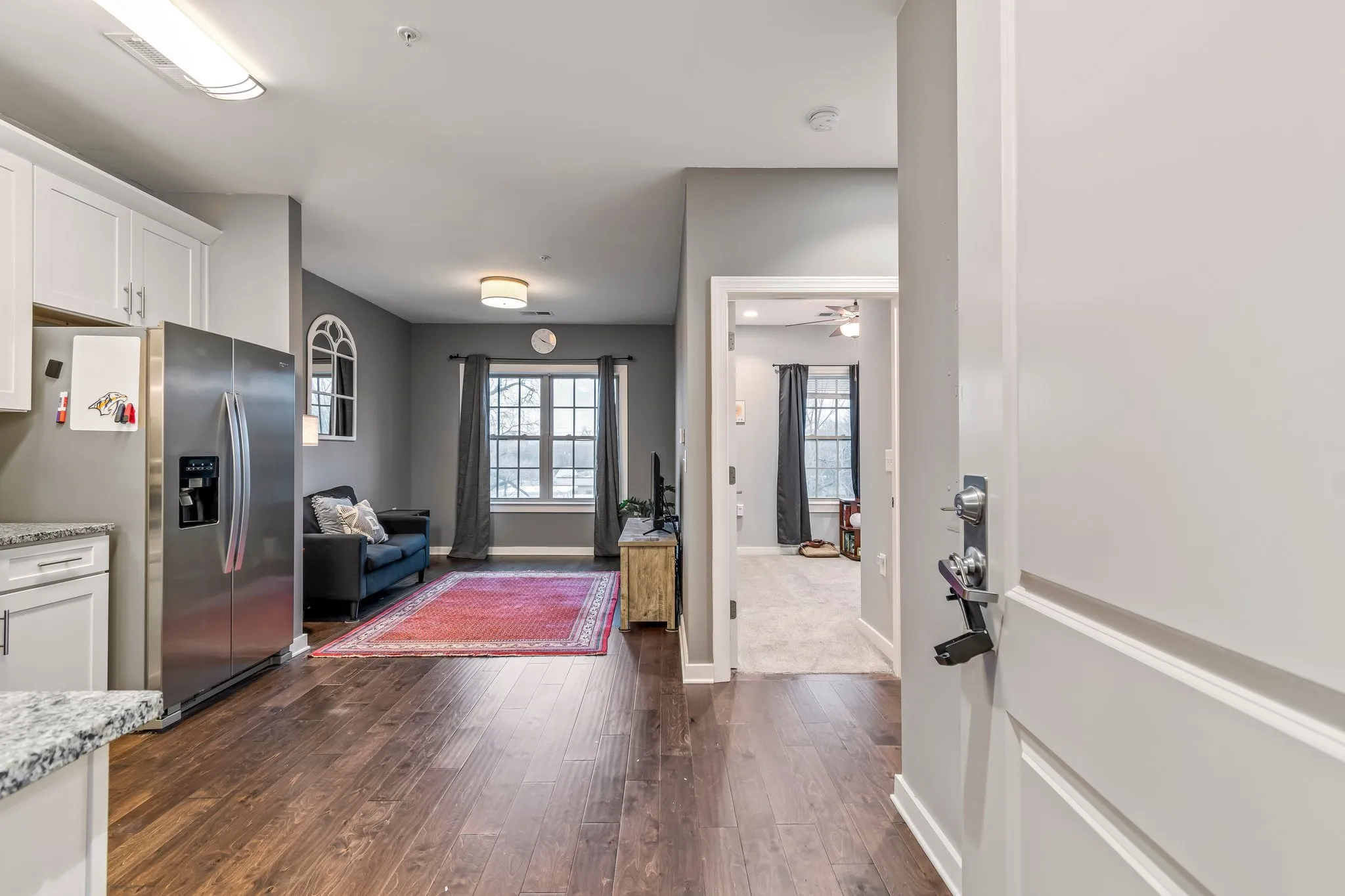 Perfectly situated within walking distance to Historic Downtown Franklin, this cozy 2nd-floor flat offers contemporary living in a prime location. Nestled in a private, peaceful setting, you’ll be just steps from restaurants, groceries, and entertainment and anything else you can think of! This beautifully maintained condo features hardwood floors throughout, an open floor plan, and a stylish kitchen and bath with white cabinetry and granite countertops. The refrigerator and stacked washer/dryer remain, ensuring a move-in-ready experience. The 30-unit building is exclusively owner-occupied—no rentals allowed. Any buyer using seller’s preferred mortgage broker will receive 1% of the loan amount towards closing costs and/or rate buydown. Terms and conditions apply. Schedule a showing today or call with any questions you may have!