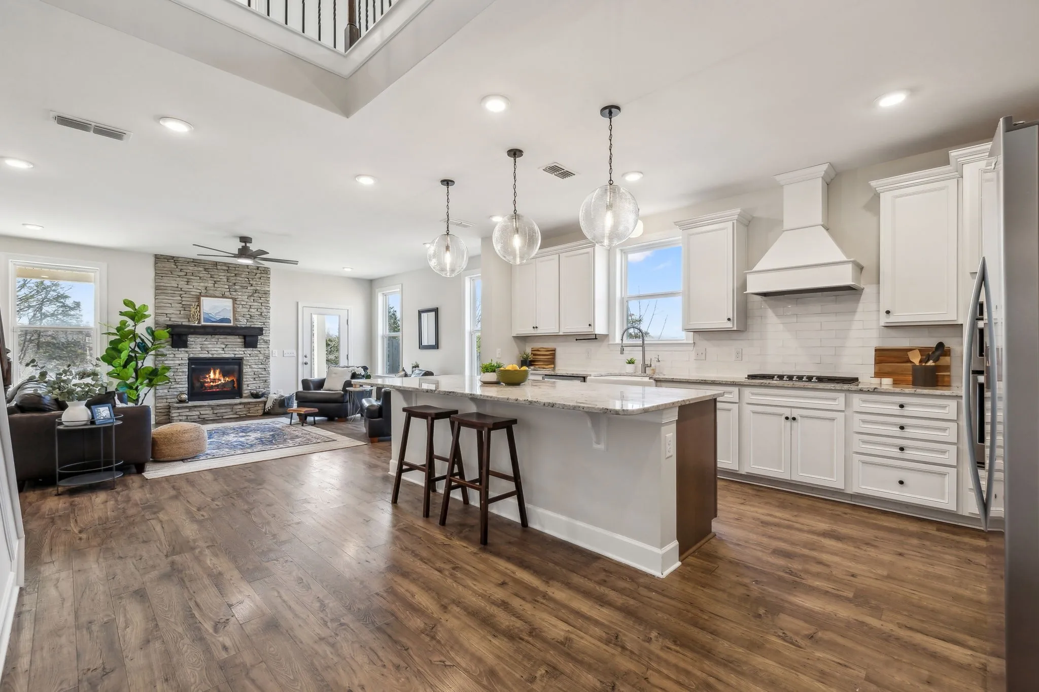 SELLER IS OFFERING BUYER CONCESSIONS with a competitive offer! A truly stunning property that captivates from the start. This exquisite home sparkles with architectural details that warmly welcome you from the curb. Inside, the kitchen is both visually striking and highly functional, featuring a ceramic farmhouse sink and a gas range, perfect for culinary enthusiasts and entertainers alike. The living room, complete with a cozy fireplace, offers a warm retreat during the colder months, while the covered rear patio provides an inviting space for enjoying milder evenings. Convenience is key with the primary bedroom located on the main floor, complete with an en suite bathroom featuring a luxurious garden tub and tiled shower. Ascend the grand staircase, which offers a sweeping view of the home, to discover three additional oversized bedrooms and two expansive family living areas. This smartly designed floor plan is ideal for multigenerational living or creating dedicated work-from-home spaces, offering modern solutions for today’s lifestyle needs. Nearby community trails lead you to Charlie Daniels Park and the Cedar Creek Trailhead when you need to touch grass and Target and other shopping is a 5 minute drive away if you need any other creature comforts. Truly a 10 out of 10, see it today for yourself. Note: Property is UNDER CONTRACT with a home sale contingency and a 72-HOUR KICK-OUT CLAUSE