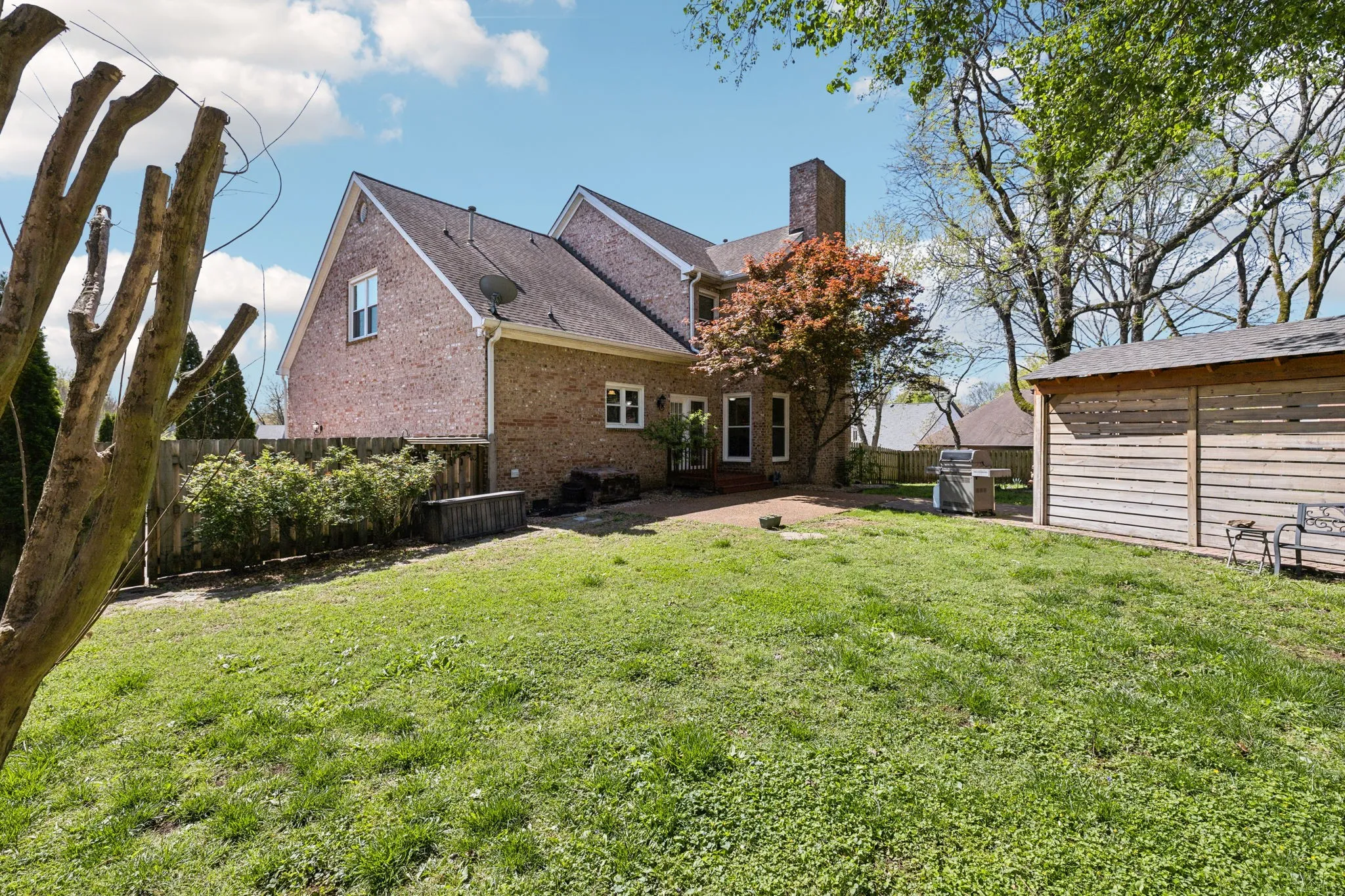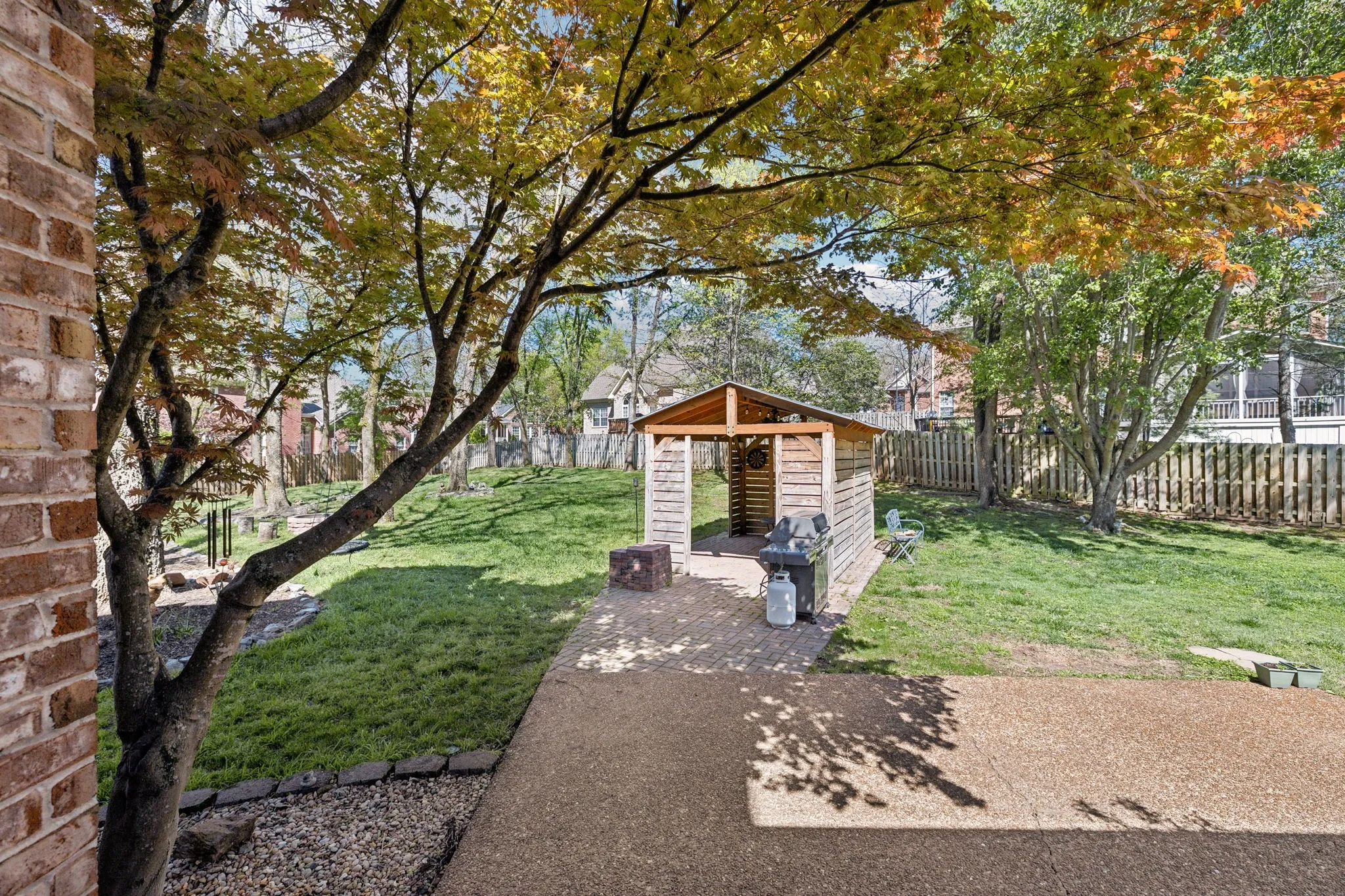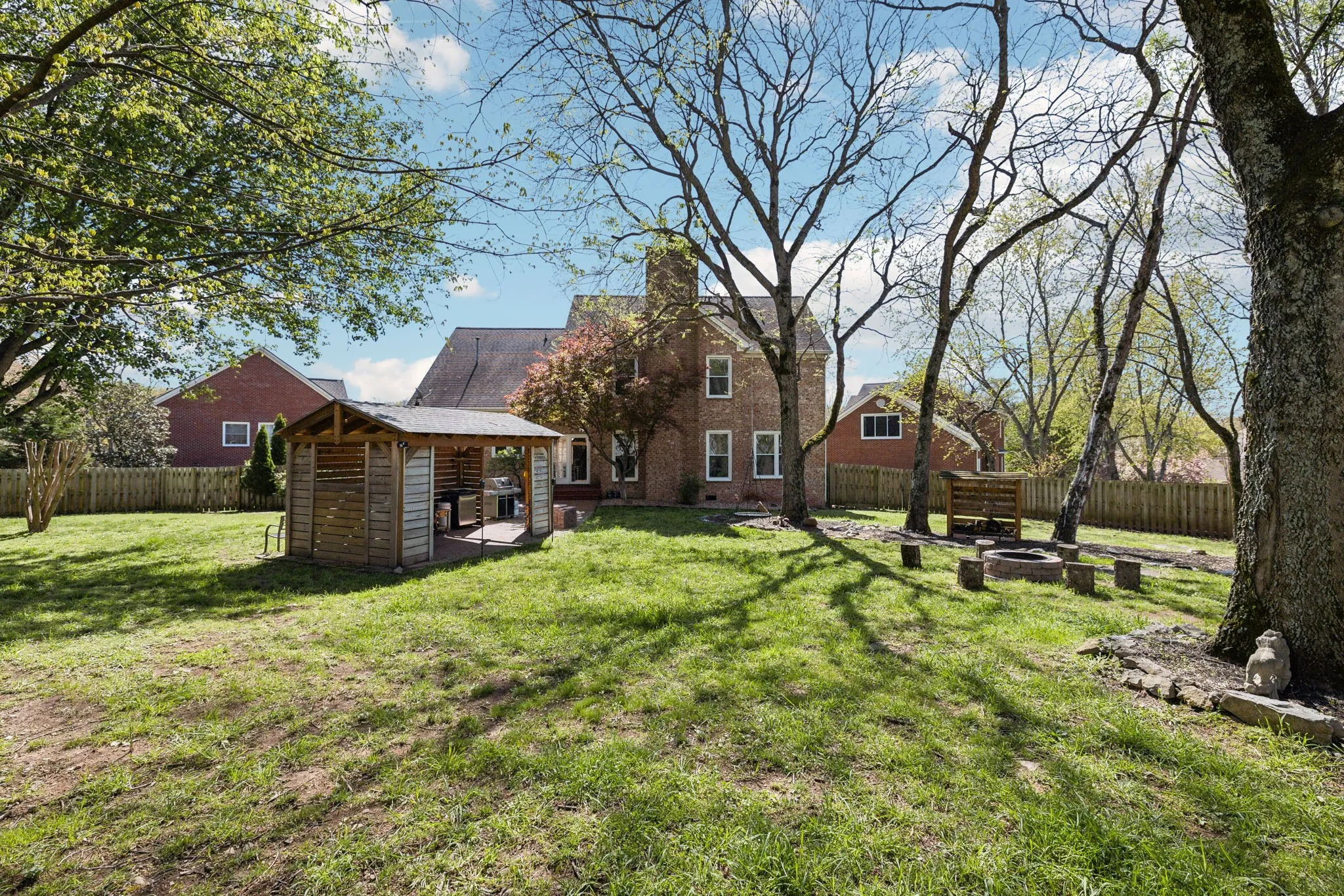 +"PublicRemarks": "Stunning All-Brick Home with a Parklike Backyard on Cul-de-Sac! Nestled at the end of a quiet street, this 4-bedroom, 3-bath home offers one of the most breathtaking backyards in Fieldstone Farms with a fully fenced lot, surrounded by mature trees, creating a private retreat. Thoughtful uplighting enhances the home's exterior, while the 15x11 pavilion—featuring outdoor fans, pavers, a fridge, and Edison bulb lighting—makes for the ultimate outdoor entertaining space! Step inside to a grand two-story entry that flows seamlessly into an open floorplan filled with natural light. The main level showcases gorgeous hardwood floors, a formal dining room with large windows, and a spacious living room with gas fireplace and custom built-ins. A formal office and an additional flex room (ideal as a second office or main-level bedroom) provide extra versatility. The chef’s kitchen is designed for both style and function, featuring hard surface counters, stainless steel appliances, a brand-new gas cooktop with exterior venting, stone backsplash, elegant pendant lighting above the island, and two pantries for ample storage! The oversized laundry room includes a mud sink for added convenience. Upstairs, the primary bedroom is a true retreat, offering an ensuite bath with a double vanity, separate jetted tub, and a walk-in shower. Additional highlights include a 20x8 storage closet and a 10x20 hobby room. Incredible location with top-rated schools, community amenities, and easy access to Downtown Franklin, Green Hills and Downtown Nashville! Don’t miss this rare opportunity to own a beautiful home with an unmatched backyard oasis—schedule your showing today! View Video Walk Through here: https://shorturl.at/0Uifp"