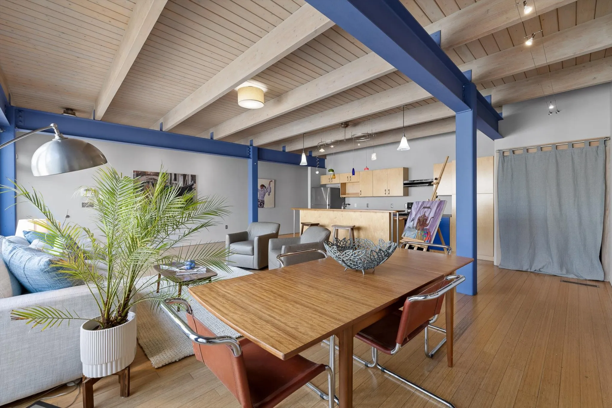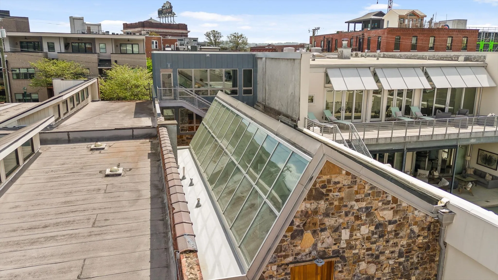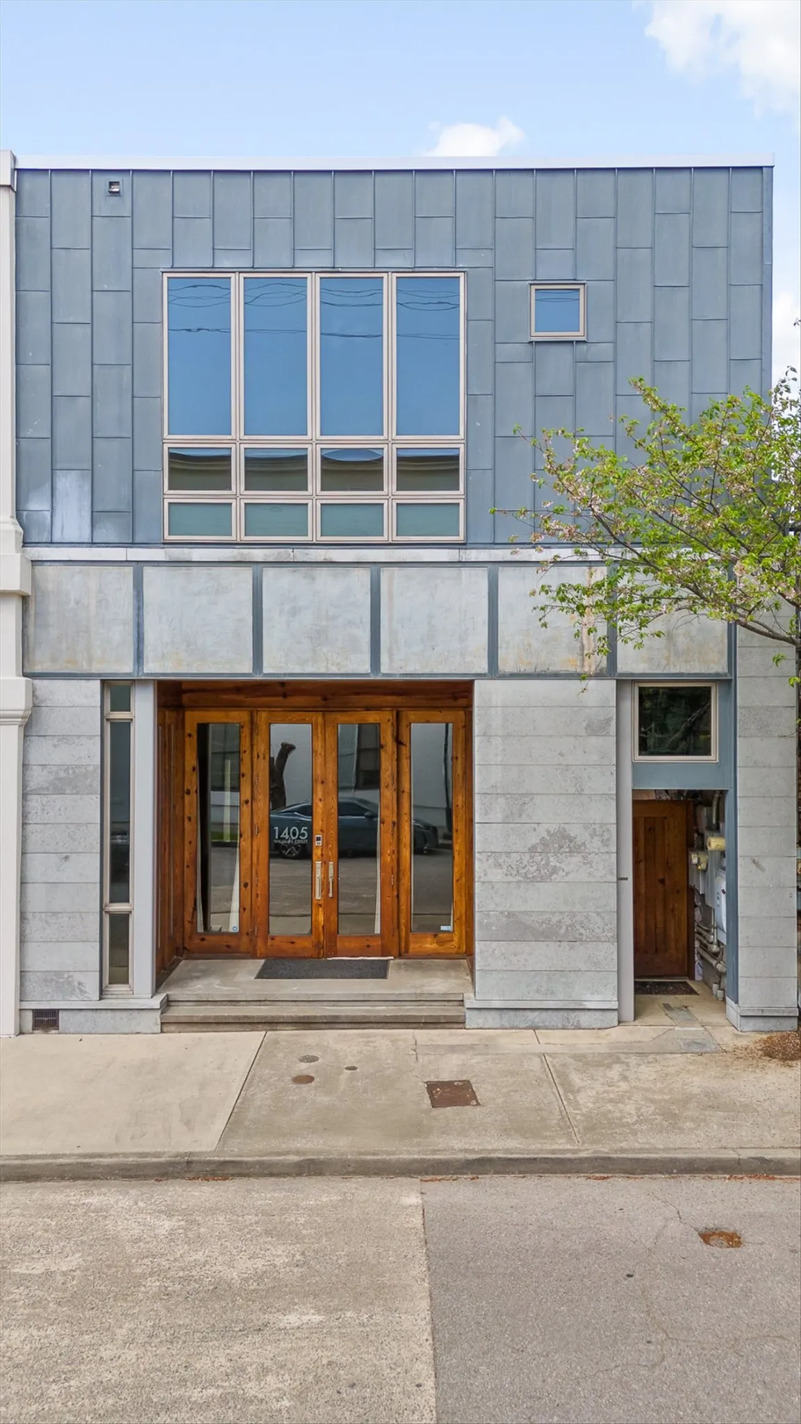 Do Not Miss this Architectural Masterpiece in the Heart of Southside. One of the first mixed-use spaces to be built during the revitalization of Southside – 1405 Williams is a true cornerstone of the neighborhood. Designed by Hefferlin + Kronenberg Architects, this building was built for artists to serve as their commercial gallery, working studio and residence. In 2005, the property won an AIA Architecture Excellence Award as an outstanding example of mixed-use space. The combination of residential, commercial and creative space offers multiple options for the next owner to establish their own footprint in Chattanooga’s beloved Southside district. Facing Williams Street, the three-story facade has an industrial feel with a limestone and zinc exterior and a dramatic series of 10-foot doors opening into the vaulted gallery. The second level is a great room with a wall of windows and full bath. The residence is on the top floor and has an open living space with floor-to-ceiling windows highlighting the mountains. An intimate, European-inspired courtyard connects the front building with the rear studio. This courtyard features beautiful stonework as well as a mosaic mural covering the entire south wall. These mosaics, and others interspersed throughout the property, are originals created by the owners. This central space is perfect for quiet reflection or big parties (but the adjoining catering kitchen encourages entertaining)