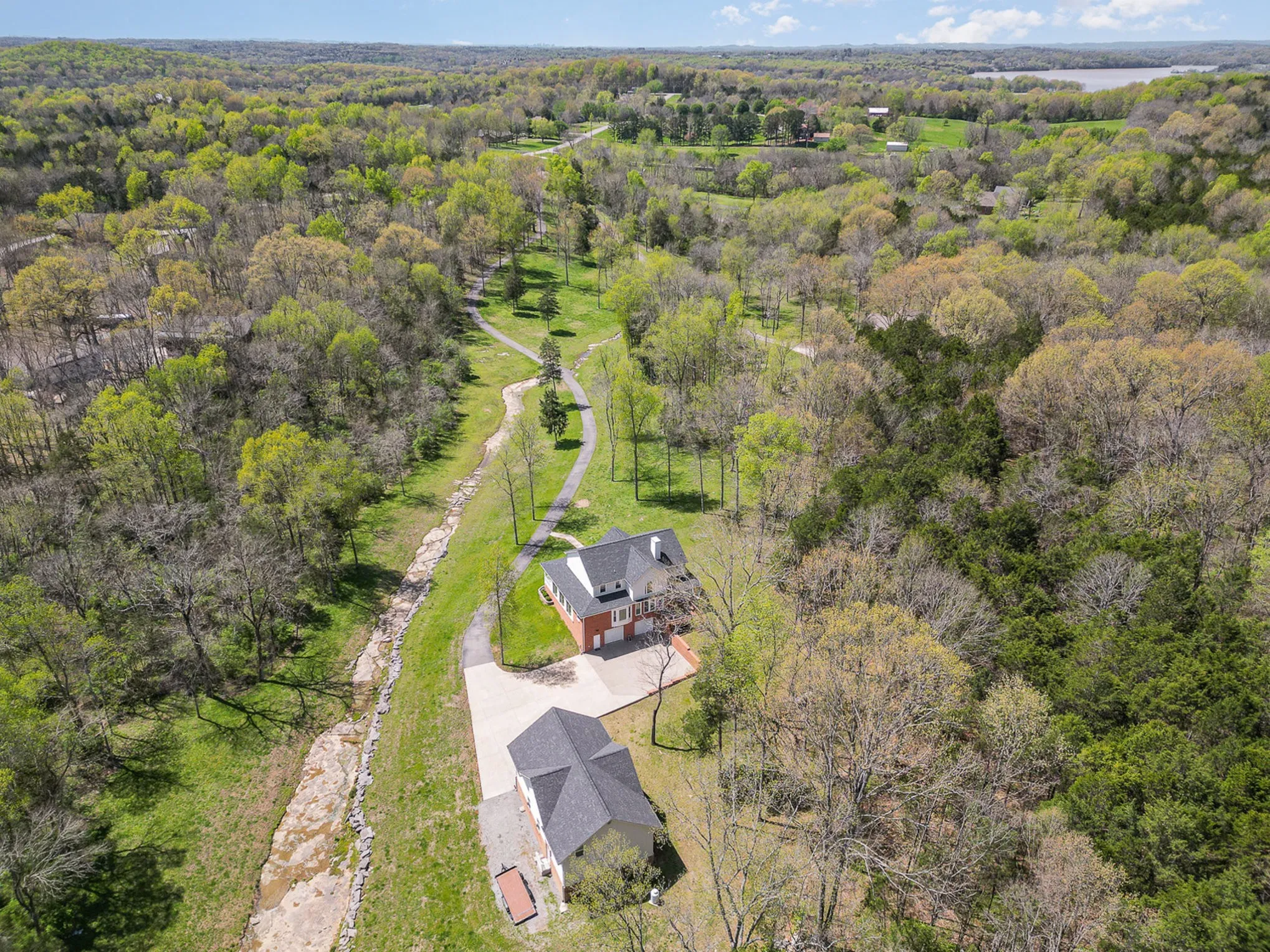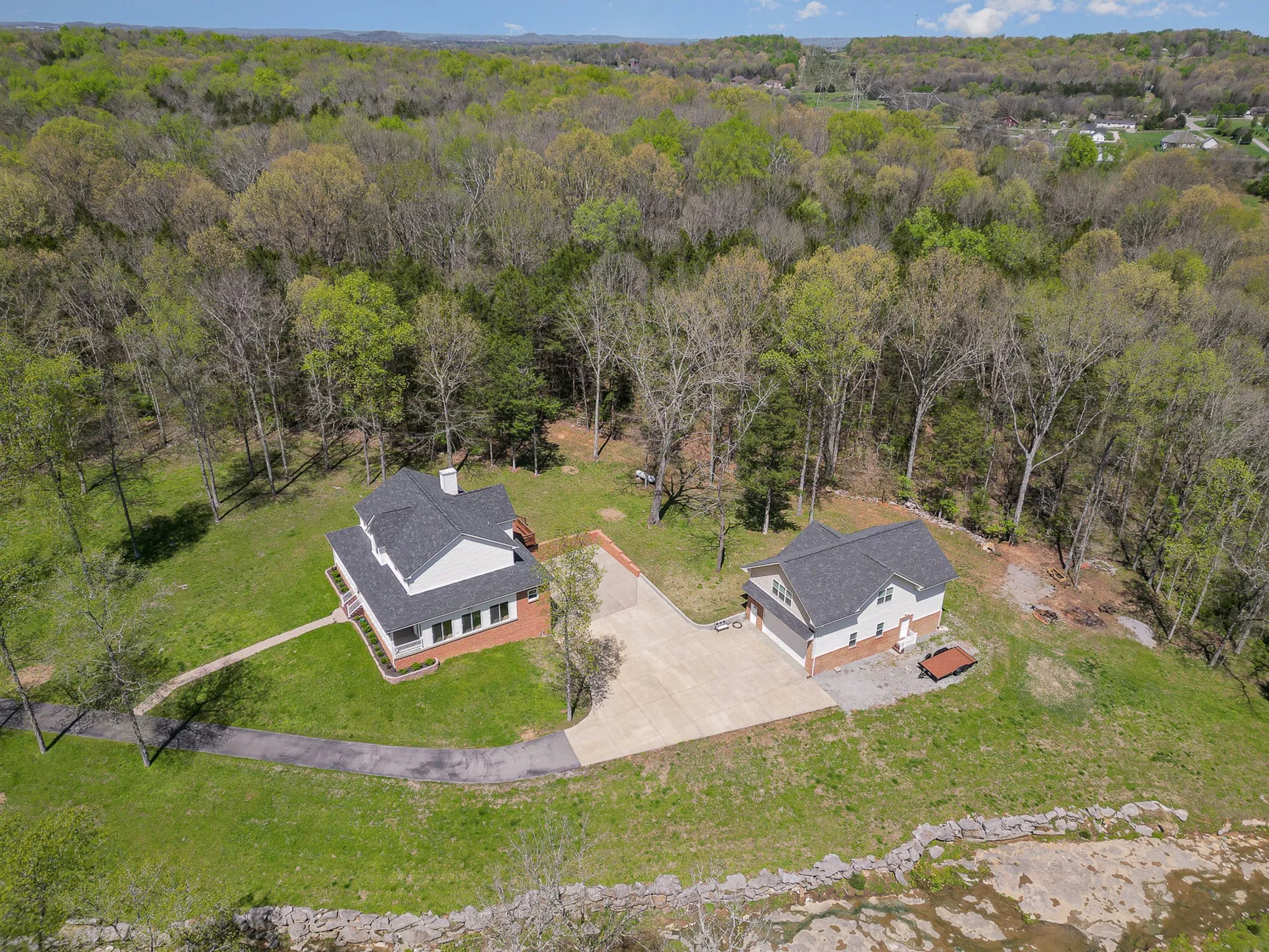 +"PublicRemarks": "Public Remarks:\u{A0}Serene Estate on 6.84 Acres of pristine land, the property boasts a park-like setting with a tranquil, flowing creek winding through the lush woods—perfect for enjoying nature and peaceful serenity. This rare gem in the heart of Mount Juliet, TN! An extremely solid, well-built home using all dimensional lumber, stunning 4-bedroom (2 primary suites), 3.5-bathroom home offers 3,800 sq ft of living space, including an oversized office/bonus room and a spacious heated 2- car garage basement Relax and unwind on the covered front porch or take in the picturesque views from the inviting sunroom, where you can listen to the gentle sounds of the creek year-round. Inside, the home features modern updates, including new roof & gutters with guards in 2022, windows in 2020, & hot water heater installed in 2021. The kitchen is equipped with an under-counter charcoal water filter with a separate tap, providing fresh, purified water at your convenience and 40 bottle wine cooler. The heated unfinished 2 car, 47x35 basement/garage offers lots of storage or the potential for a custom workshop, storm shelter, or additional living space with a 55’ previously used gun range indoor space. Included on the property is a detached heated 30x50’ garage. Structure is built on 6” stud walls & is foam insulated walls w/10x20’ garage door, 12’ceilings, & ½ bath space providing abundant space for vehicles, boats, RV’s equipment, or hobbies. Upstairs is an additional 1,500 sq ft guest house featuring 2 bedrooms, 1 bath/washer/dryer combo, a full kitchen and living/dining combo with floored attic space, ideal for in-law’s quarters, rental income, or private retreat. No HOA! Enjoy the freedom to personalize and expand this remarkable estate to fit your vision. There are loads of deer, turkey and even a resident juvenile bald Eagle. A rare giant pileated woodpecker even makes a few appearances Don’t miss this unique opportunity to own a peaceful retreat with endless poss"
