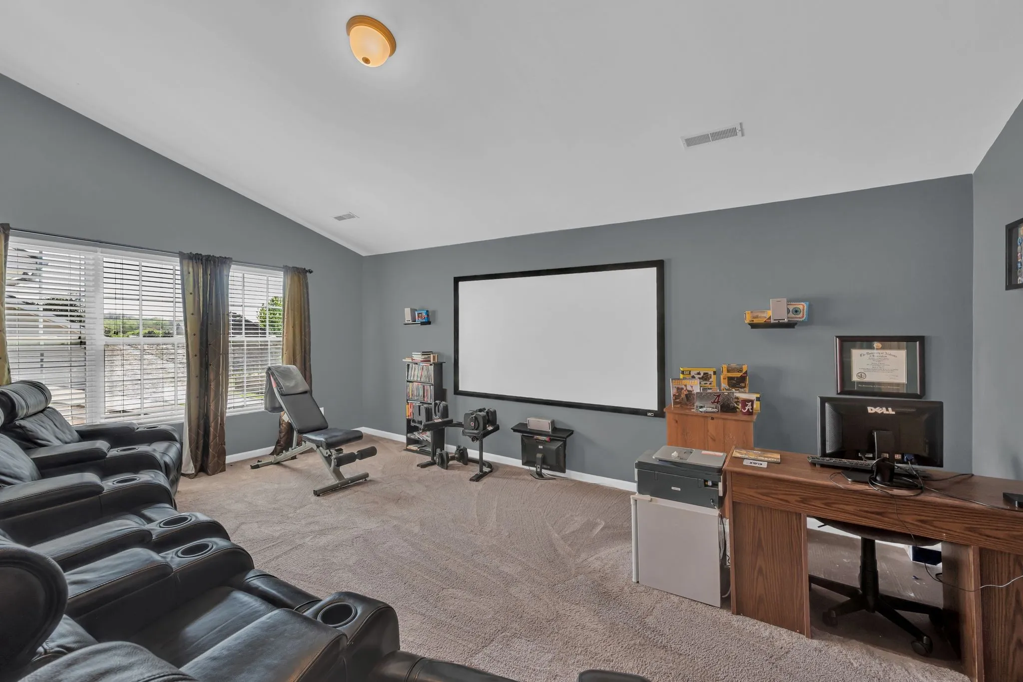 A main-level bedroom with a full bath is perfect for guests or multigenerational living. Upstairs, the expansive primary suite includes two walk-in closets, while additional highlights include a large media room, bedrooms 3, 4, and 5, attic storage, and back stairs leading directly to the kitchen. Recent updates include a new roof (2022) and new upstairs A/C unit (2023). A home warranty is included through relocation services.