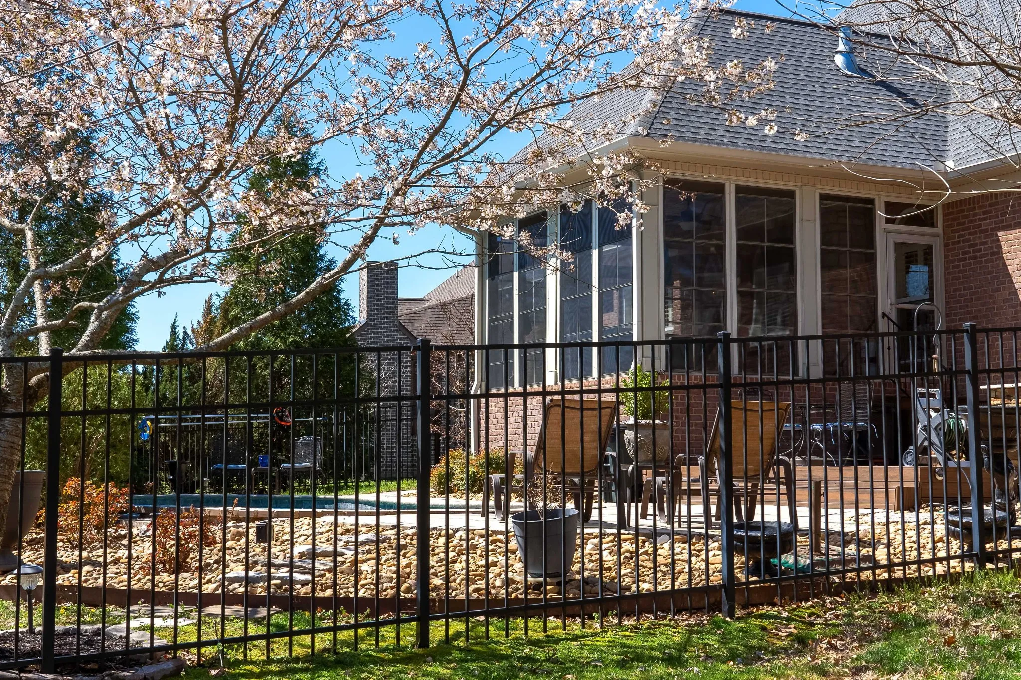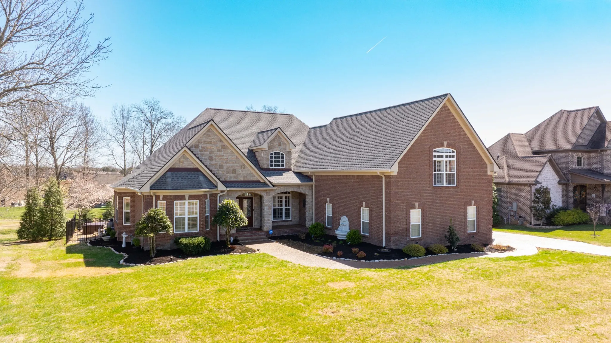 +"PublicRemarks": "Casual Elegance in Wright Farms: Pool, Hot Tub, and Much More !!! Discover this stunning 3,520 sq. ft. All Brick home in the very desirable Wright Farms Neighborhood. This Home Features 4 Bedrooms, including 2 Master Suites, 3.5 Baths, and a large Bonus Room, it's perfect for families or multi-generational living. Plantation shutters throughout add timeless charm and privacy. Beautiful Hardwood Floors flow seamlessly thru the open-concept design, highlighting a spacious, light-filled living area with smart light switches for modern convenience. Step outside to your screened-in patio with EZ Breeze Windows, Your private retreat for entertaining or relaxation. A traditional sauna is also included for a spa - like experience at home. Endless hot water provided by a tankless water heater, paired with a whole - home filtration system for clean, purified water throughout the home. Abundant storage includes two oversized walk - in closets, a generous walk - in attic, and an expansive 3 - car garage with an epoxy - coated floor for durability and style. A sprinkler system keeps your landscape vibrant and easy to maintain, enhancing the curb appeal and serene, tree - filled charm of your Wright Farms Lot. Conveniently located near Providence shopping, dining, and entertainment, with easy airport access, this home combines elegance, comfort, and premium features on a peaceful lot."