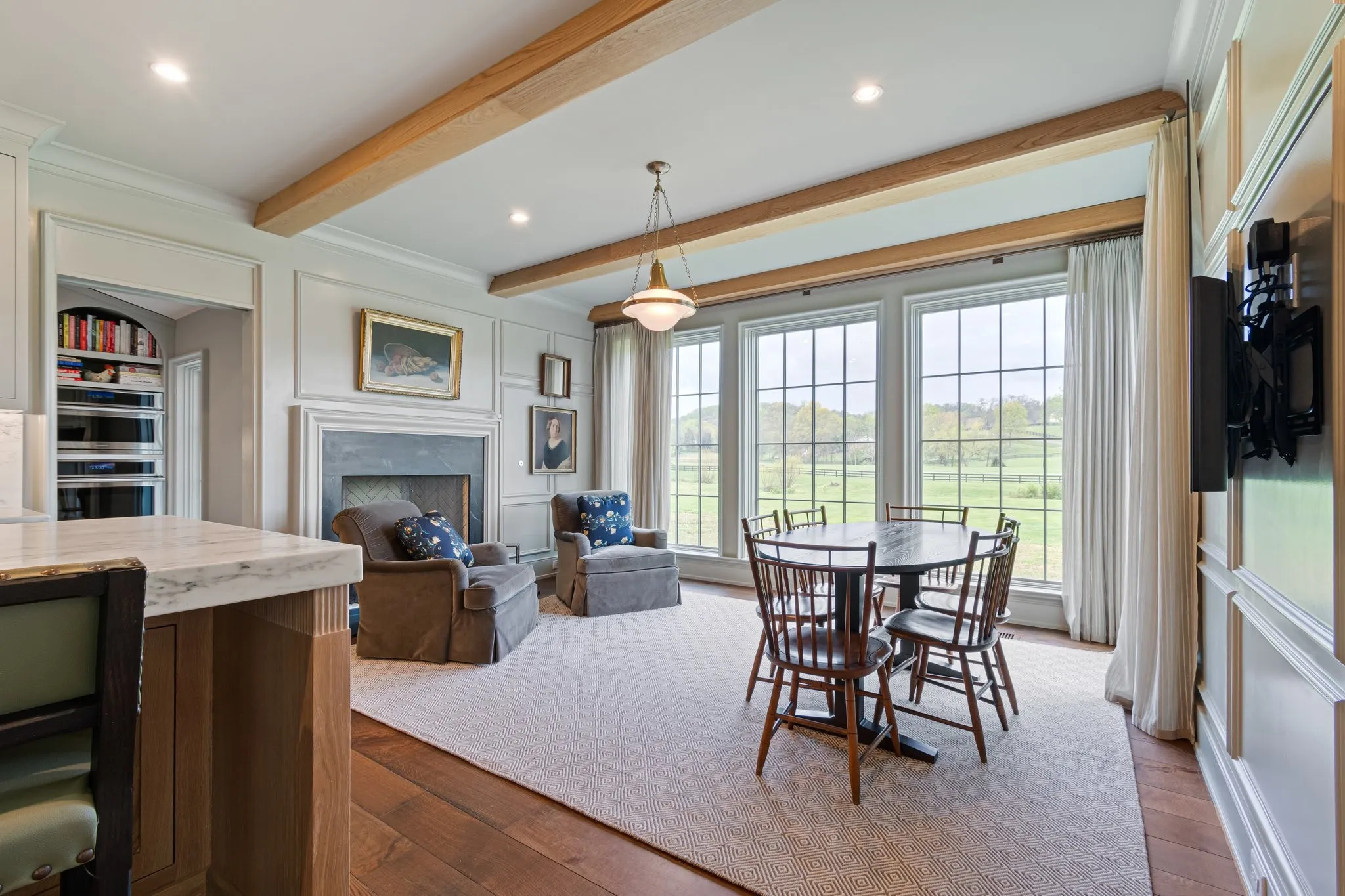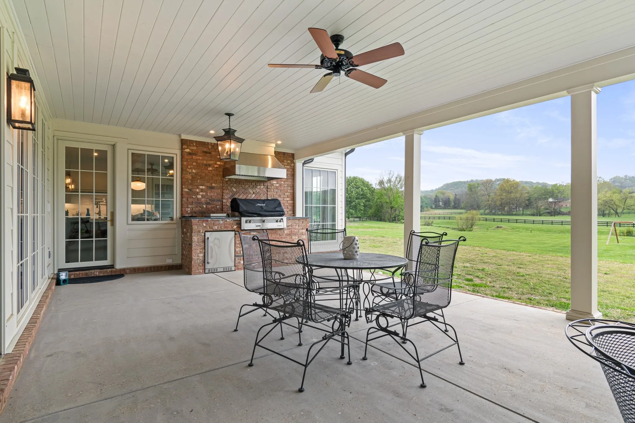 The grounds are equally refined, with custom brickwork, an iron gate, mature landscaping, and outdoor kitchen. The property has been thoughtfully master-planned to support future enhancements such as a pool, barn, or recreational space.